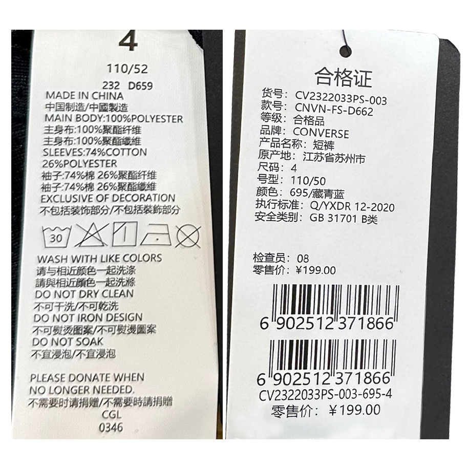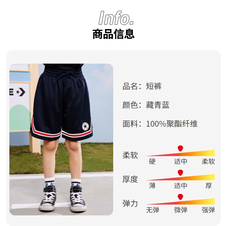 Converse匡威童衣儿童夏新品 速干透气网眼布五分裤短裤CV2322033