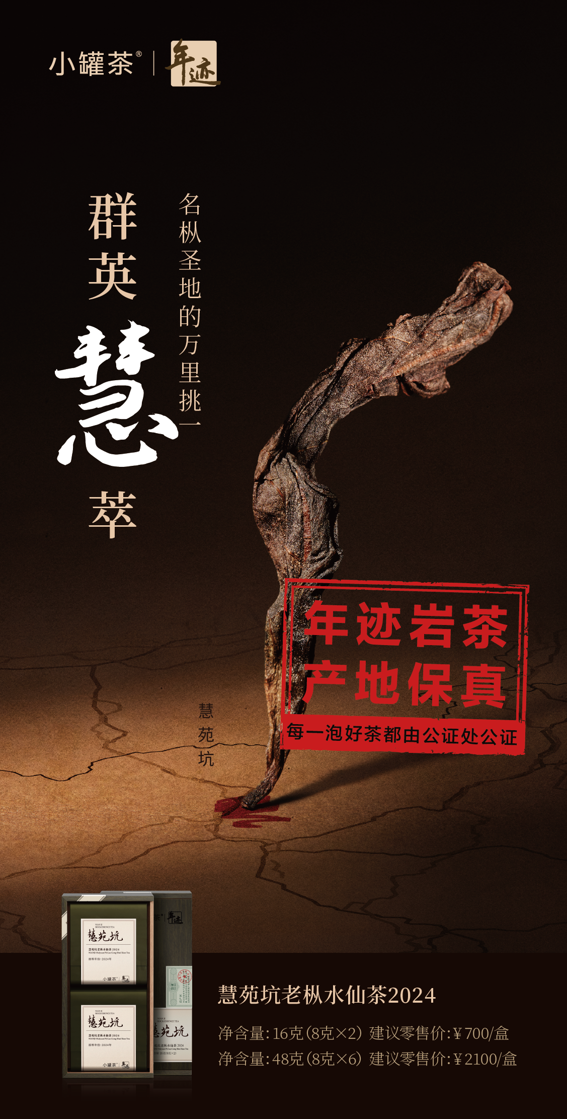 小罐茶旗下•年迹慧苑坑老枞水仙茶2024年份两泡装8g*2泡-共16g茶叶