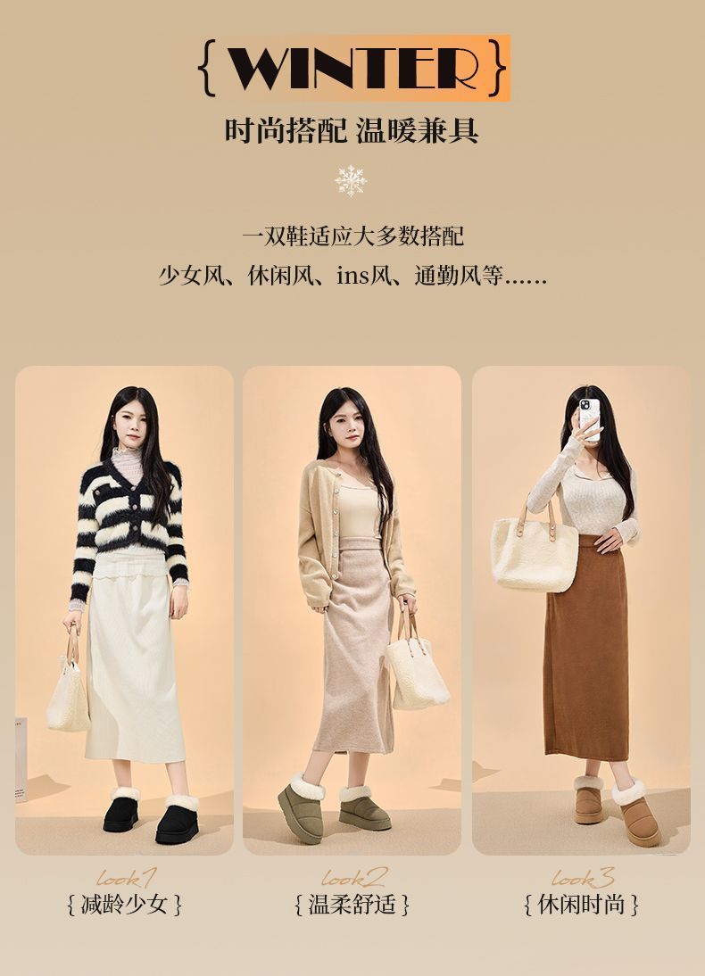 回力雪地靴2025新款小香风翻边冬季毛绒软底洋气缓震休闲运动棉鞋