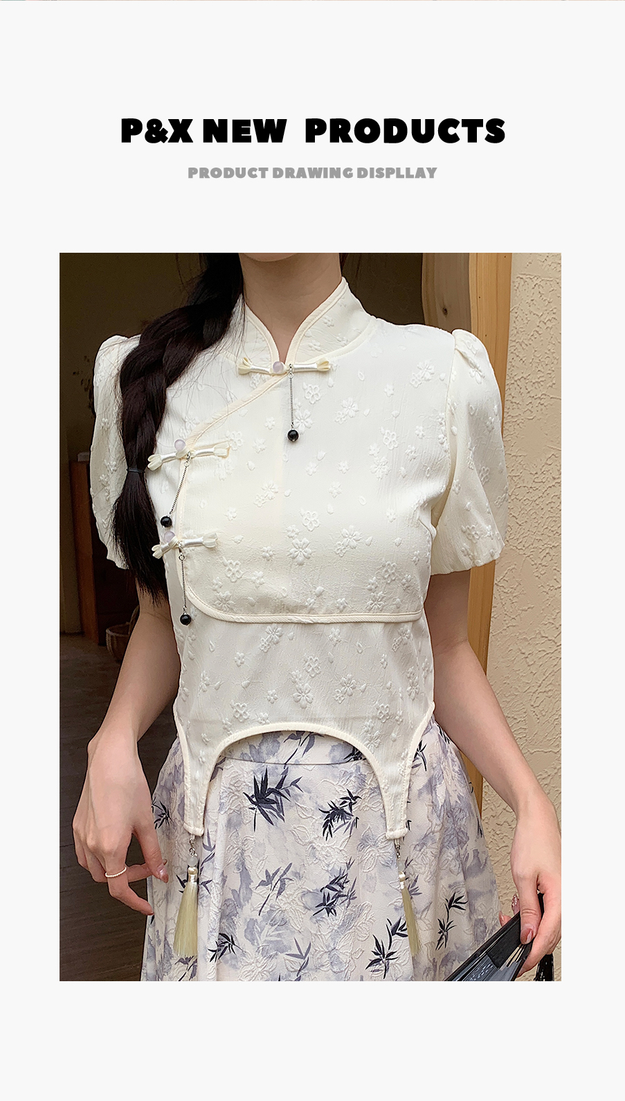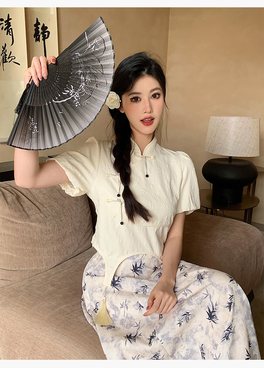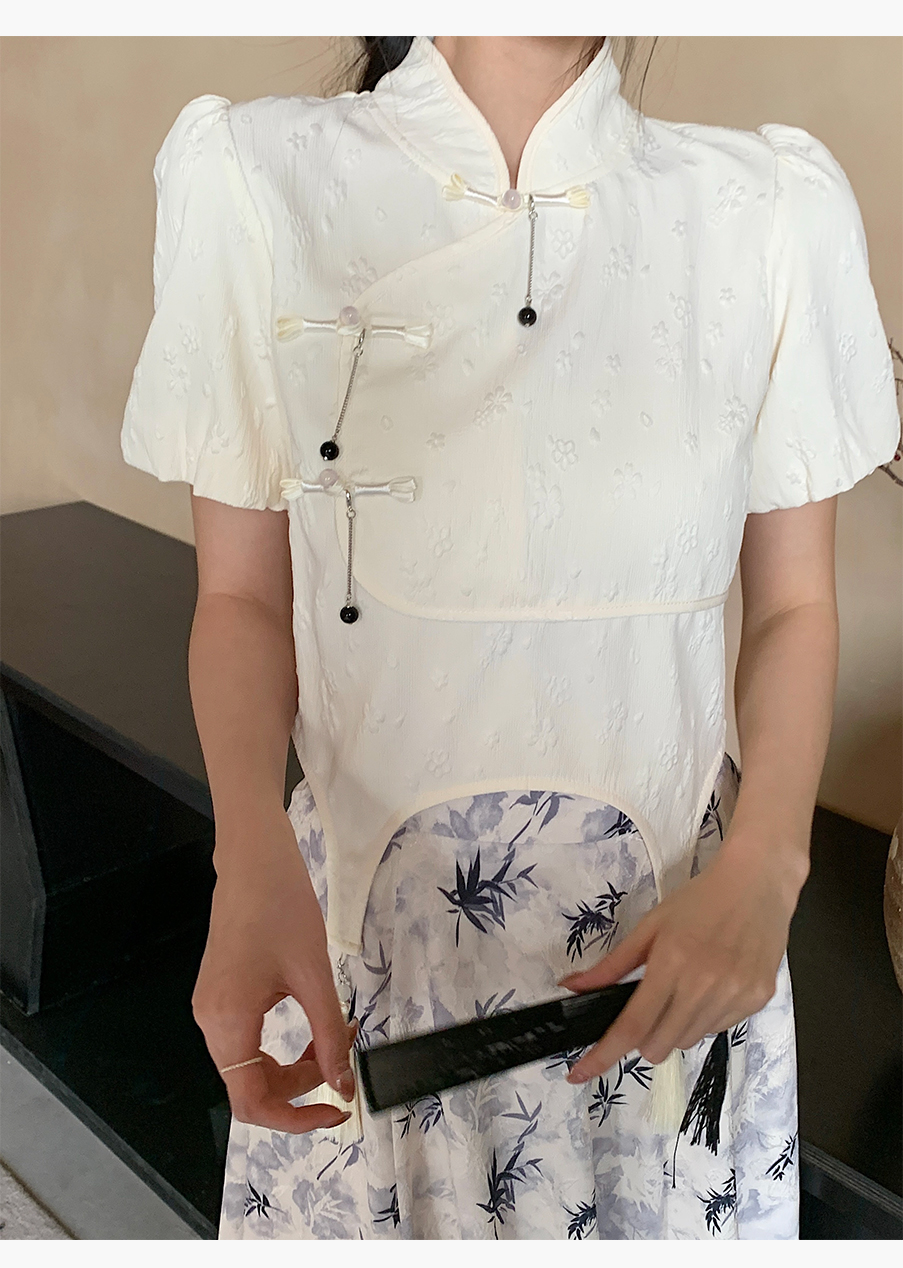 P&X设计师女装夏季 白色国风新中式复古短款小衫 824228189B 杏色