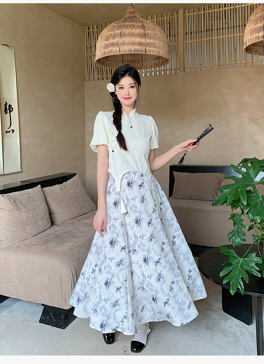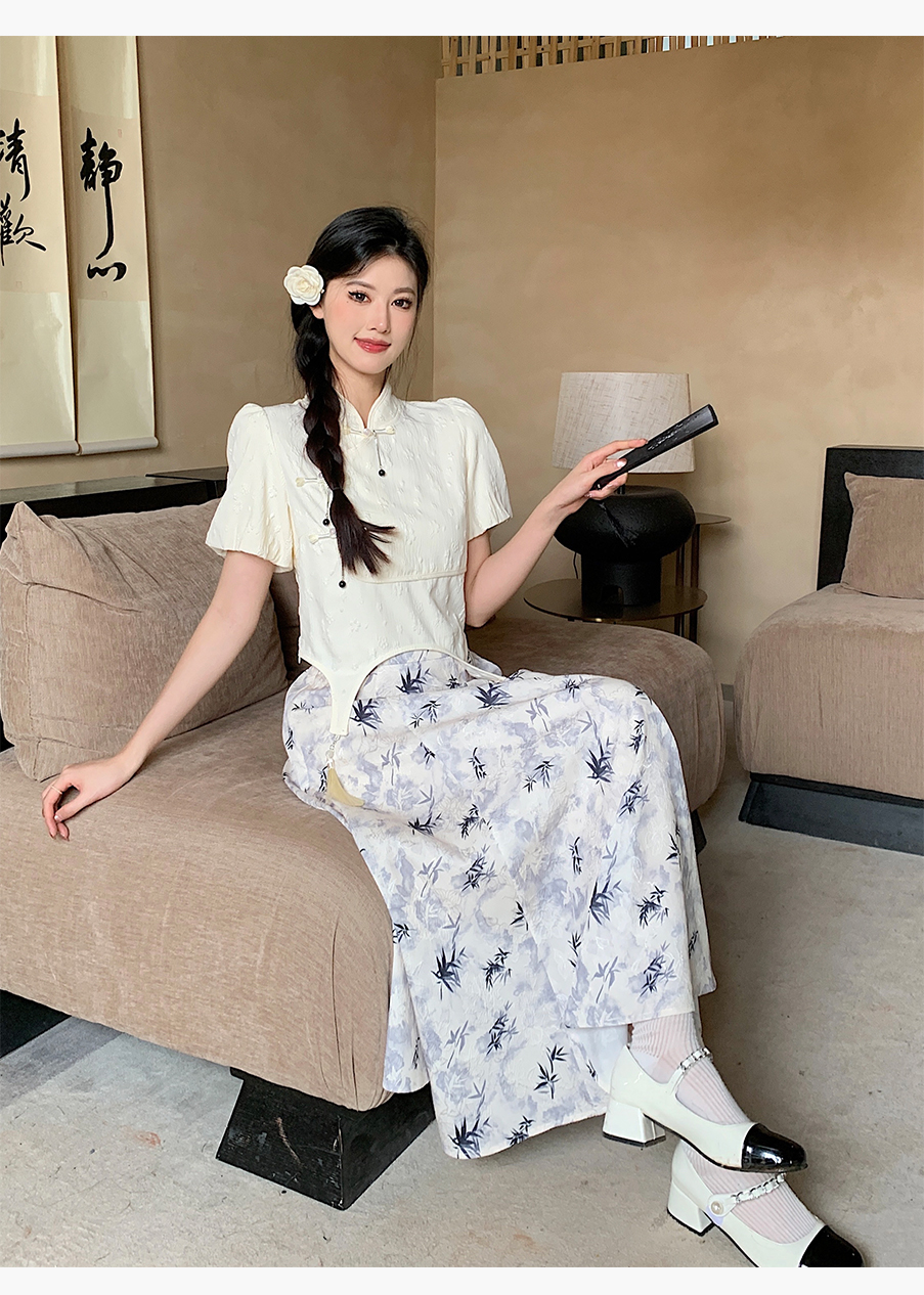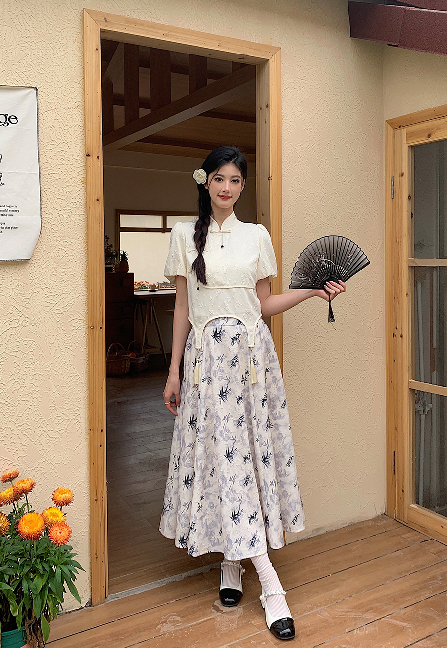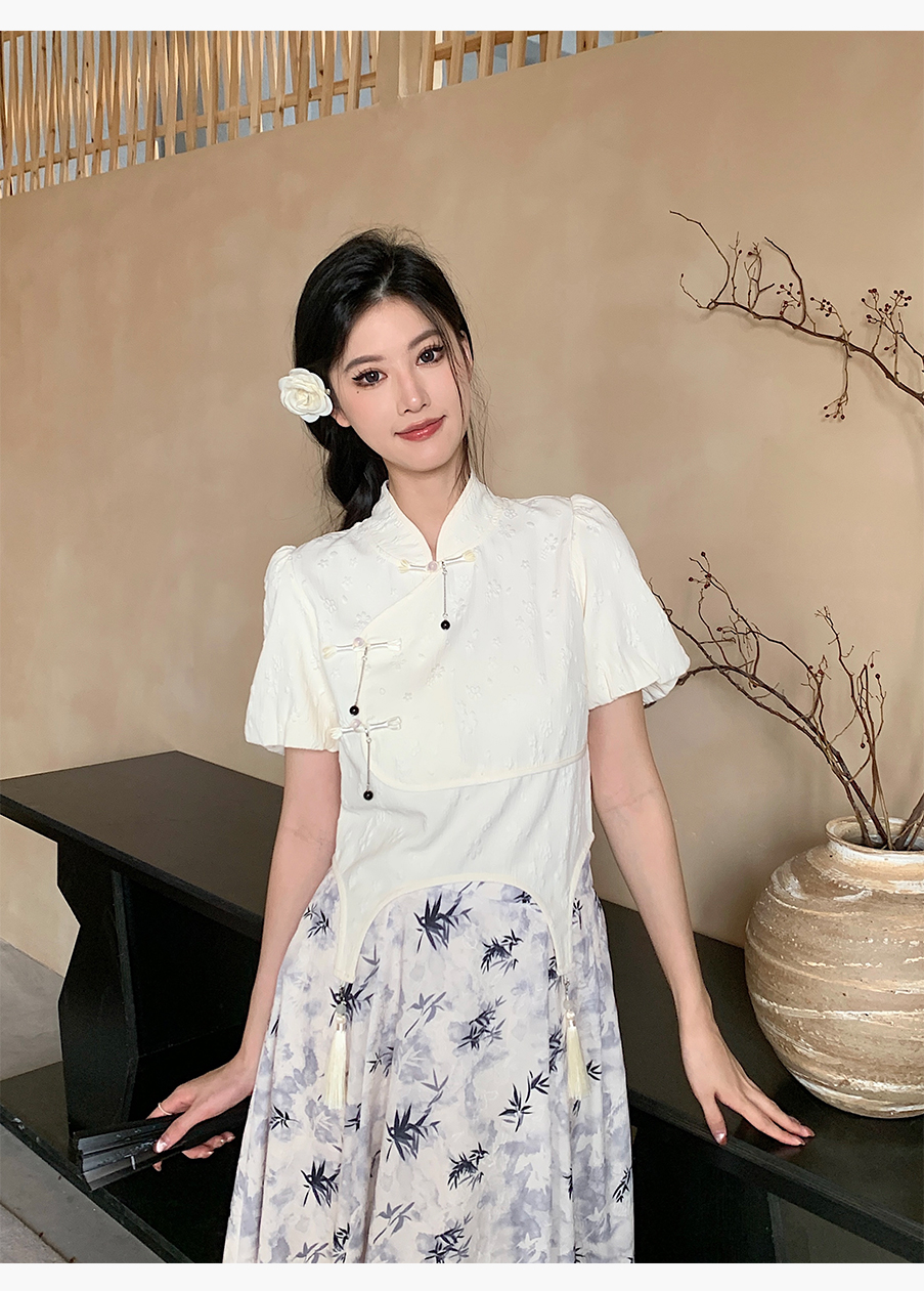 P&X设计师女装夏季 白色国风新中式复古短款小衫 824228189B 杏色