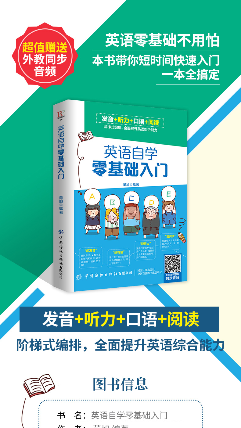 【附外教同步音频】英语自学零基础入门 董旭 中小学生英语学习辅导书 单词速记技巧口语发音情景对话教程 英语语法听力写作指导书