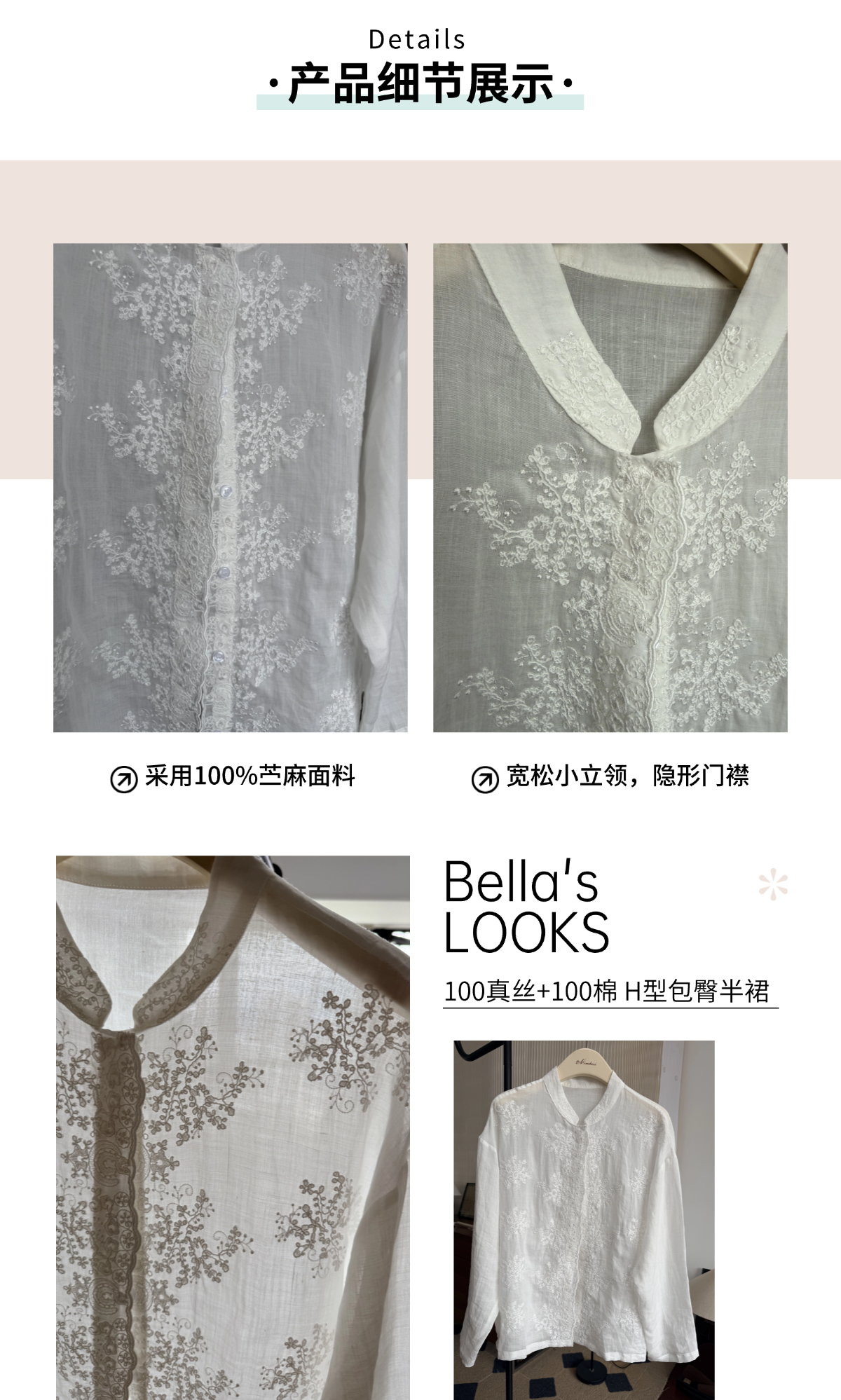 轻盈春日 100%苎麻新中式小立领衬衫/外套 重工刺绣 宽松版型 日常多场景可穿的新中式