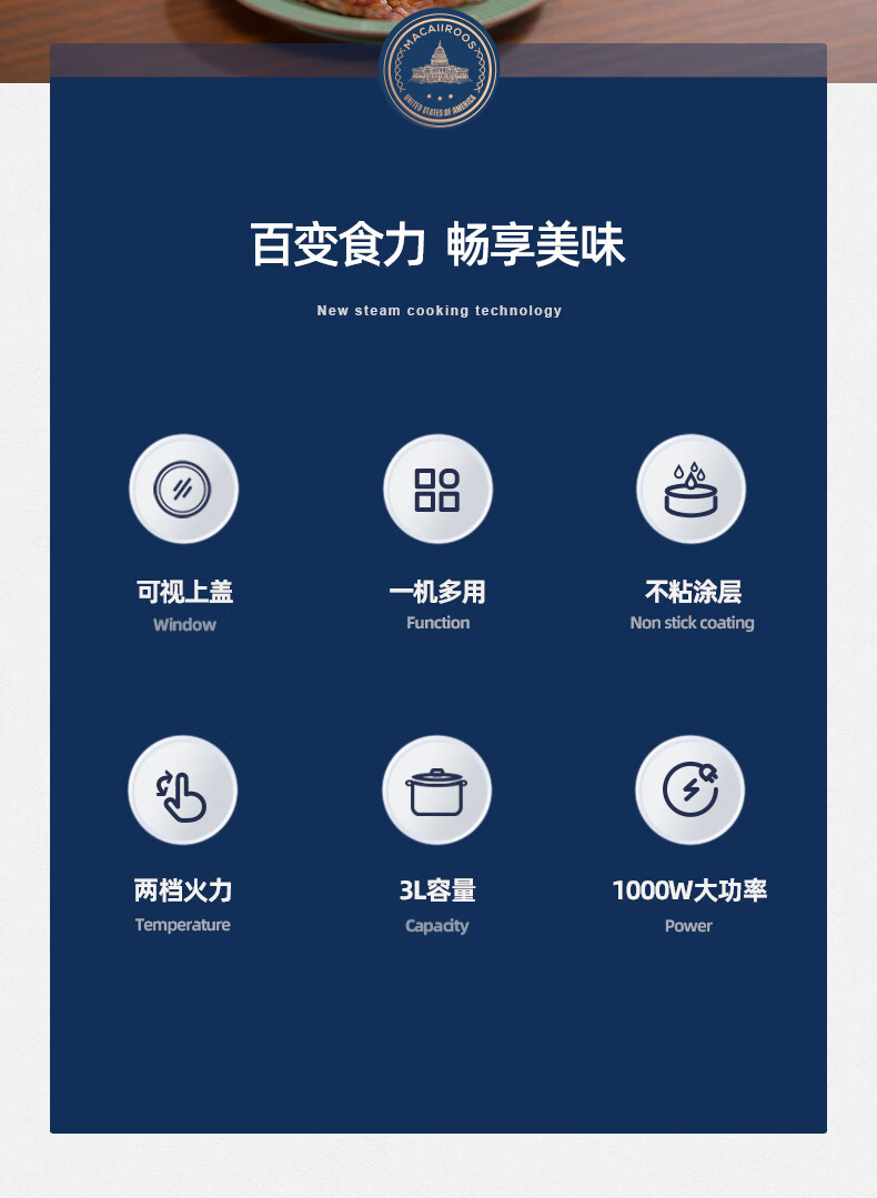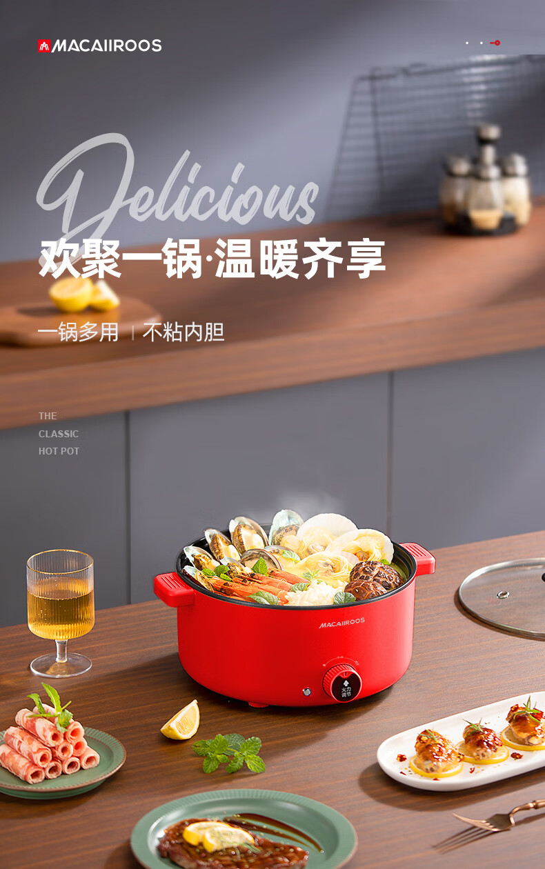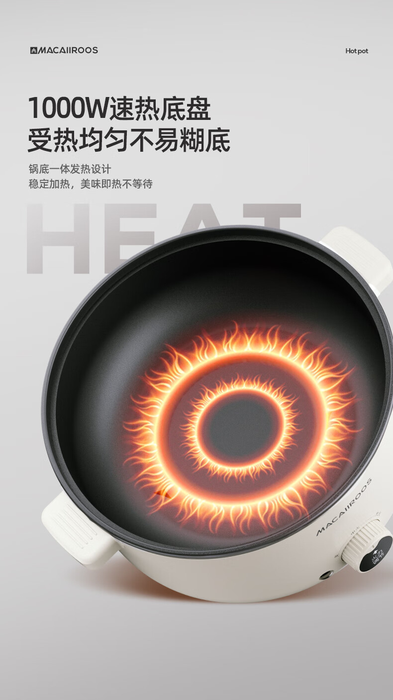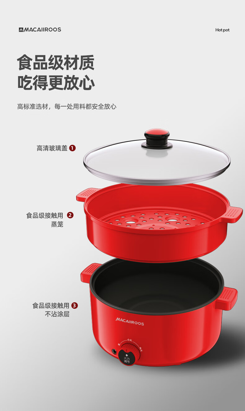 迈卡罗 MC-HG332 多功能电火锅电蒸锅电煮锅宿舍学生锅电锅火锅煮面家用(tz)