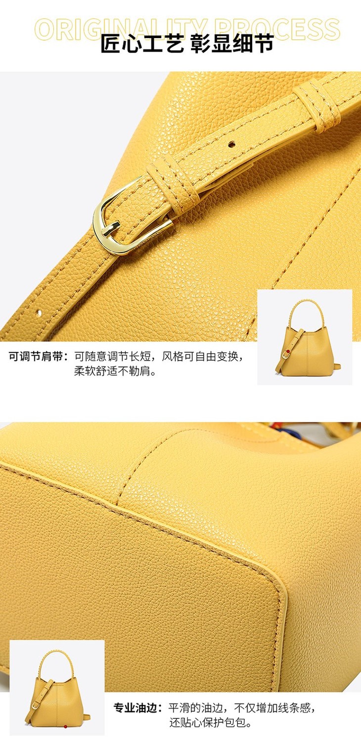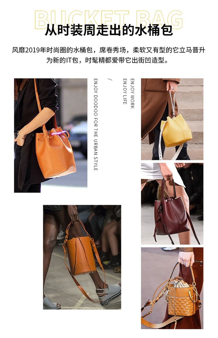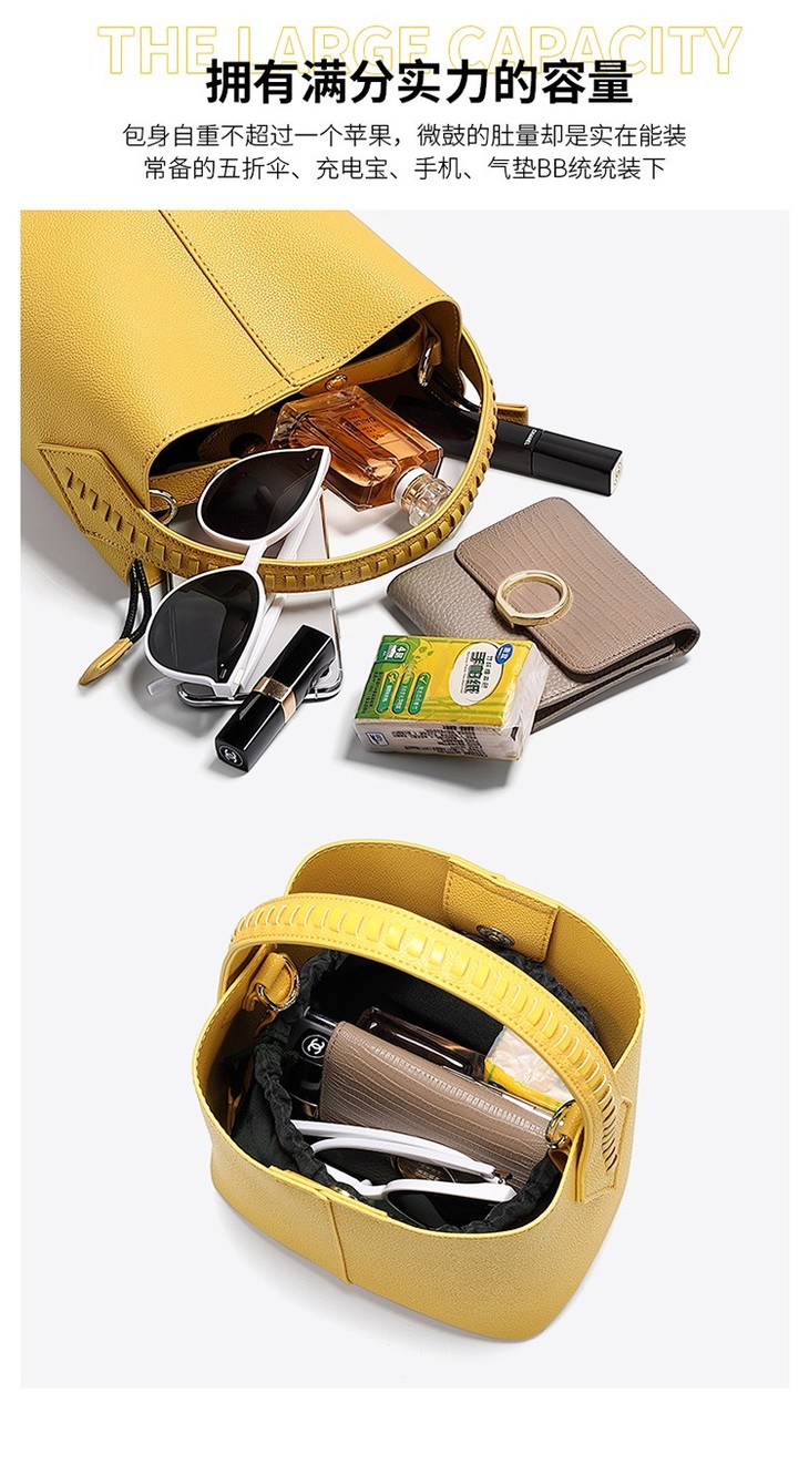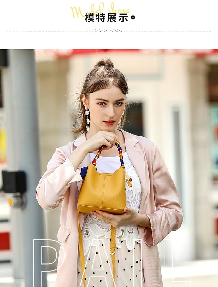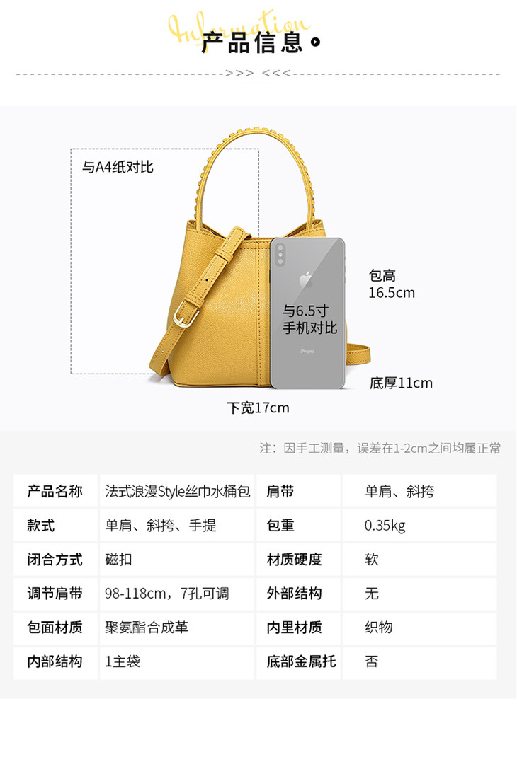 【一般贸易】【授权商品】doodoo 包包女包新款2019夏天小清新简约斜挎包单肩手提丝巾水桶包 D9610 黄色