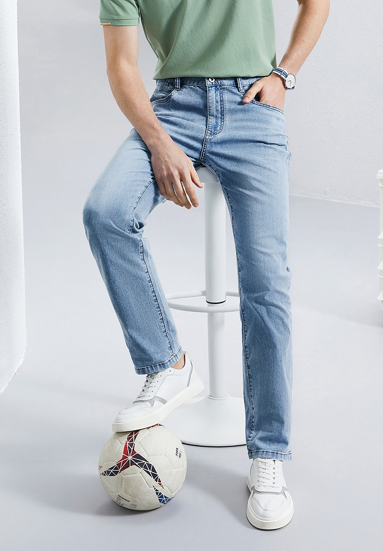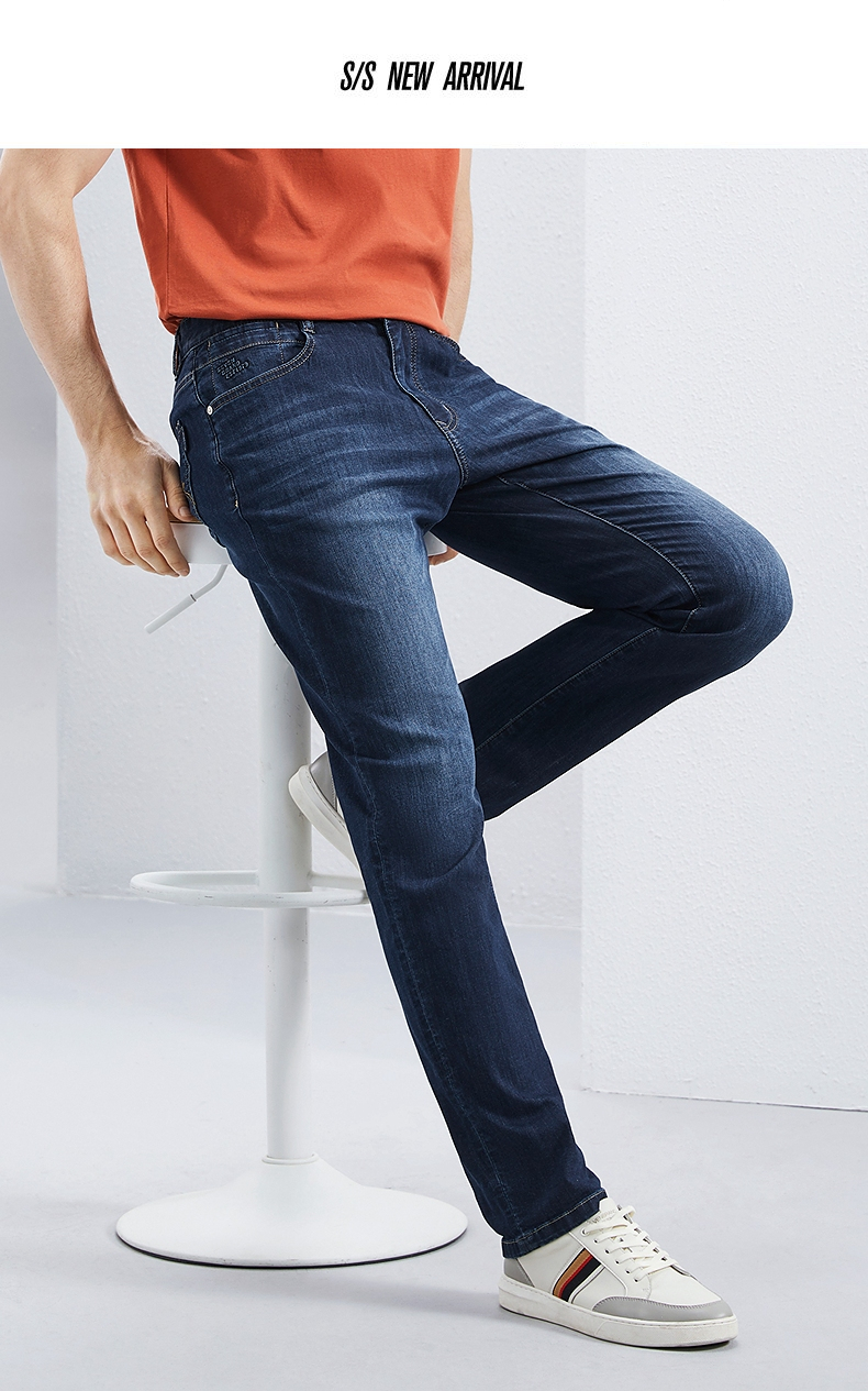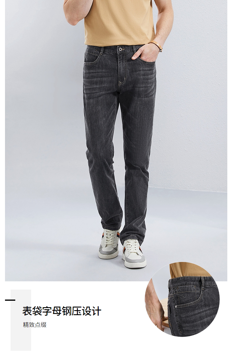 【含桑蚕丝】柒牌直筒牛仔裤男2024夏季薄款中腰休闲中青年长裤子126H72380