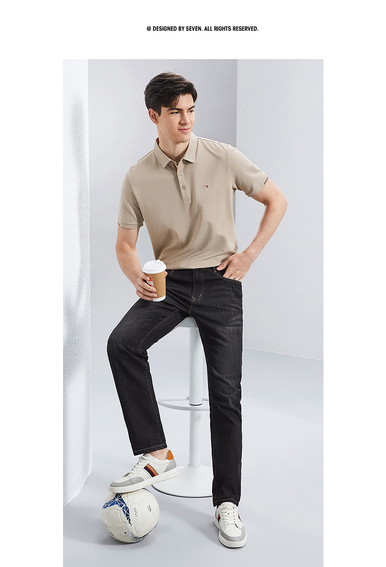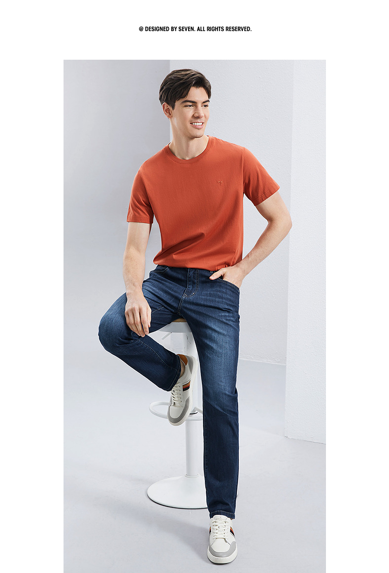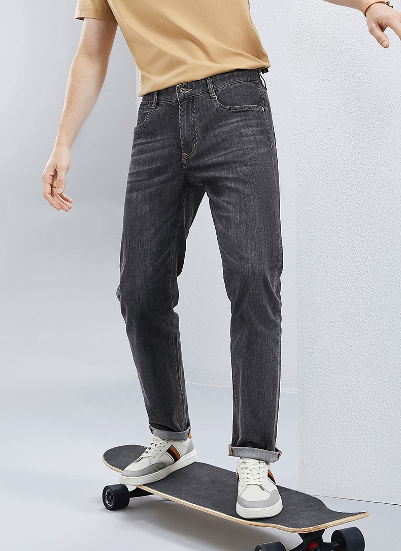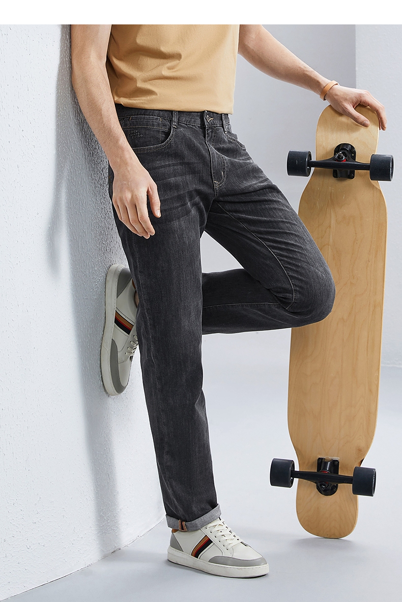 【含桑蚕丝】柒牌直筒牛仔裤男2024夏季薄款中腰休闲中青年长裤子126H72380