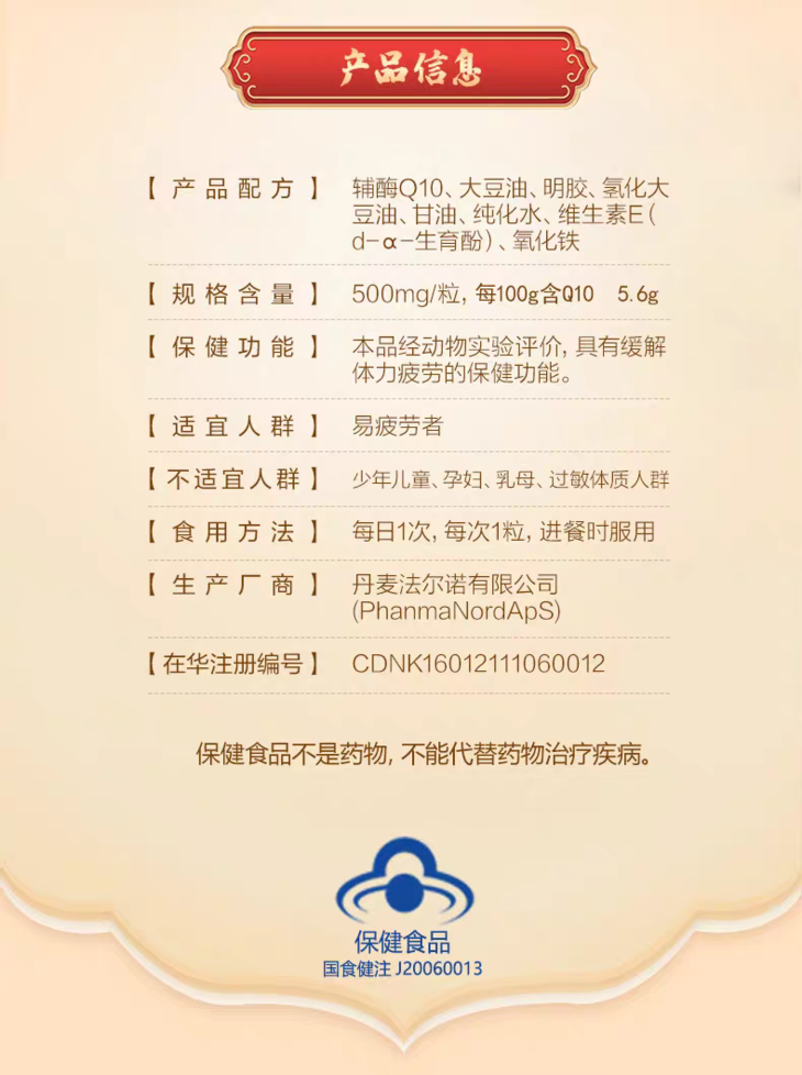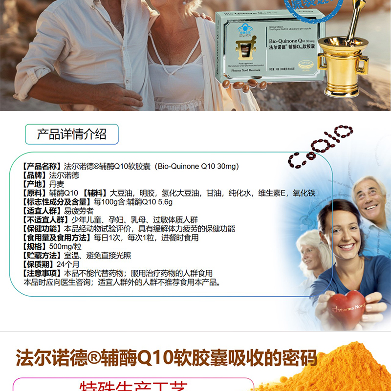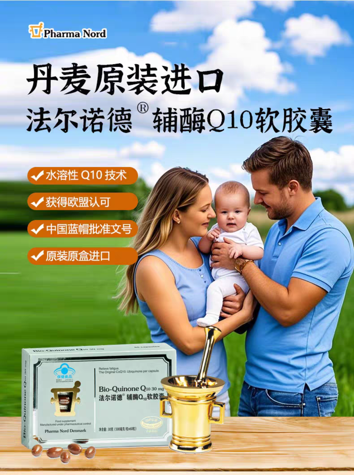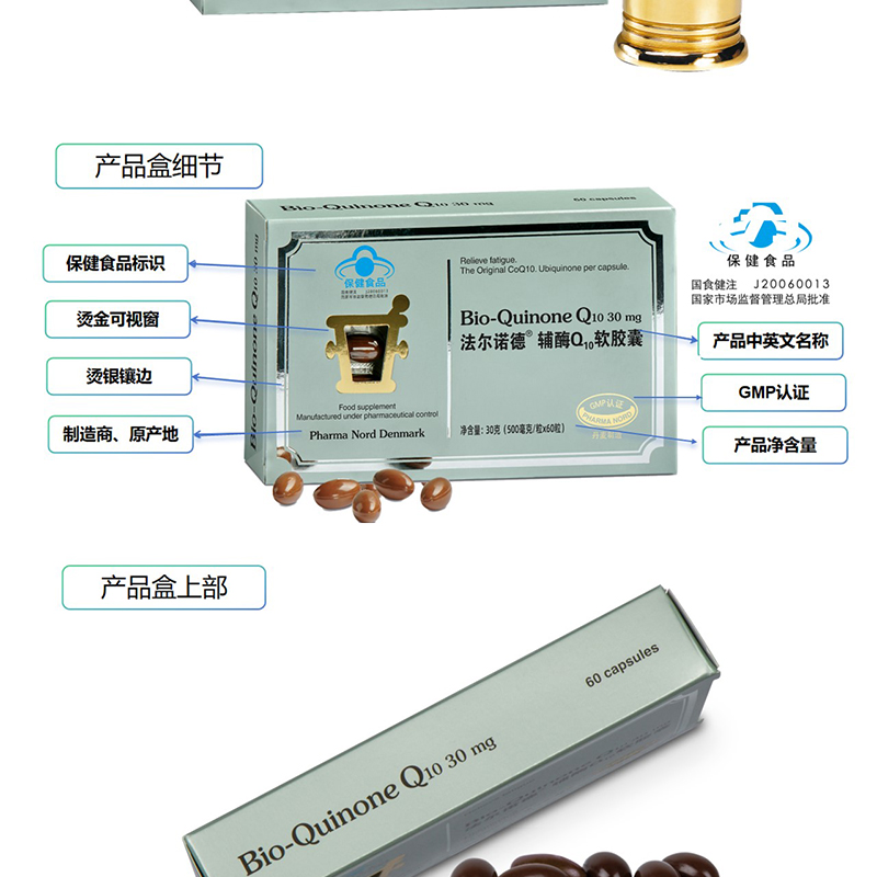 【丹麦原装进口】法尔诺德·辅酶Q10软胶囊 男性女性可用 60粒/盒
