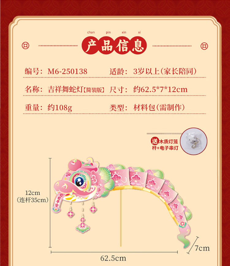 新年蛇年元旦春节吉祥舞蛇灯手工diy灯笼儿童鱼灯材料包装饰花灯