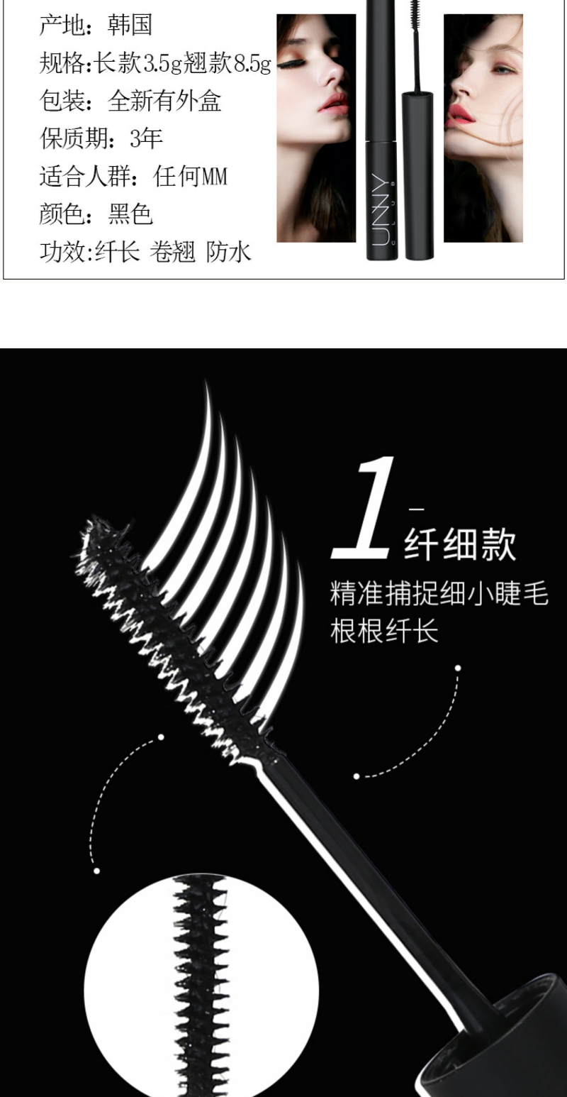 【YZ】韩国unny睫毛膏 防水 纤长 卷翘 浓密 不晕染极细小刷头