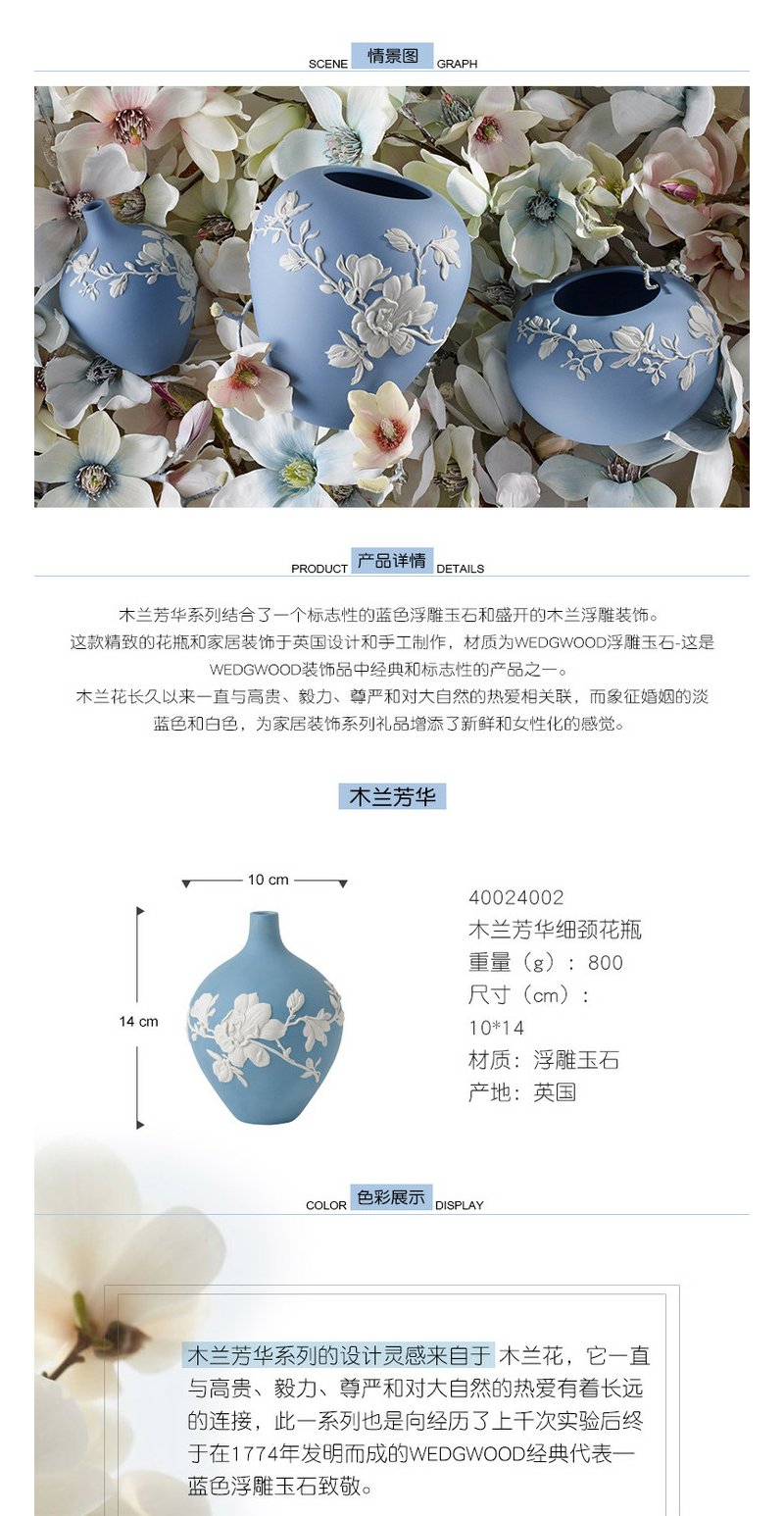 WEDGWOOD玮致活木兰芳华浮雕玉石细颈花瓶台面插花花瓶欧式礼盒