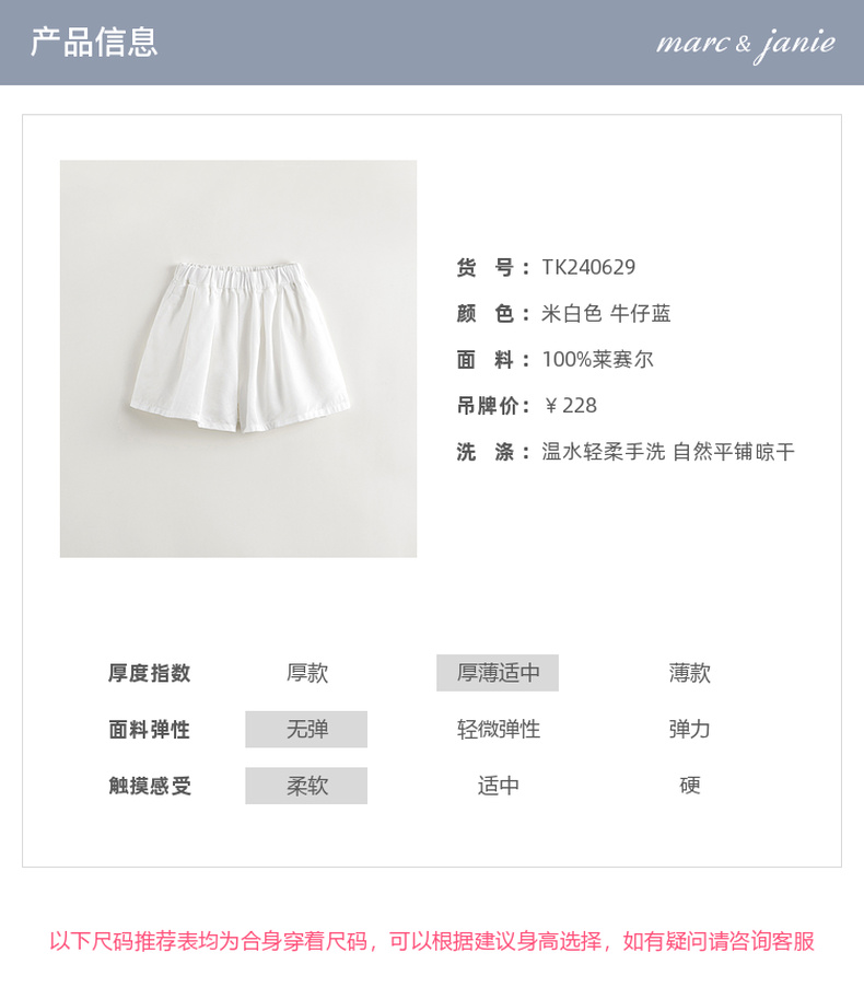 【凉感透气】马克珍妮女童柔软莱赛尔牛仔裙裤儿童裤子夏装240629
