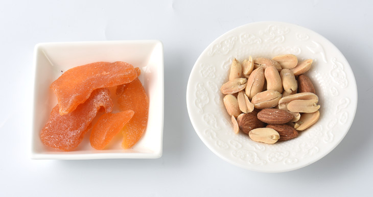 什锦果仁包含花生和杏仁,其中花生富含烟酸和多不饱和脂肪酸,能有效促进生长,延缓衰老,并有止血造血的功效。杏仁富含维生素E,不饱和脂肪酸及多种矿物质,具有止咳润肺,降低胆固醇和抗肿瘤的效果。