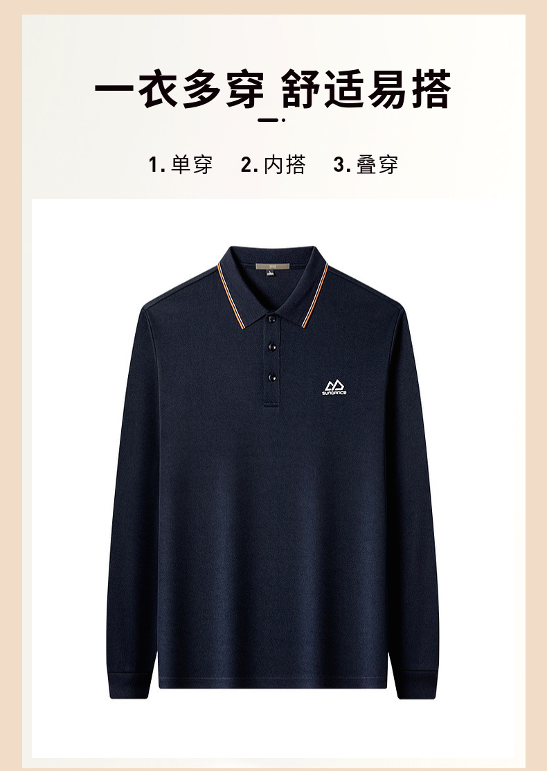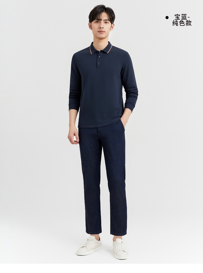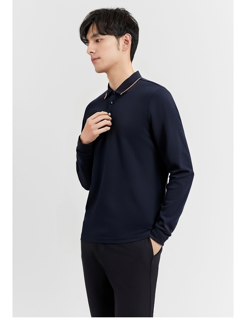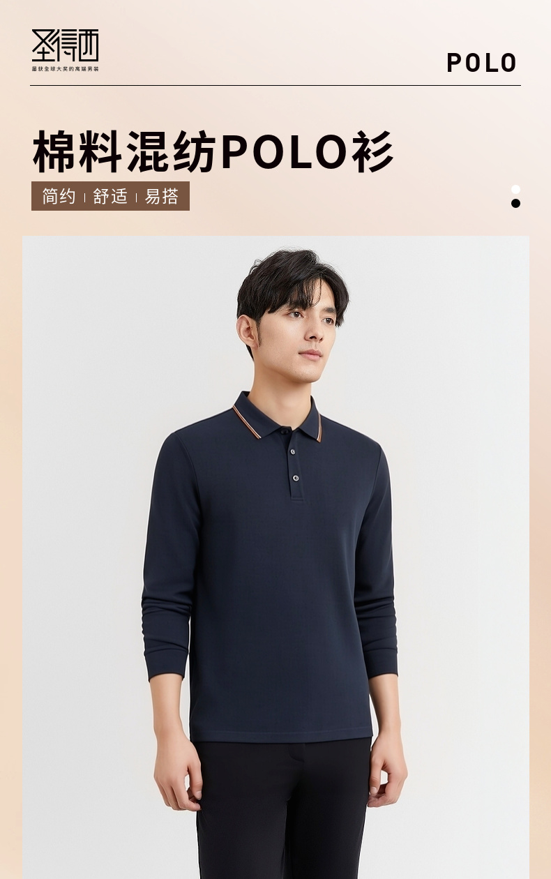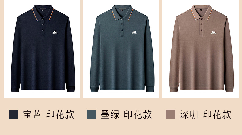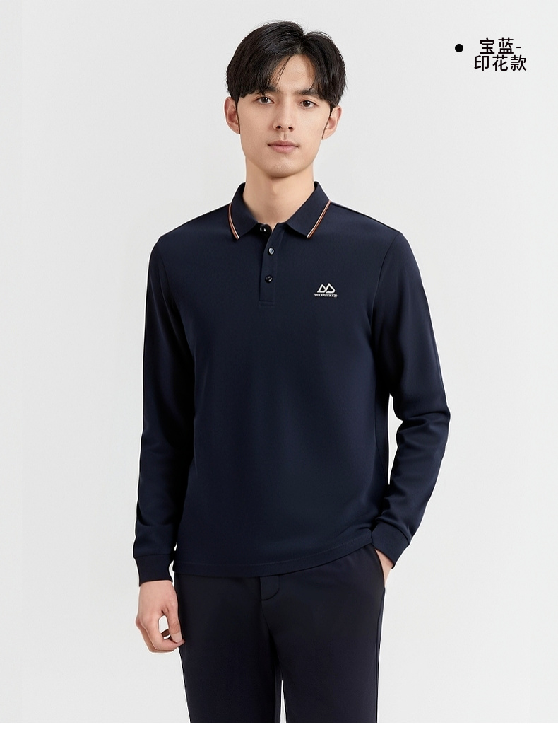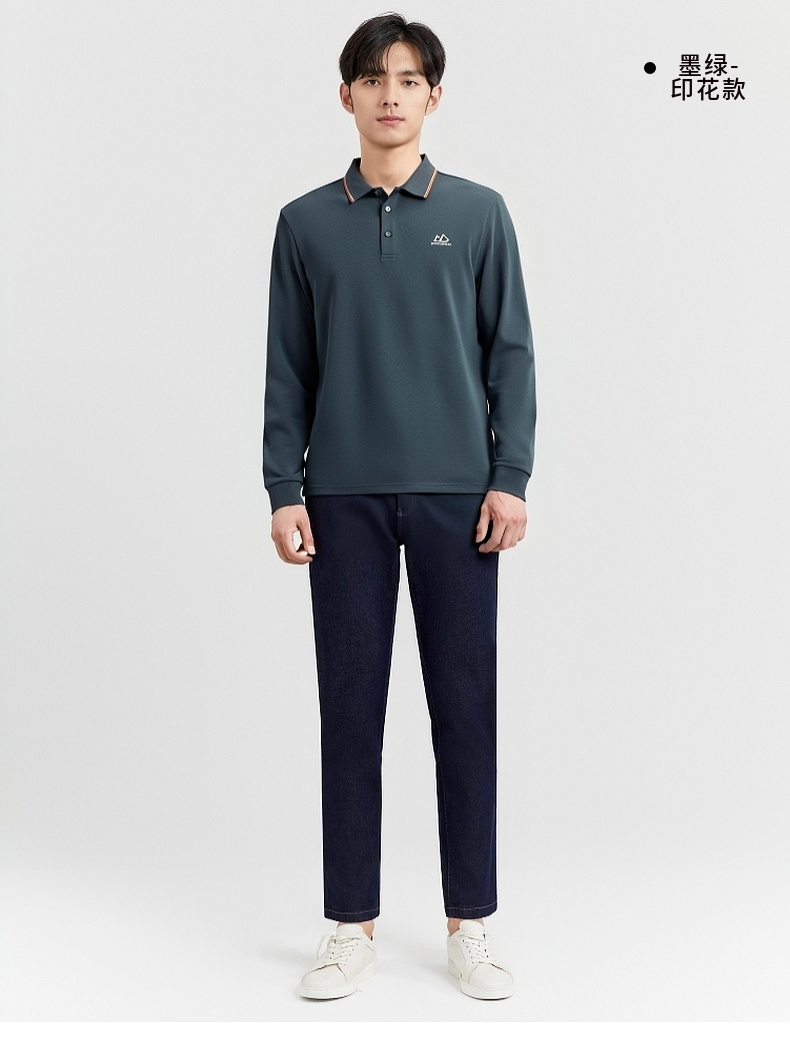 【含桑蚕丝】圣得西混纺长袖POLO衫男士2025春季新款时尚印花T恤2452945117