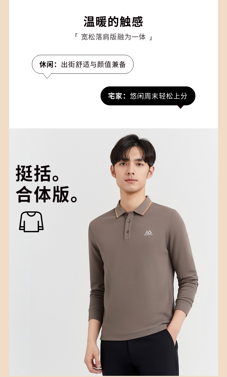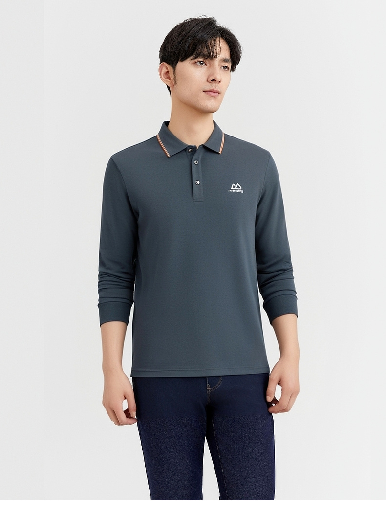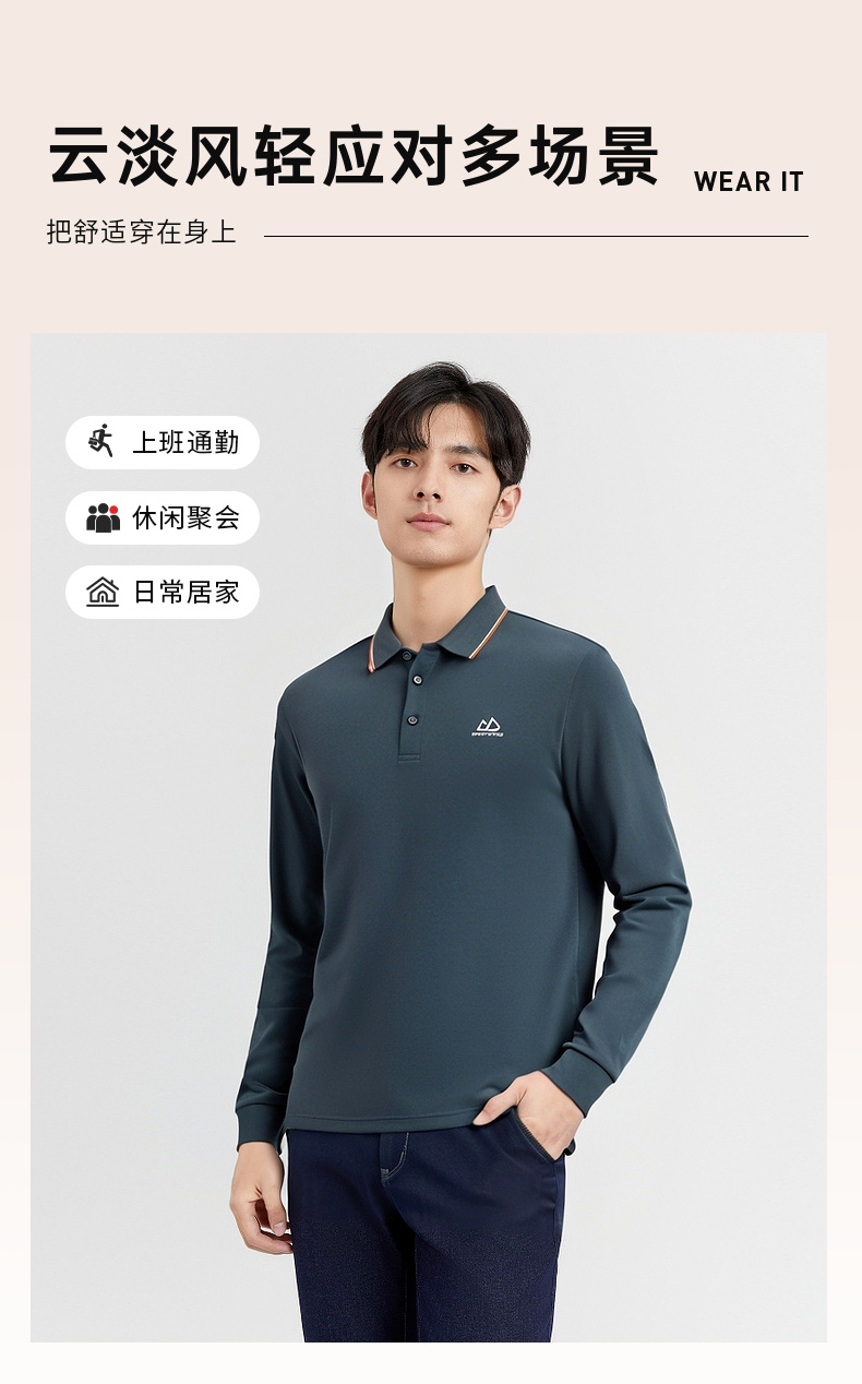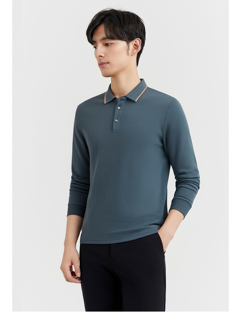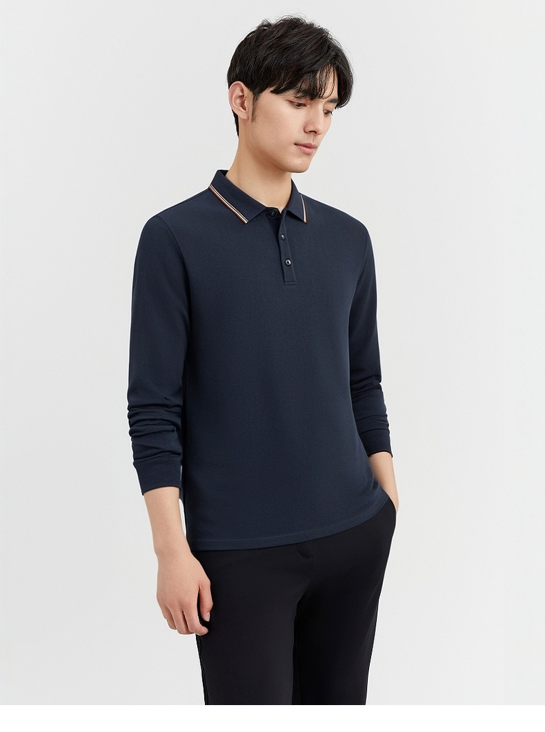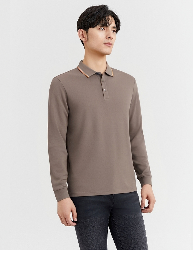【含桑蚕丝】圣得西混纺长袖POLO衫男士2025春季新款时尚印花T恤2452945117
