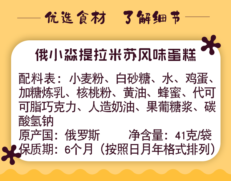 俄罗斯俄小淼牌经典提拉米苏风味蛋糕41g*16块