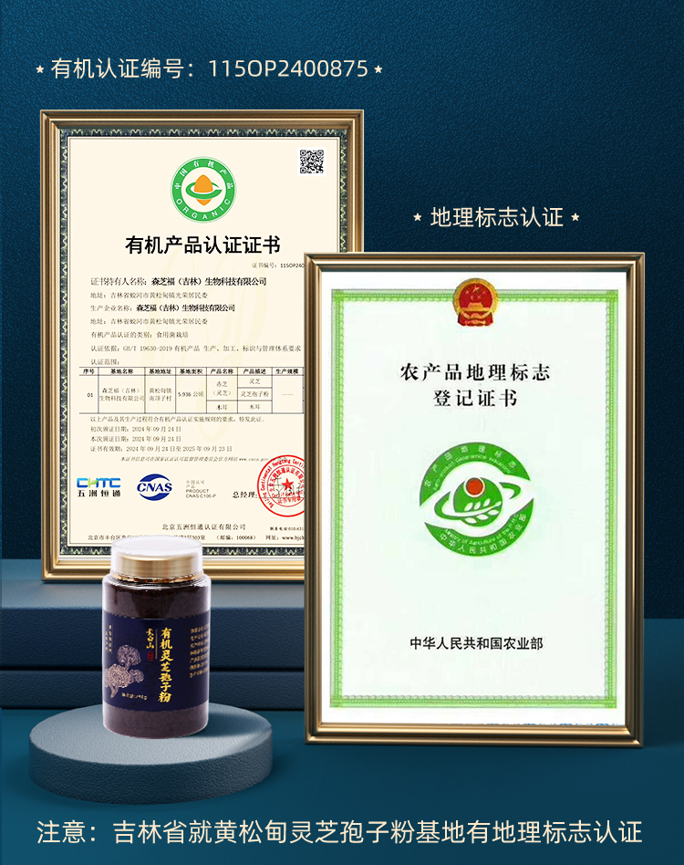 【九典堂】有机灵芝孢子粉 灵芝孢子 低温碾压 有机产品