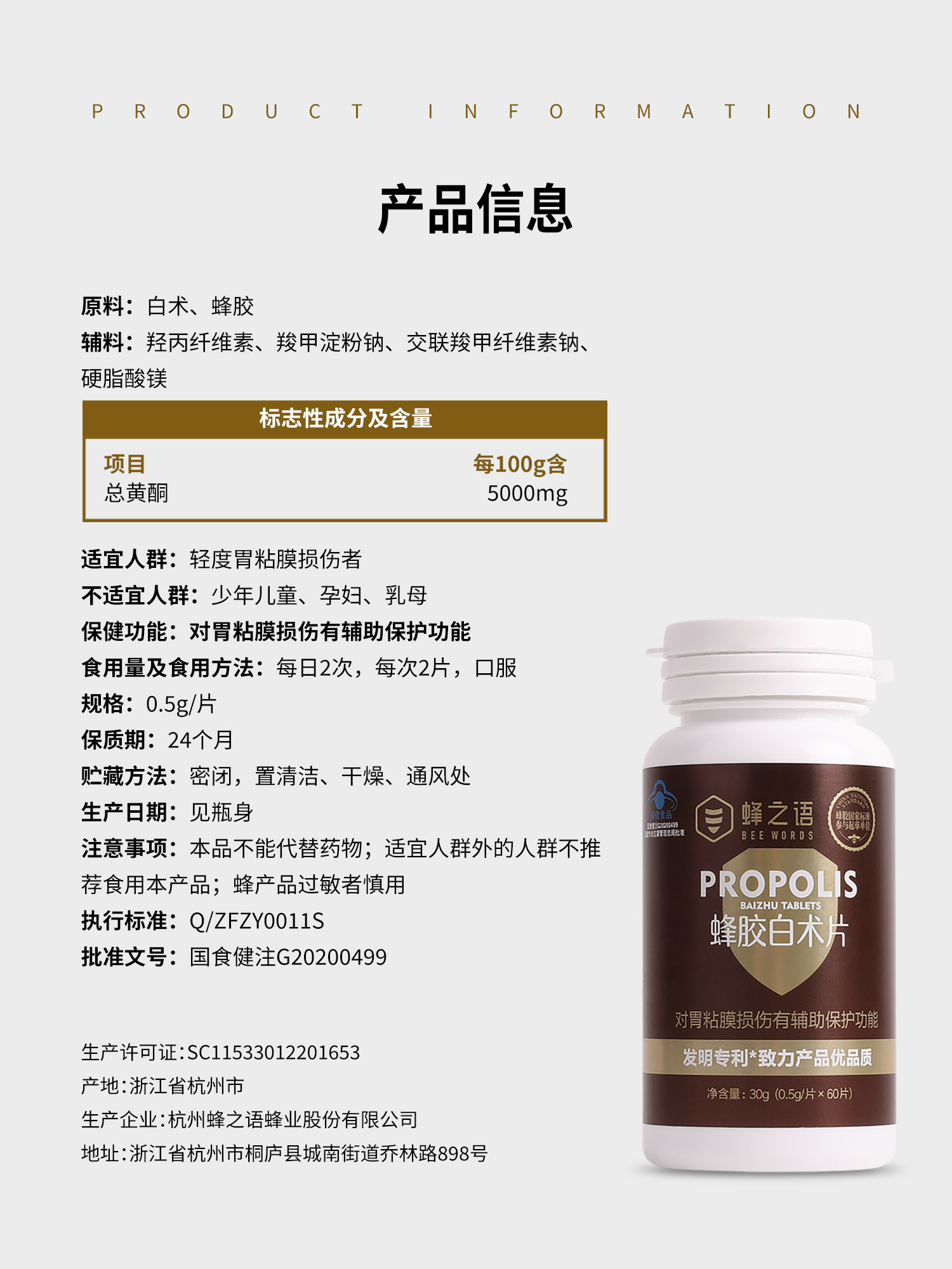 蜂之语蜂胶白术片30g