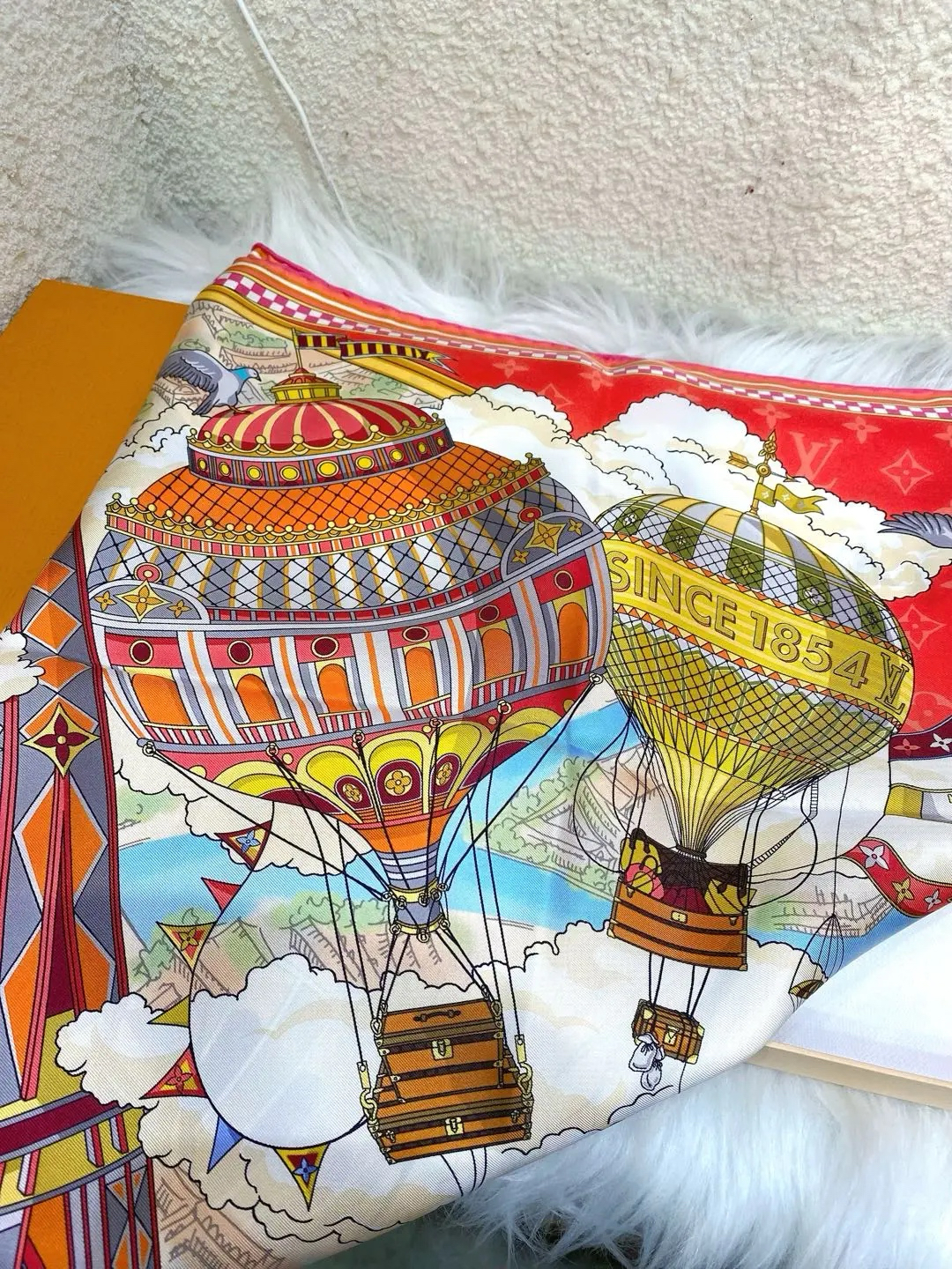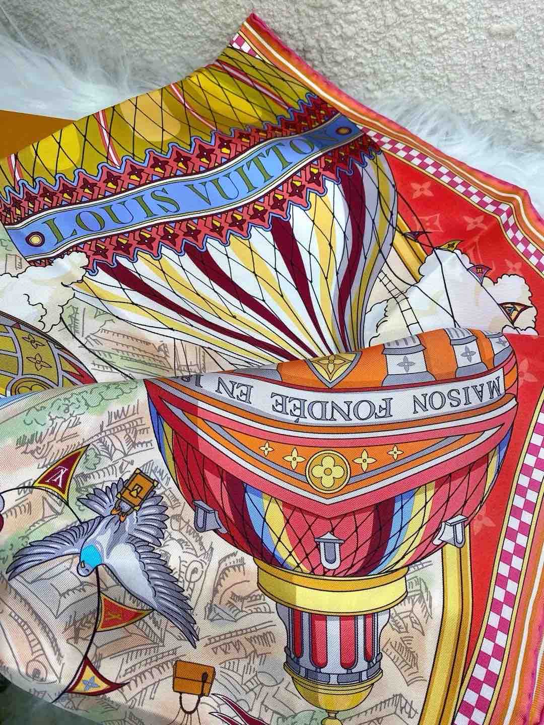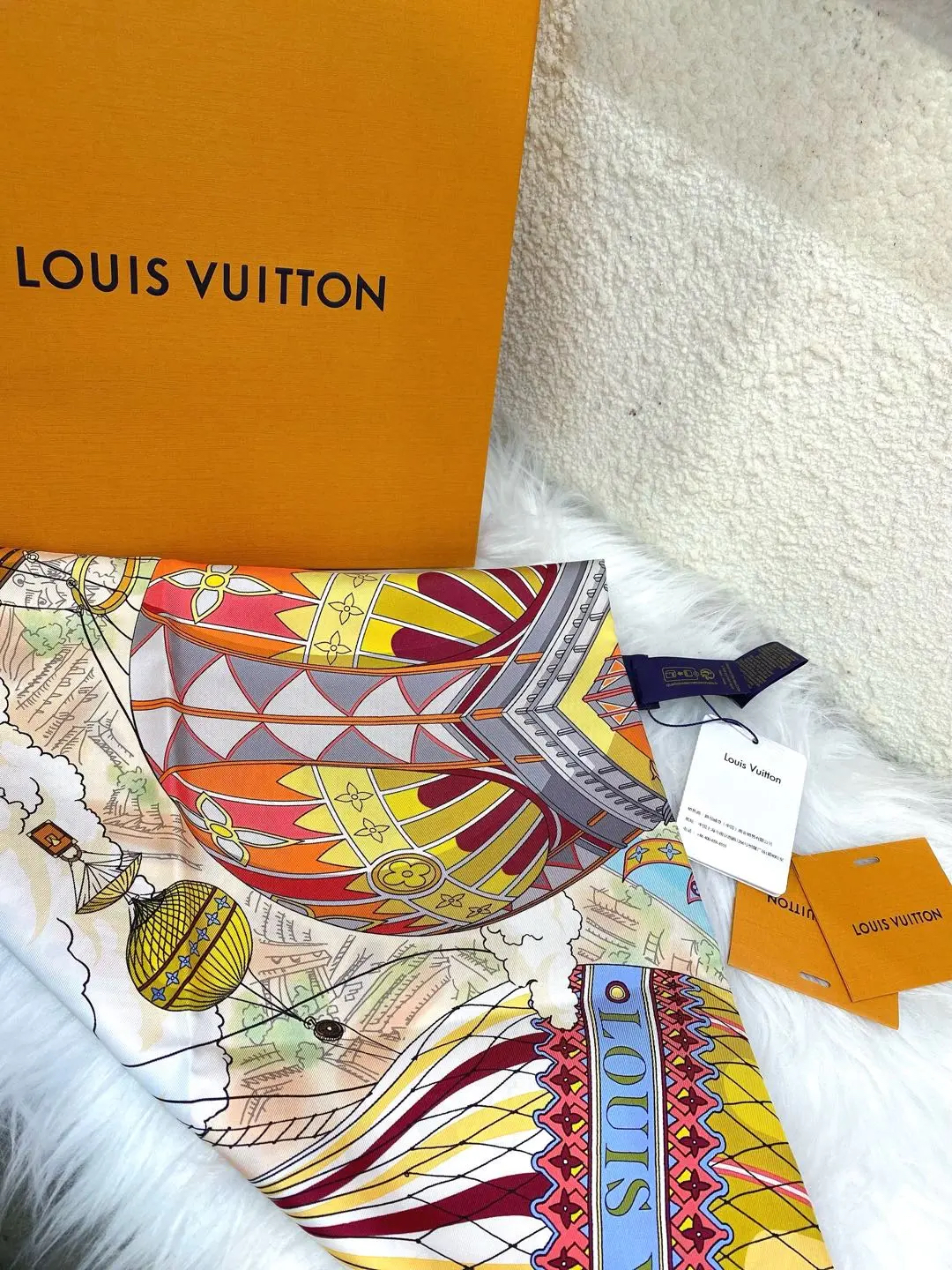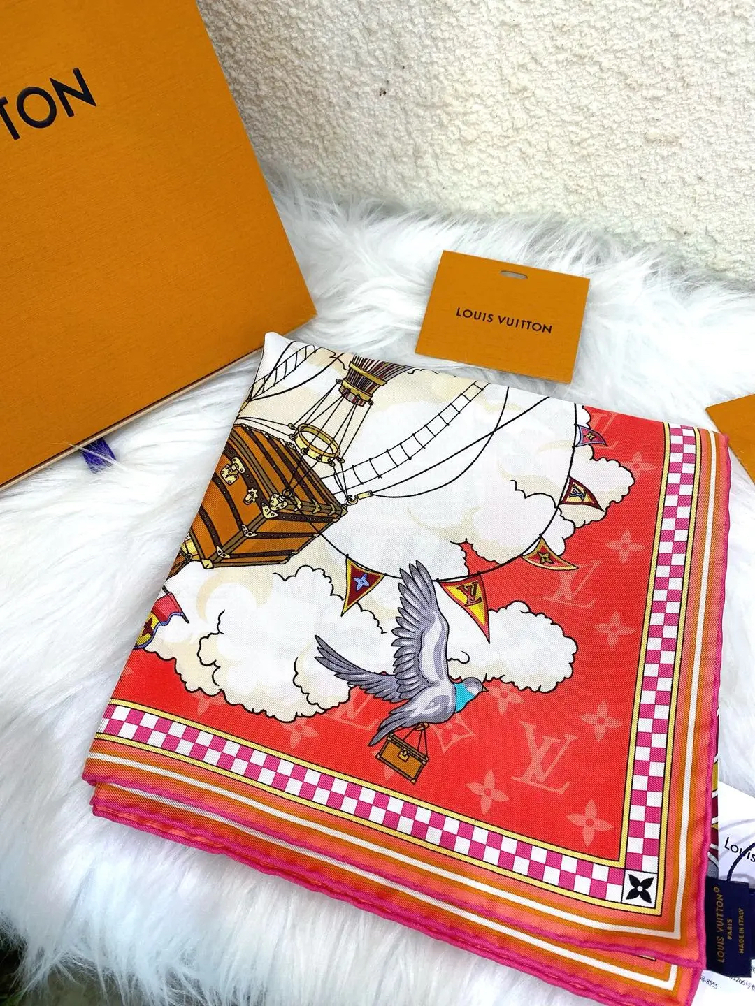 【商品详情】正品二手 lv from the cloud 热气球的红色 桑蚕丝 丝巾🫢全新 90*90 配件:吊牌 盒子。未使用 优雅漂亮