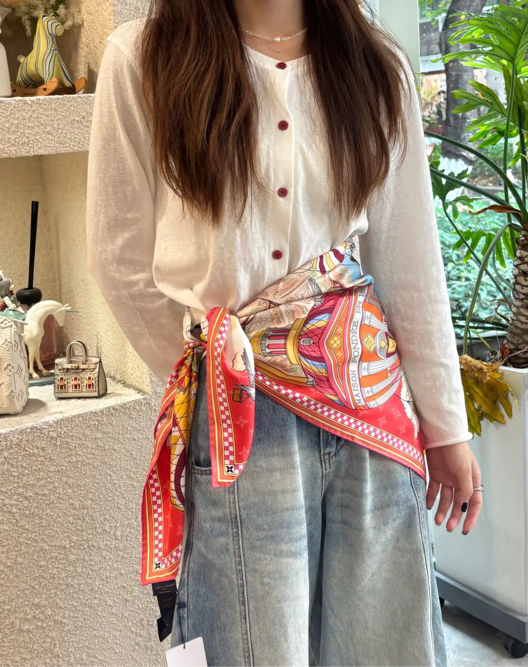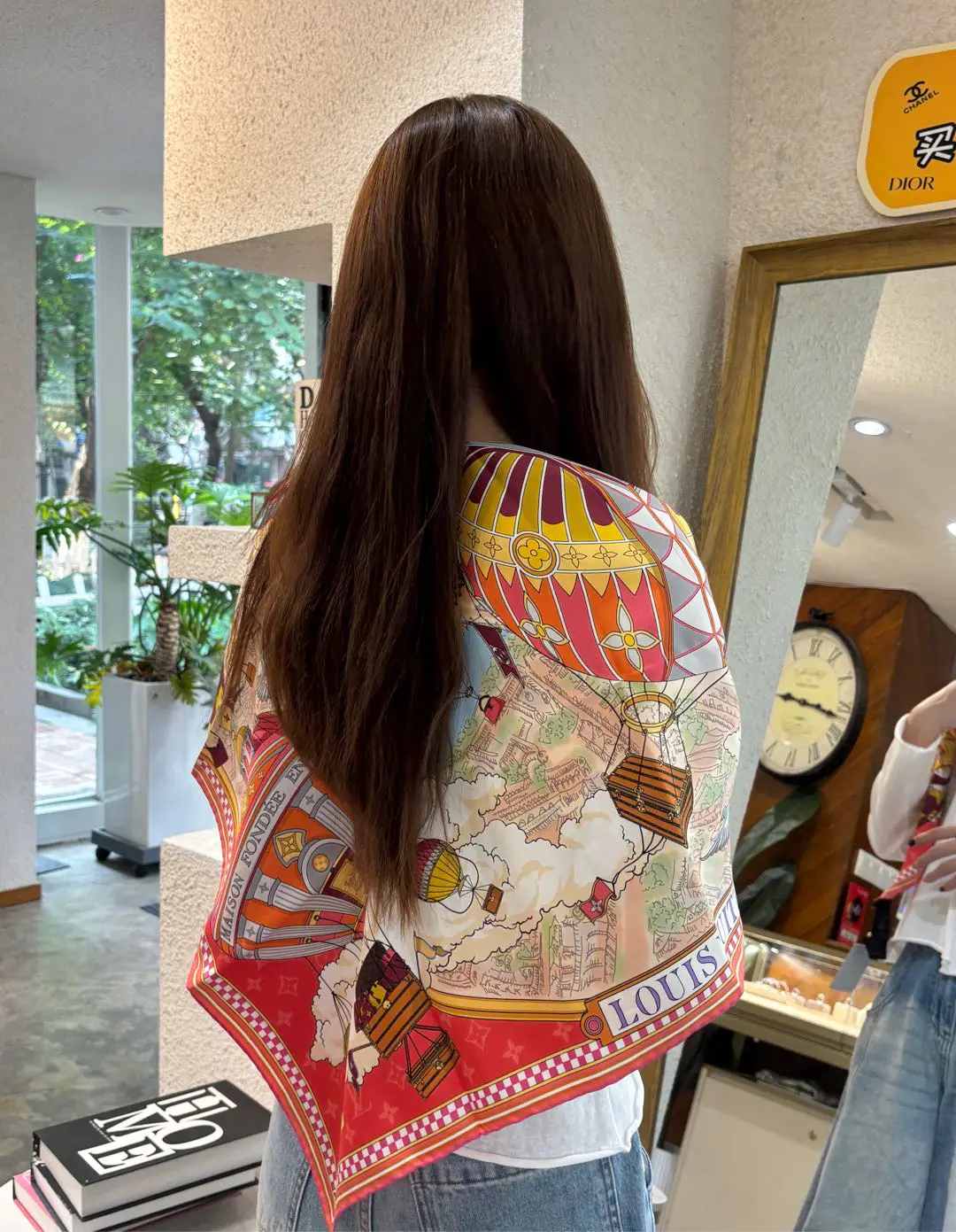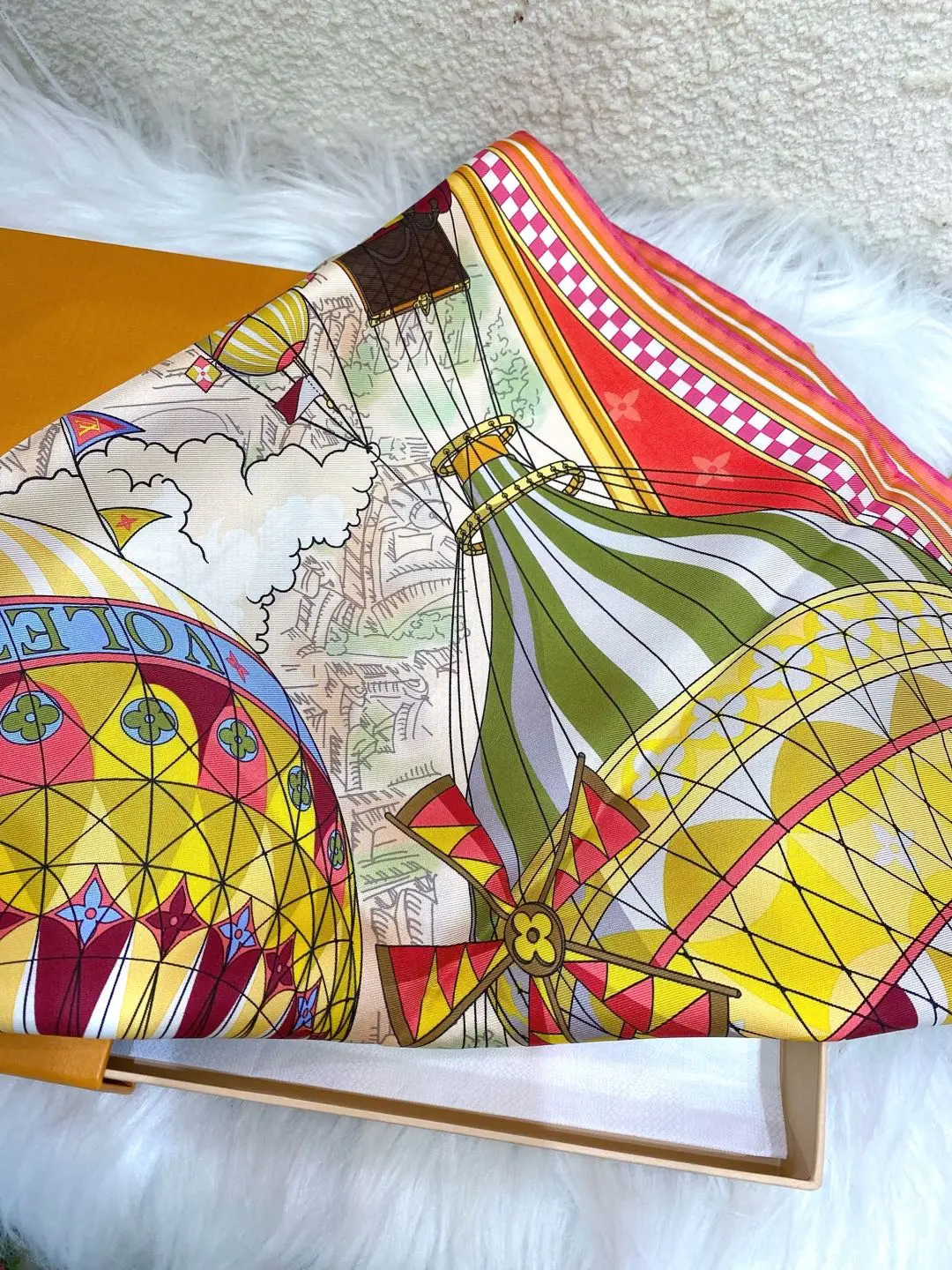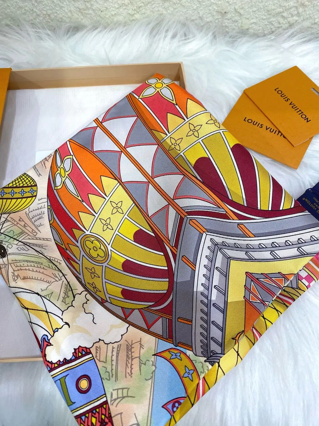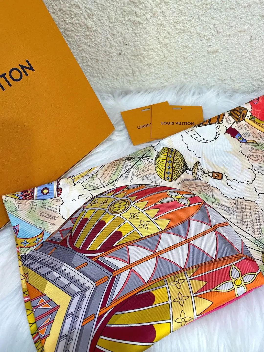 【商品详情】正品二手 lv from the cloud 热气球的红色 桑蚕丝 丝巾🫢全新 90*90 配件:吊牌 盒子。未使用 优雅漂亮