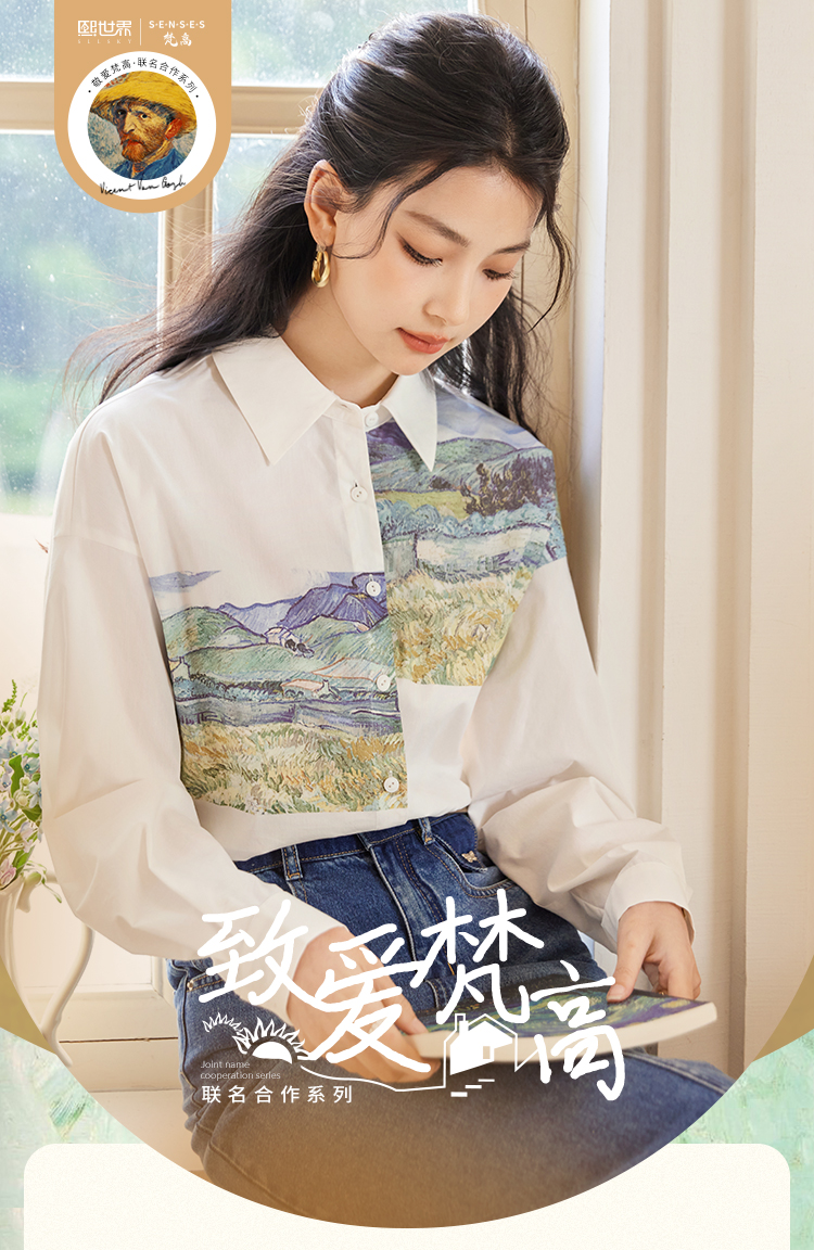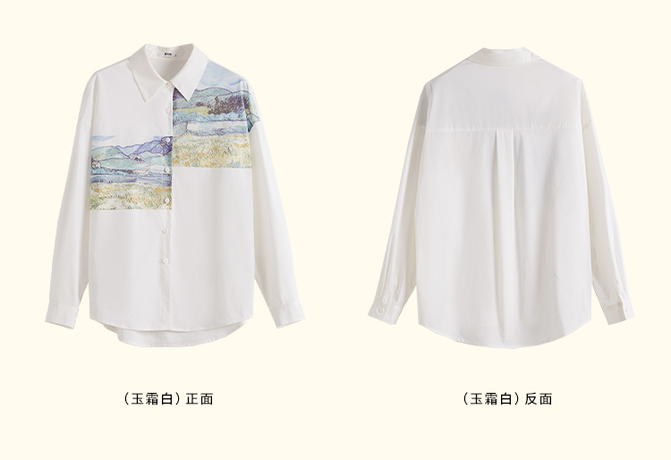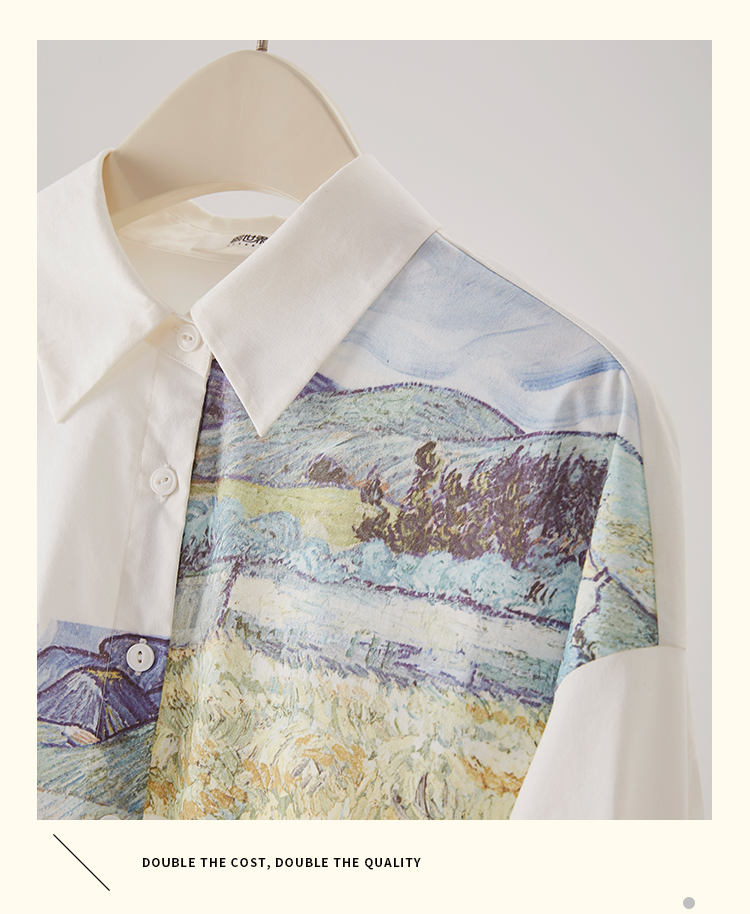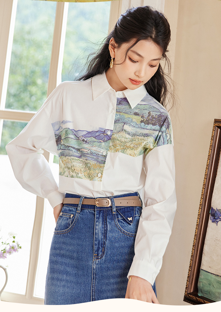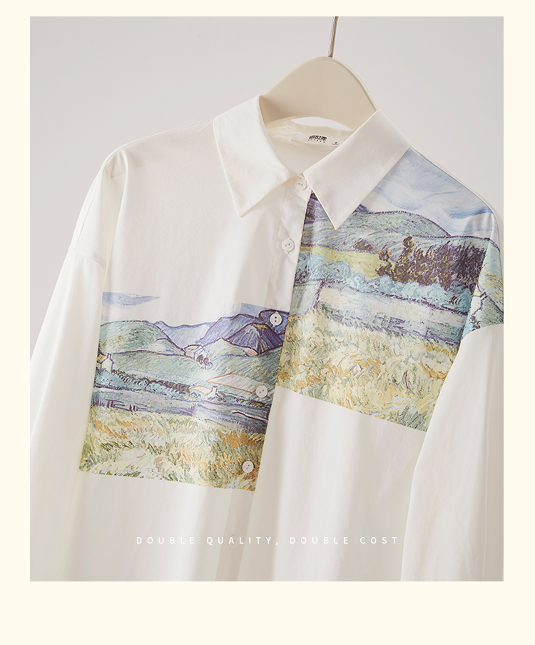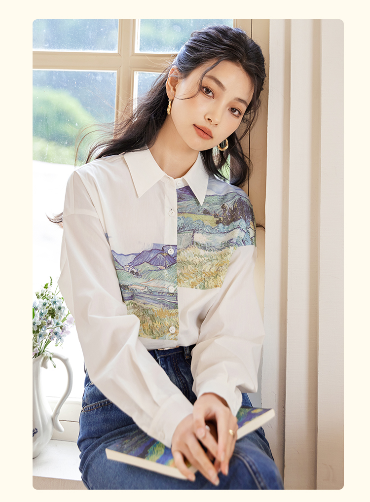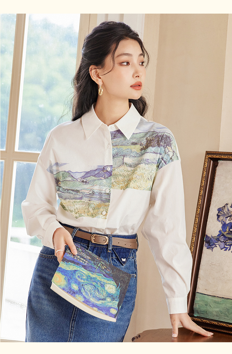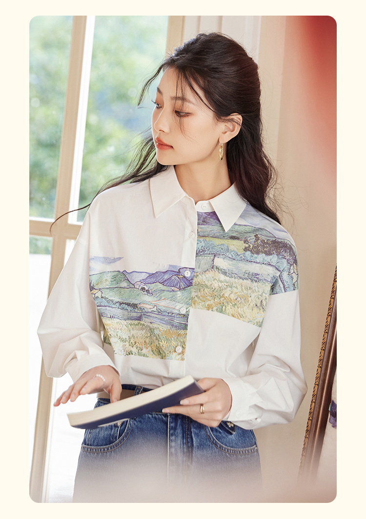 【开春特惠】梵高联名熙世界油画感复古印花衬衫2025初秋新款长袖女士衬衣上衣