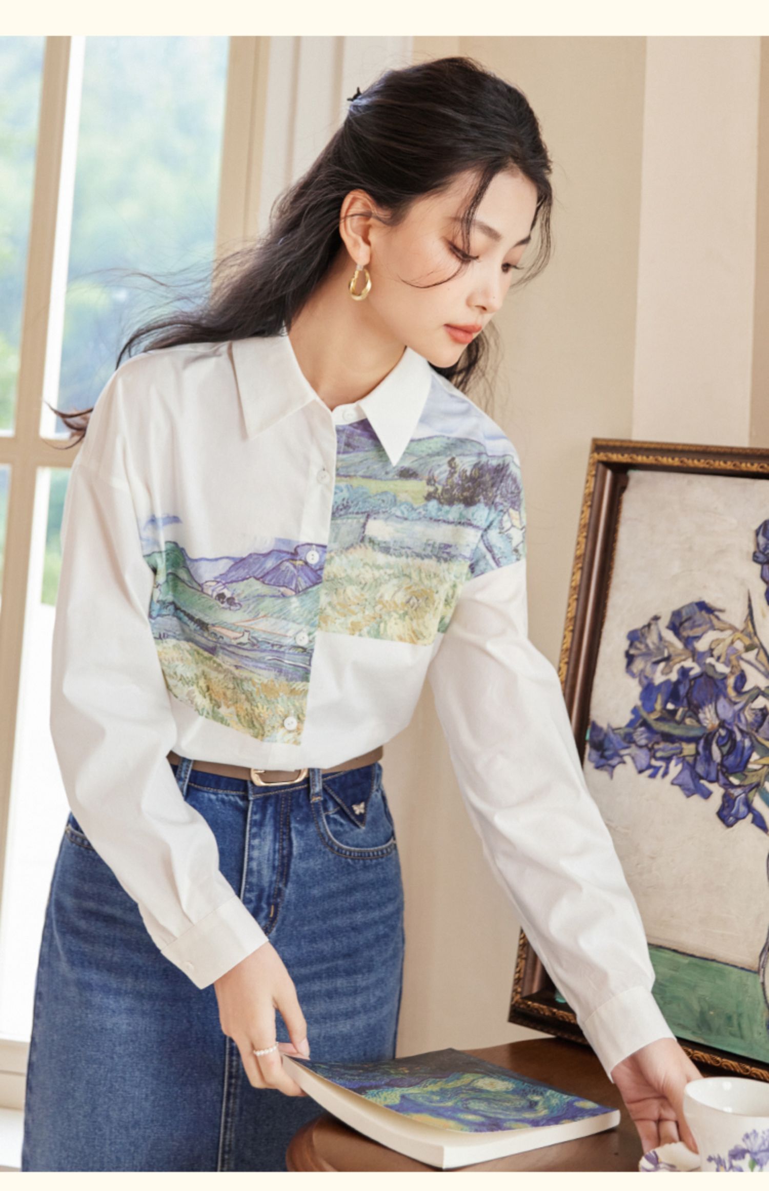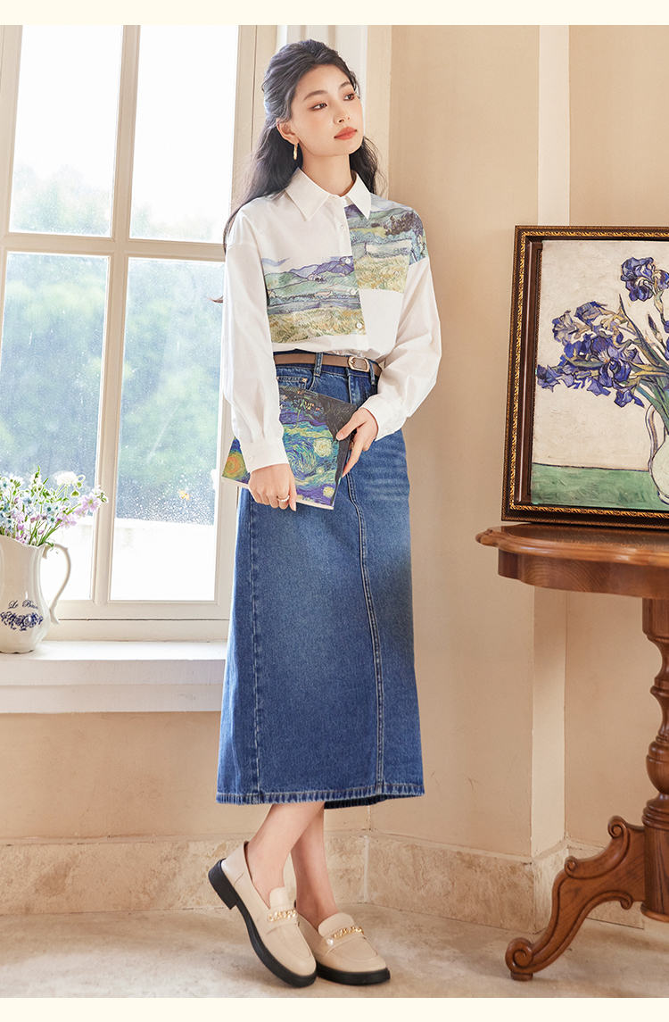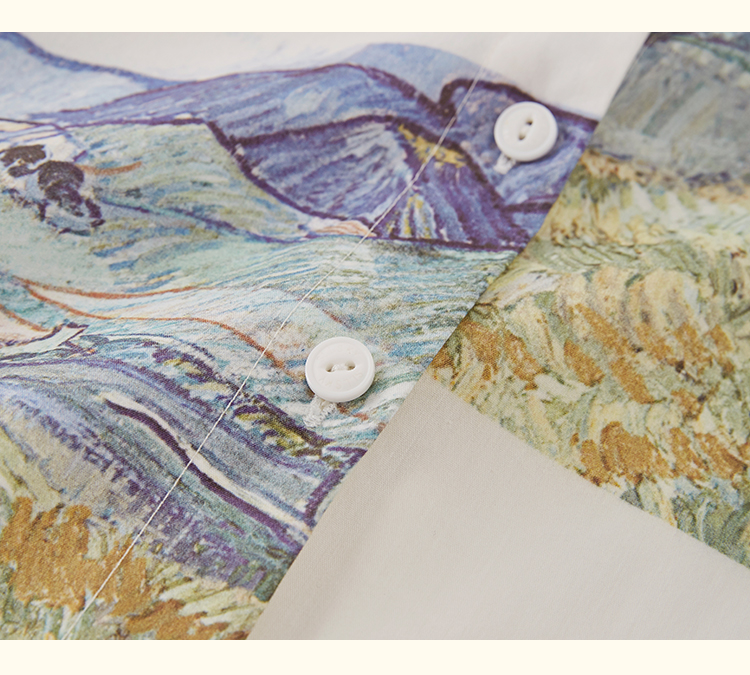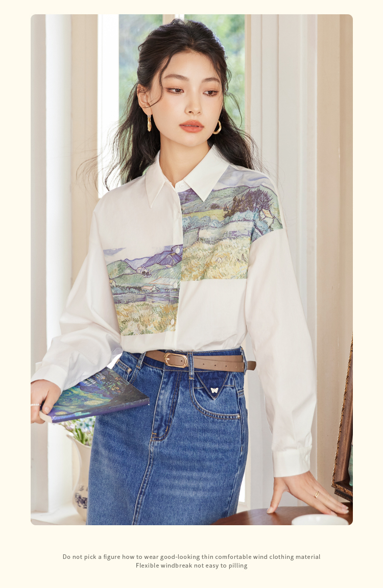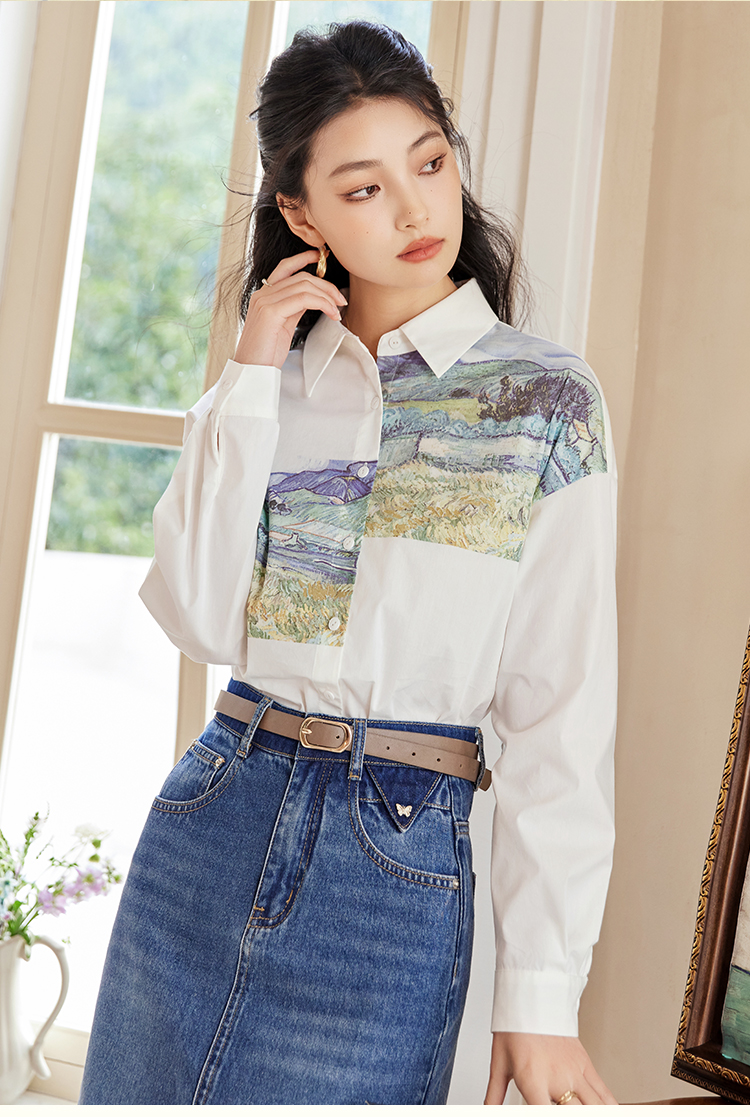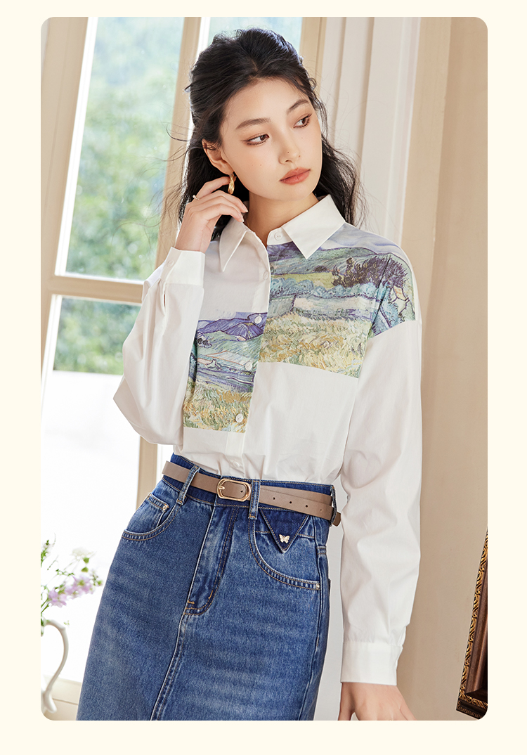 【开春特惠】梵高联名熙世界油画感复古印花衬衫2025初秋新款长袖女士衬衣上衣