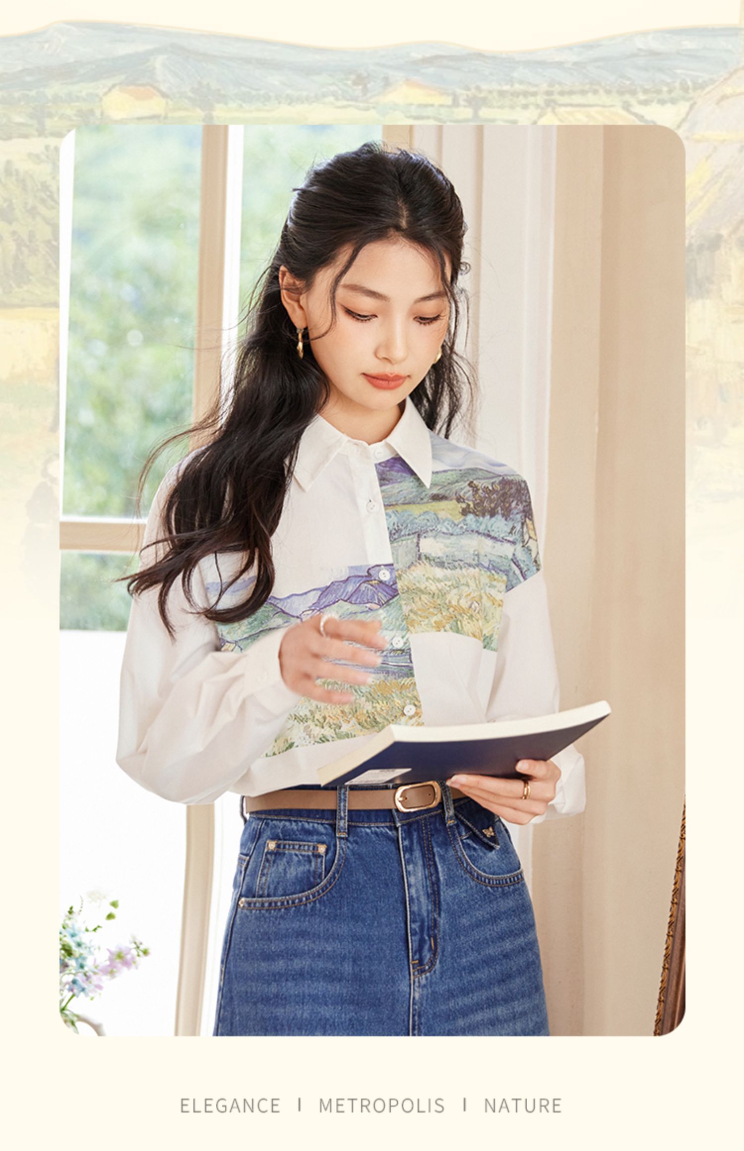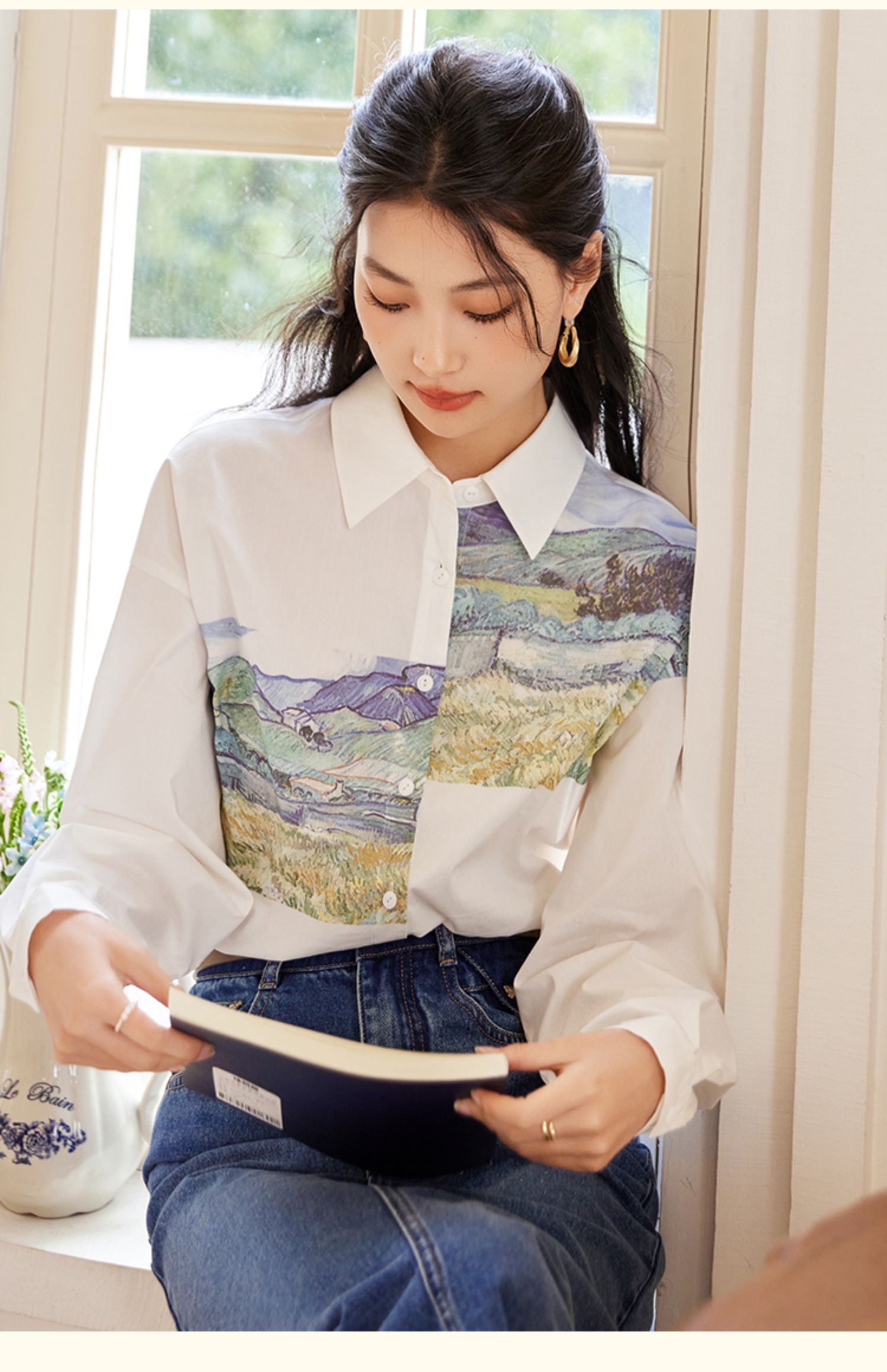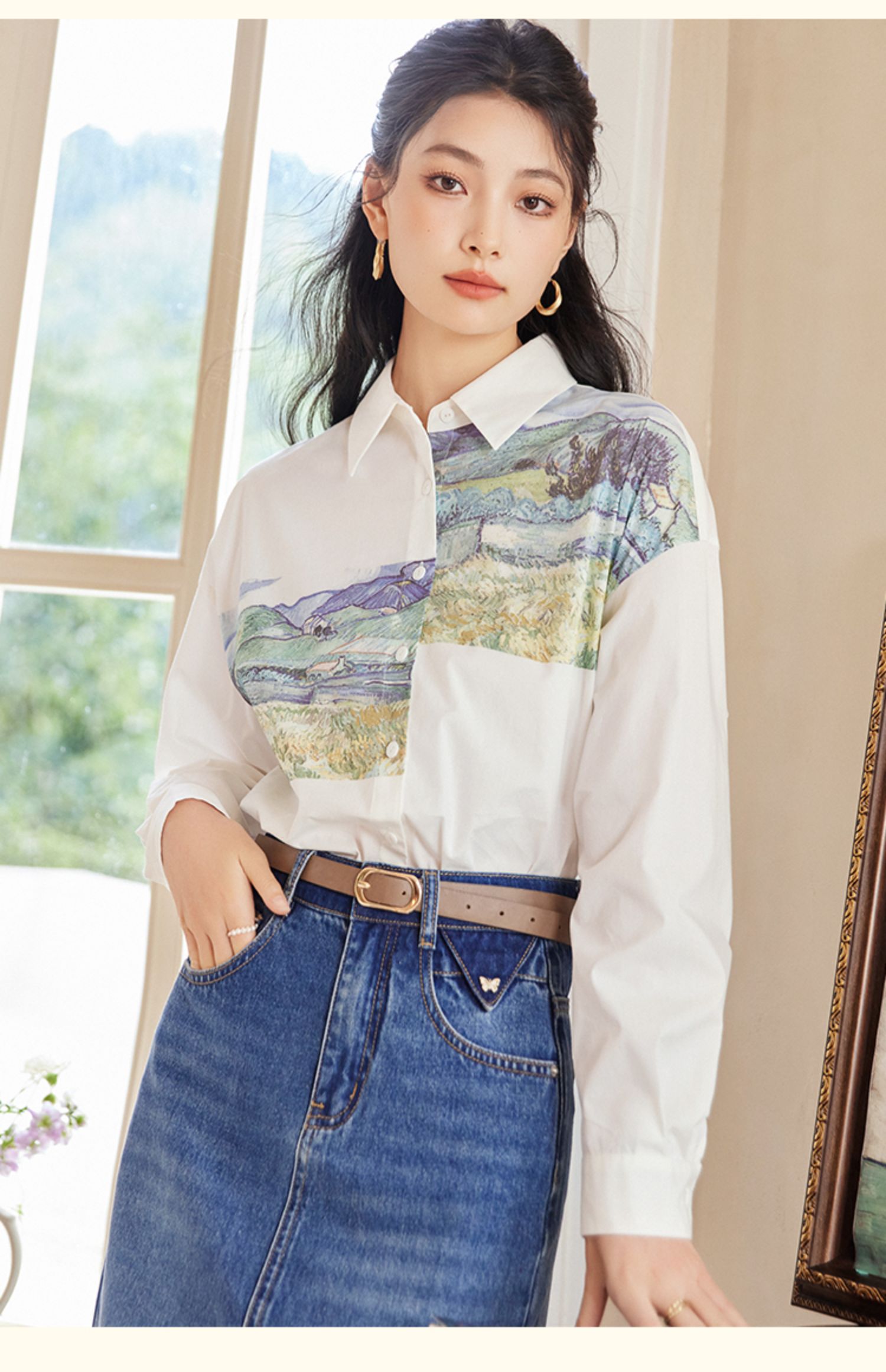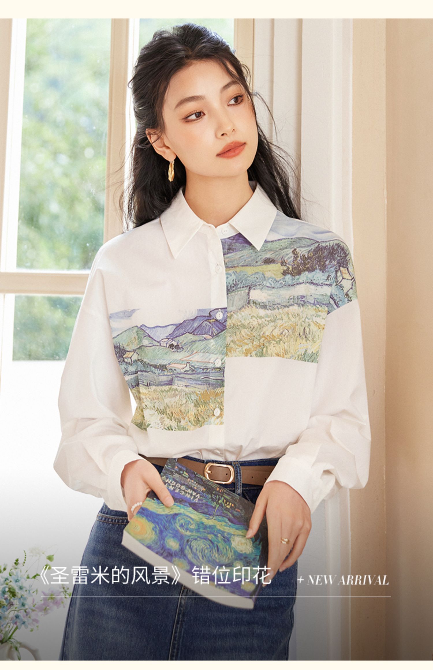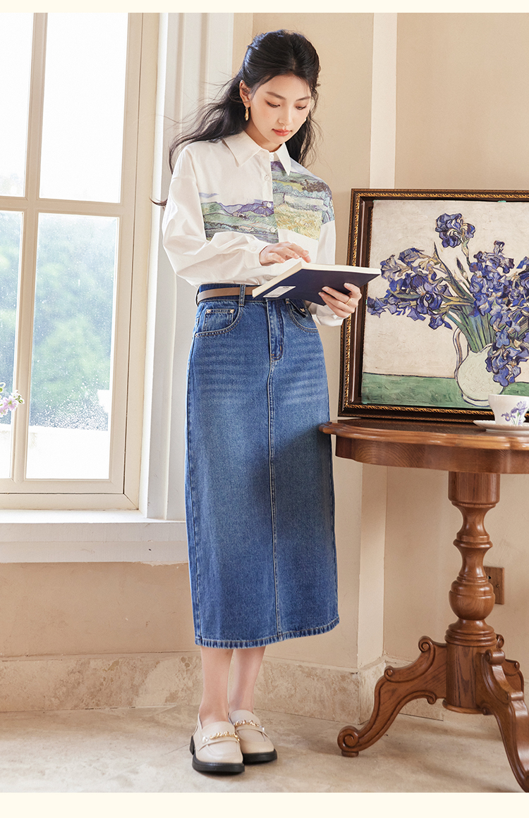 【开春特惠】梵高联名熙世界油画感复古印花衬衫2025初秋新款长袖女士衬衣上衣