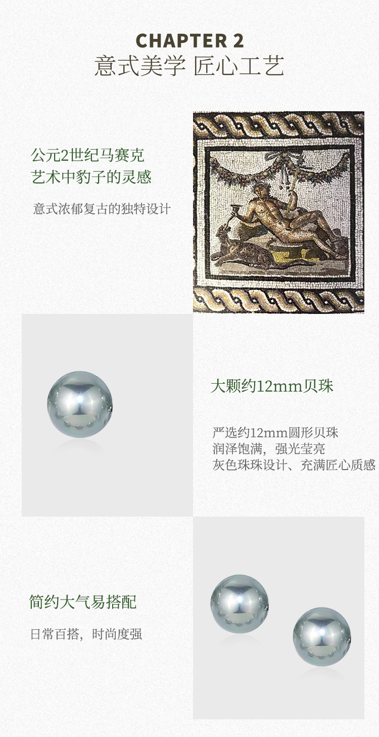【段奥娟同款】Retro Chic 意大利复古创意饰品 花豹耳钉/项链(真多麻灰)