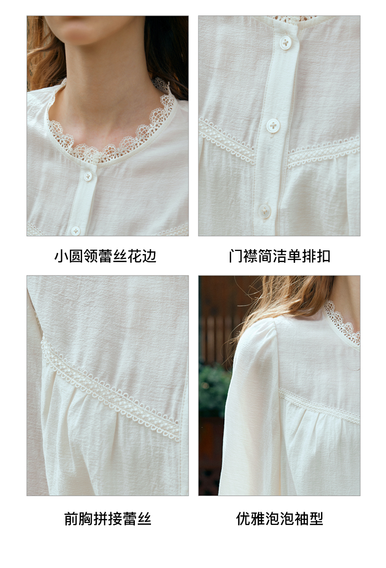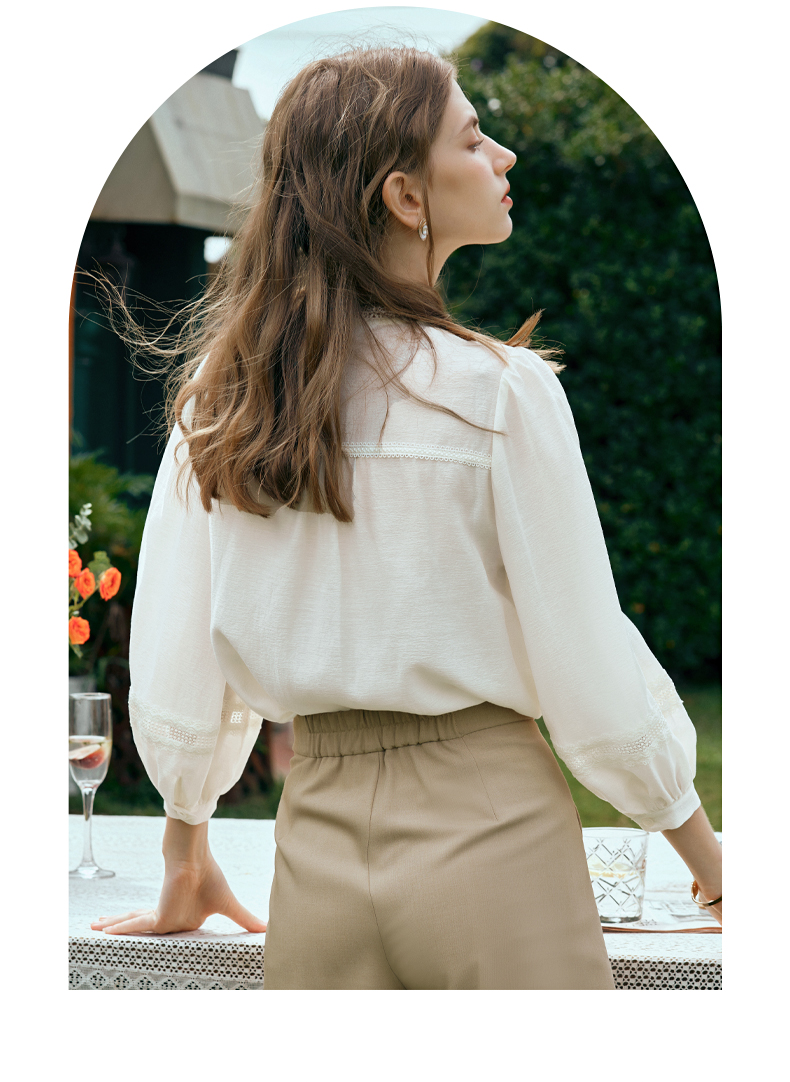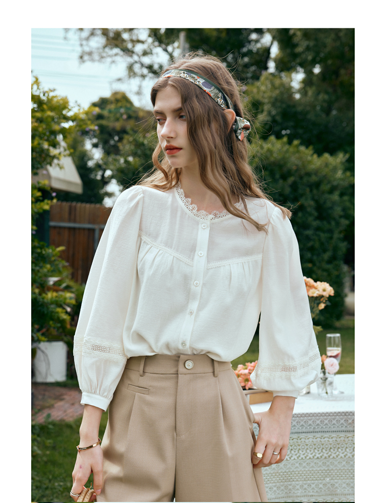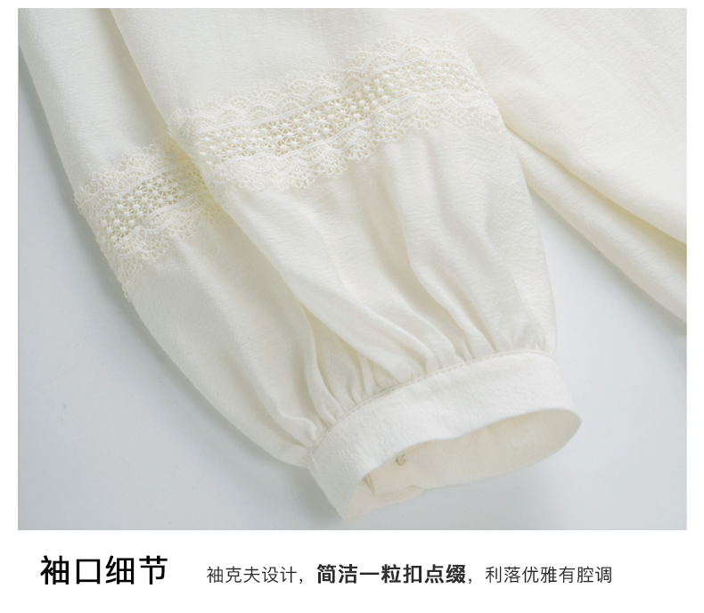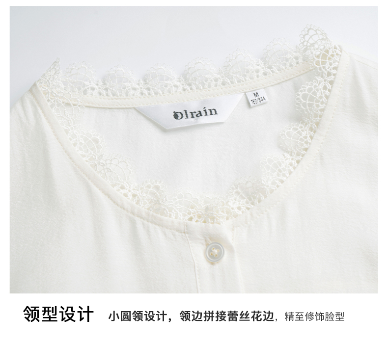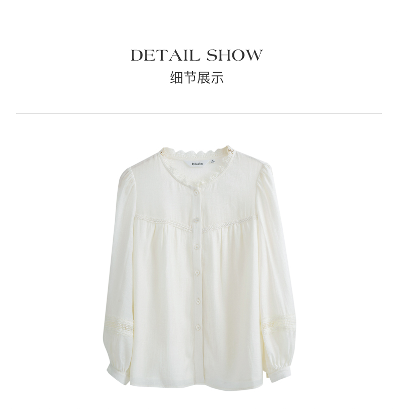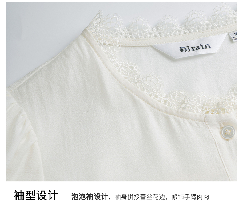 OLrain欧芮儿米白色雪纺衫女早春2024新款设计感气质蕾丝衬衣上衣