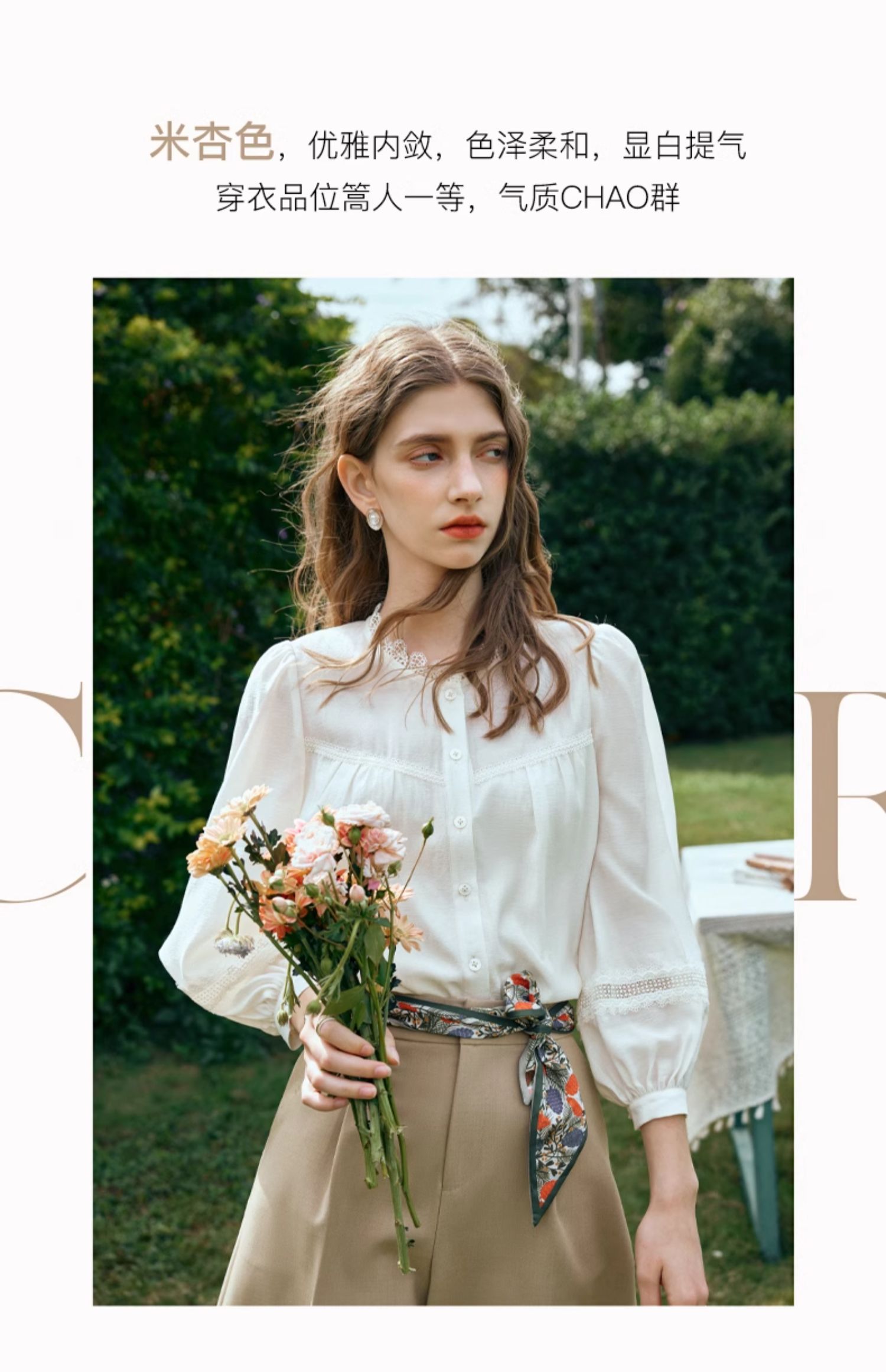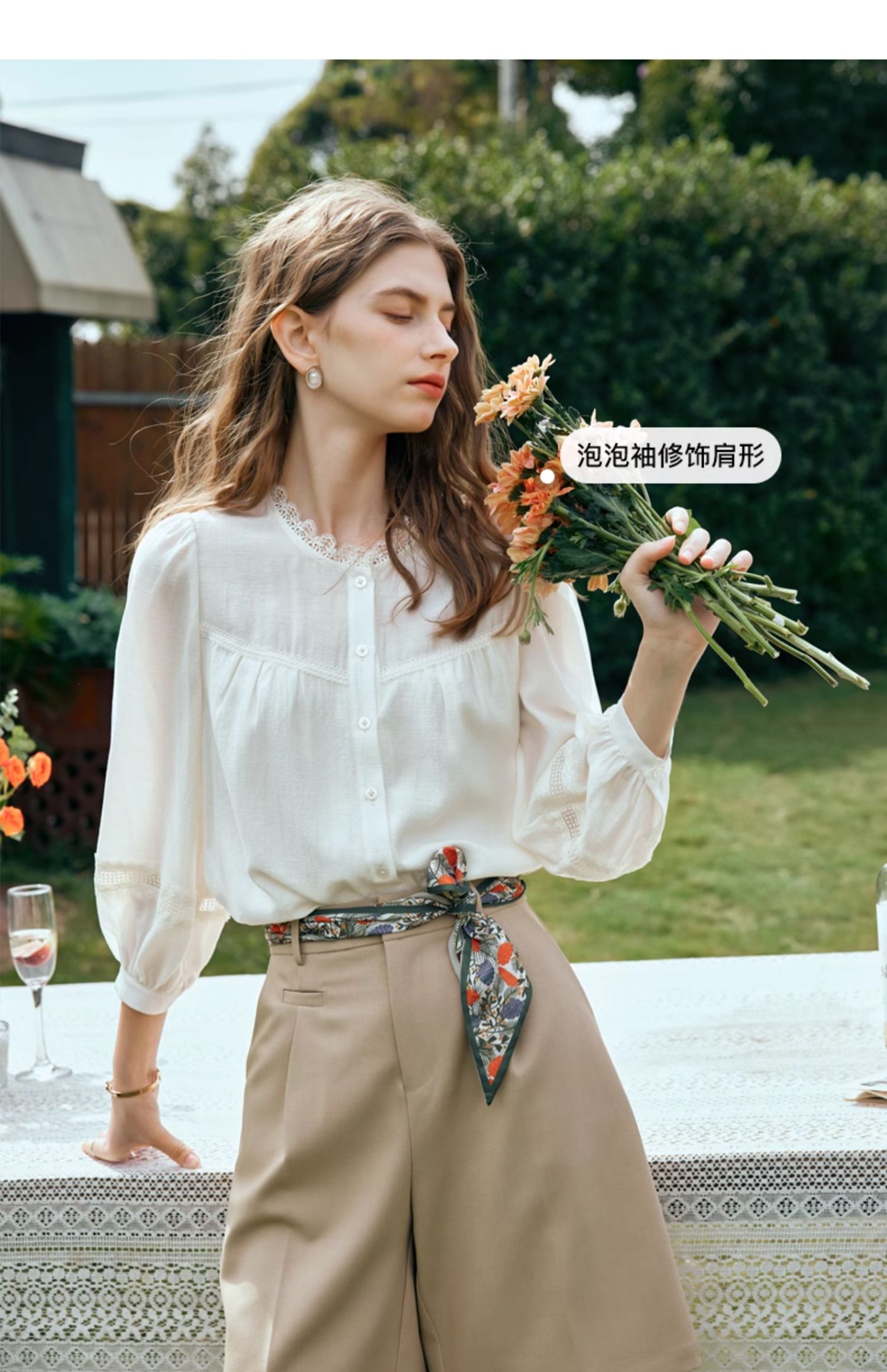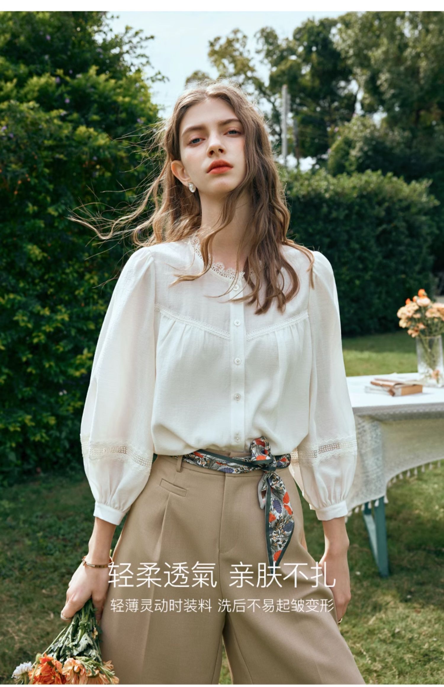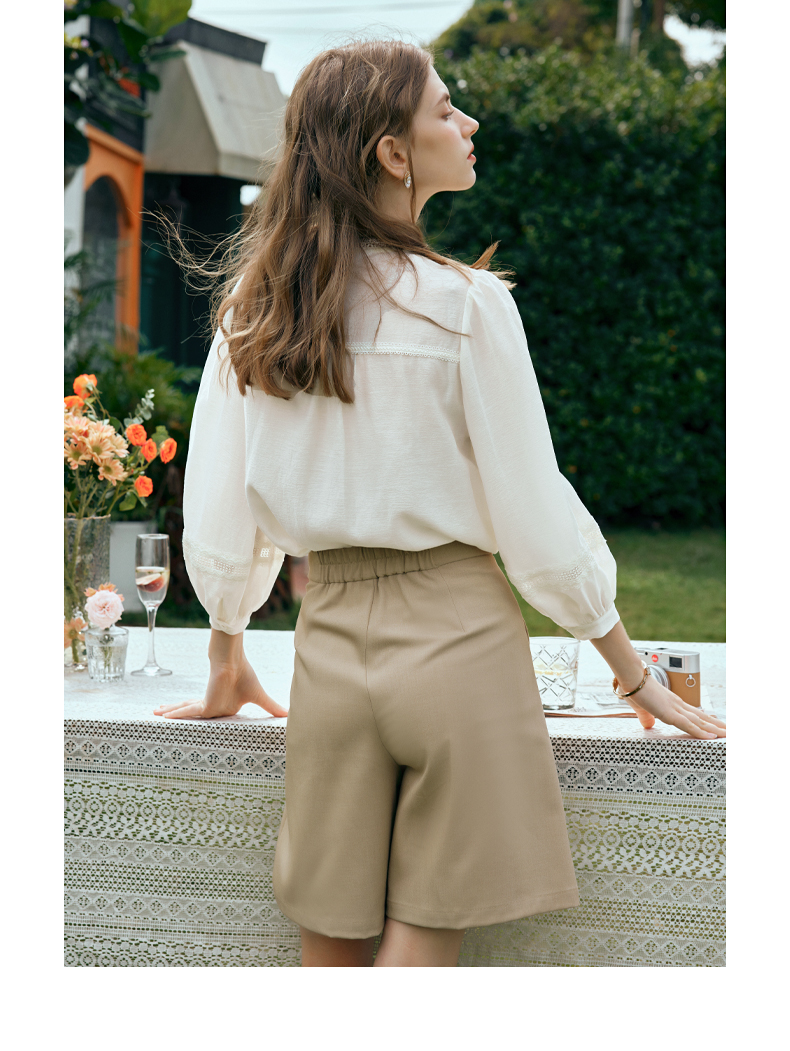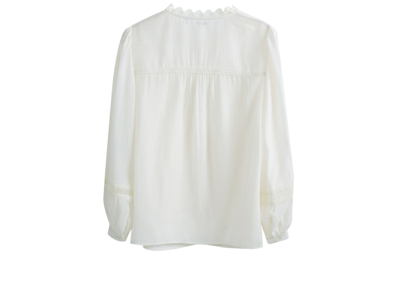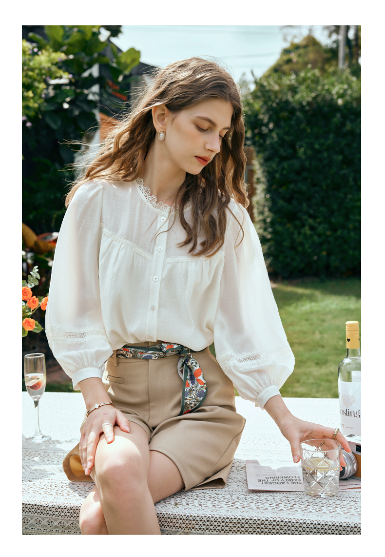 OLrain欧芮儿米白色雪纺衫女早春2024新款设计感气质蕾丝衬衣上衣