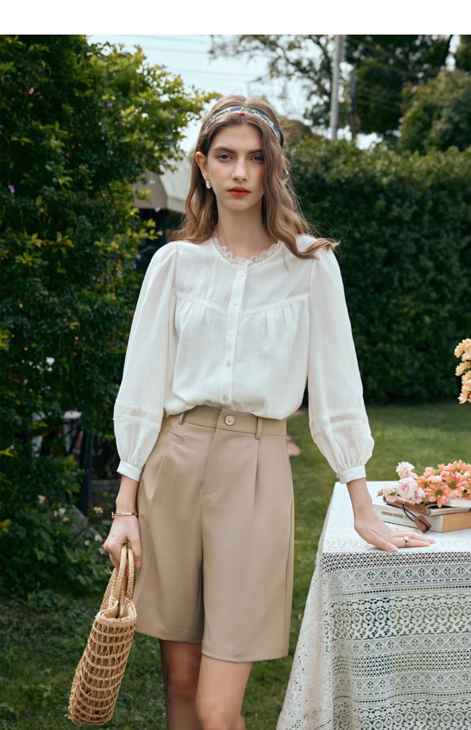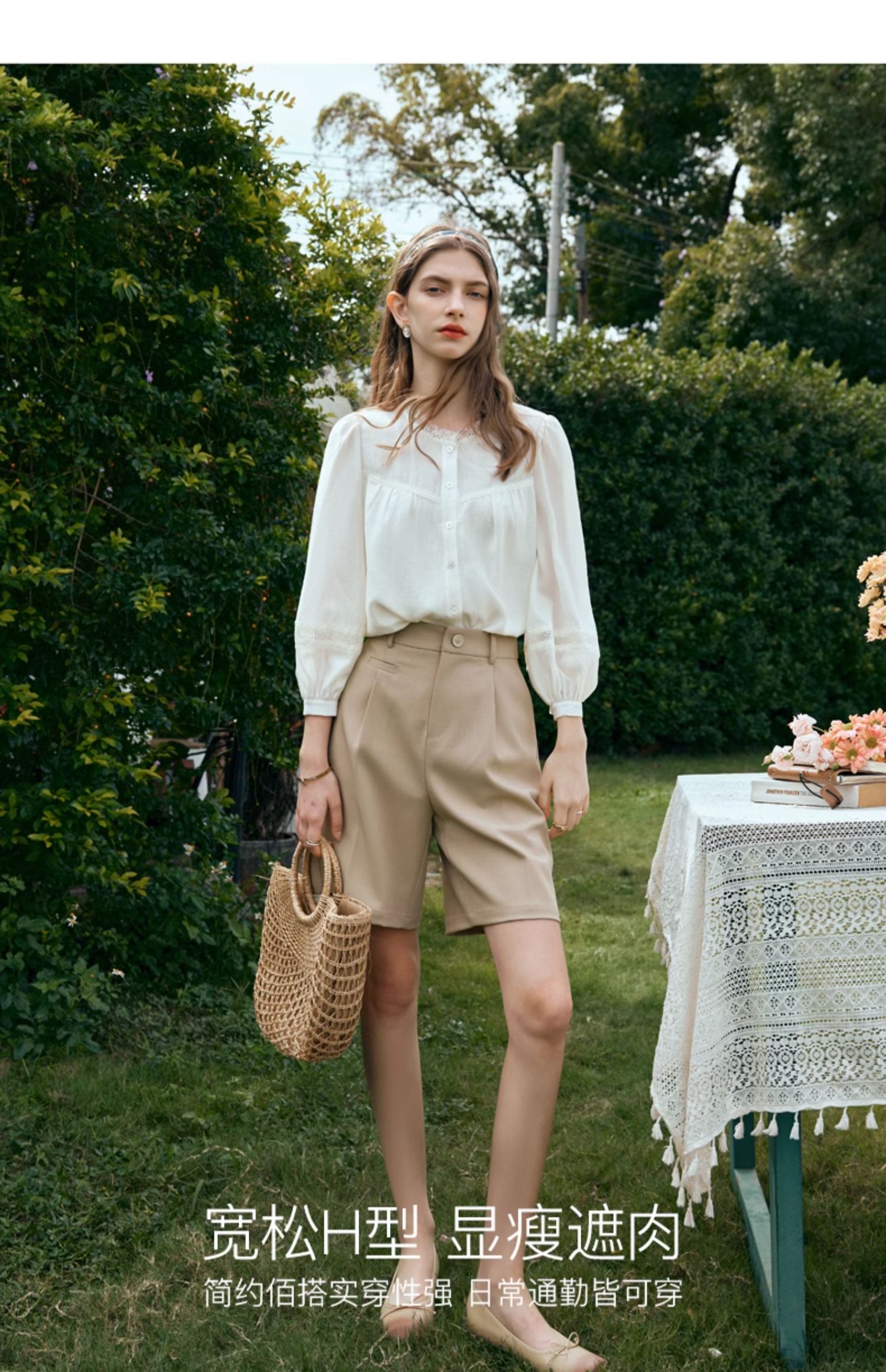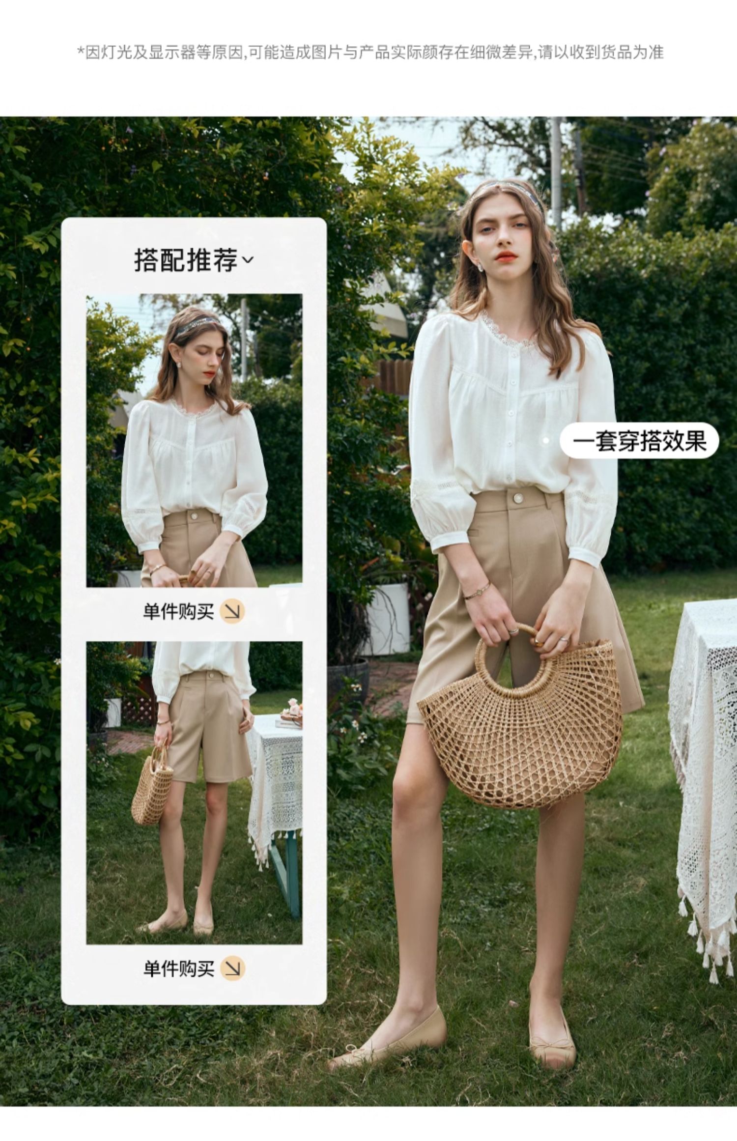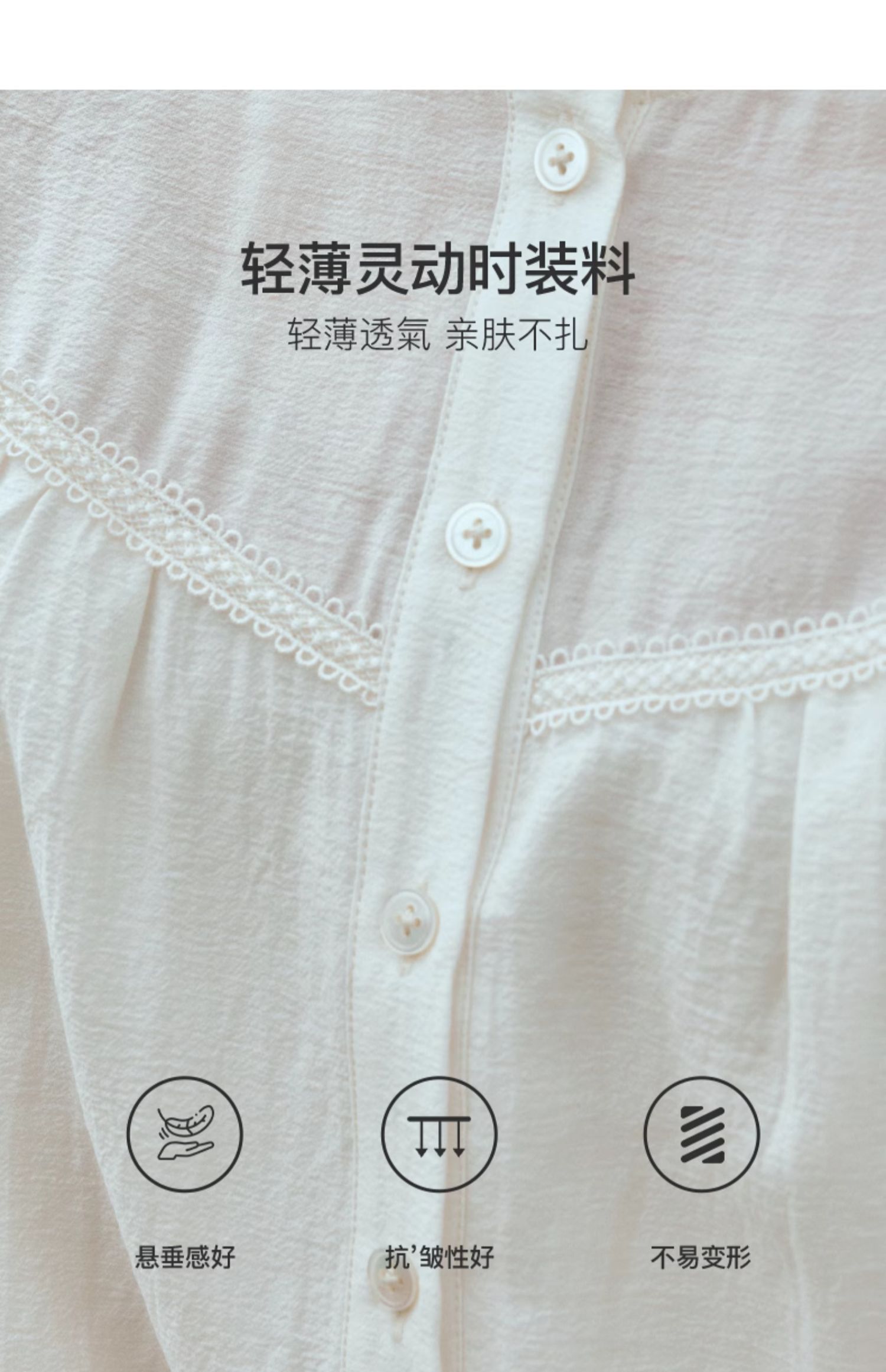 OLrain欧芮儿米白色雪纺衫女早春2024新款设计感气质蕾丝衬衣上衣