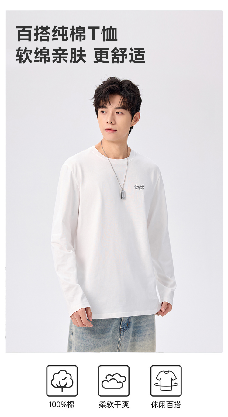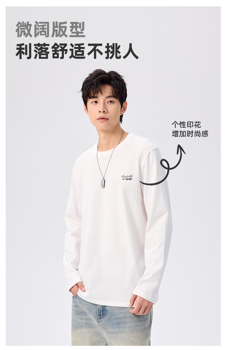 gxgjeans 男装【棉100%】情侣款长袖T恤25秋款舒适叠穿内搭男士打底衫K&C