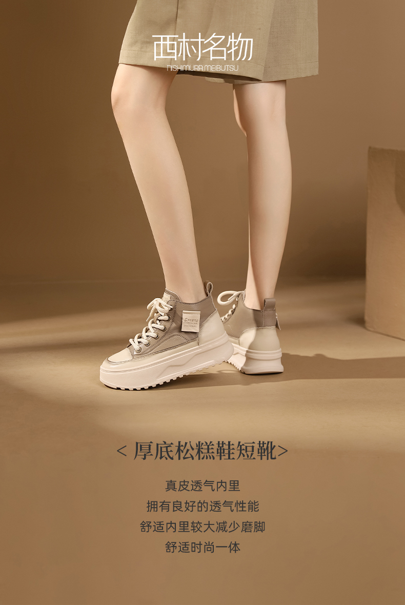 西村名物2023秋季新款高帮厚底松糕鞋短靴圆头复古做旧单鞋X23DS35681