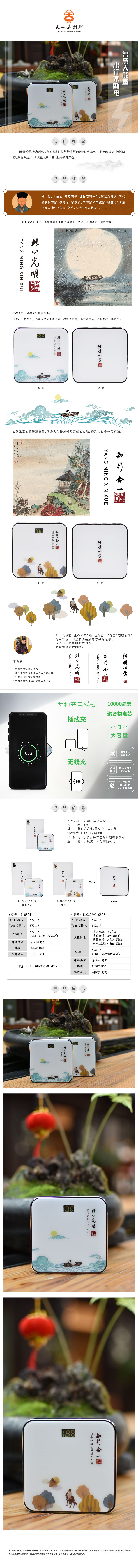 羽诗制造出品 阳明心学10000毫安文创充电宝