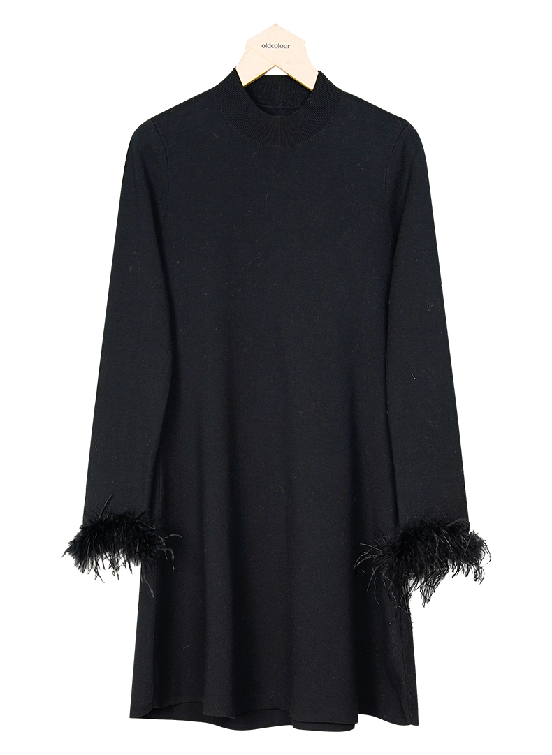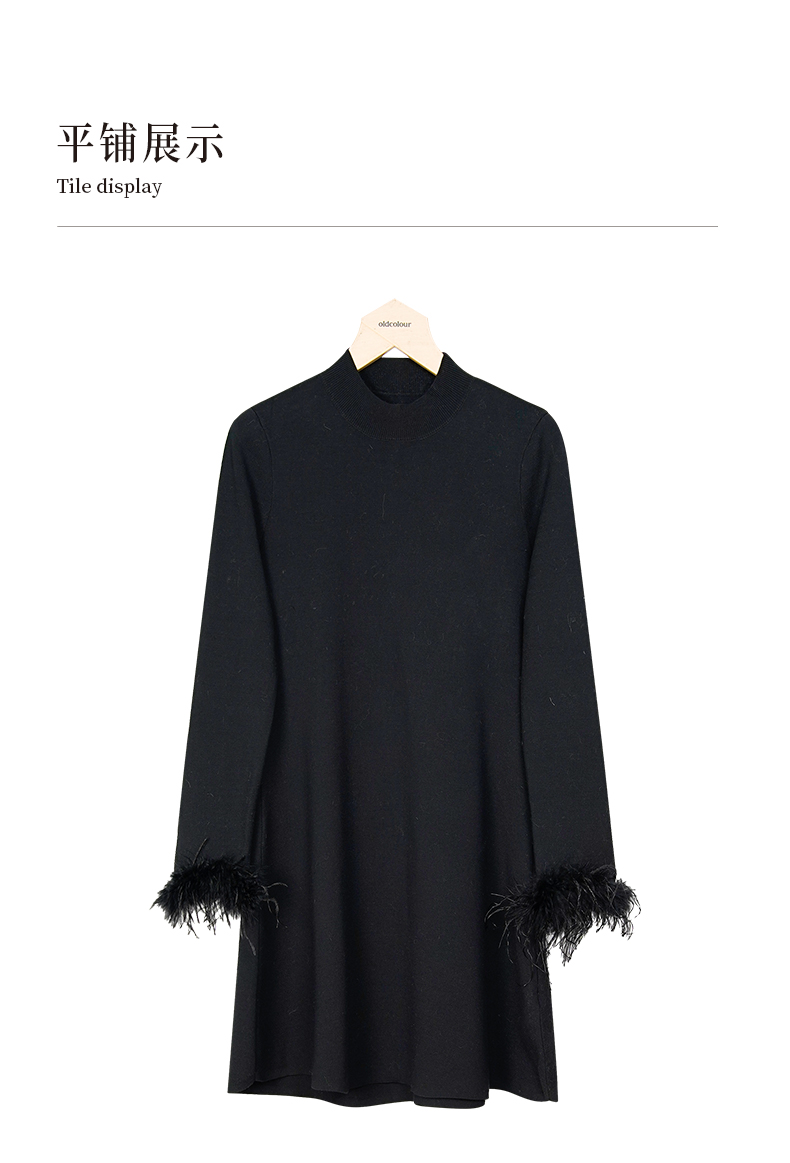 oldcolour冬季新款黑色优雅气质宽松显瘦针织连衣裙女P461002A1