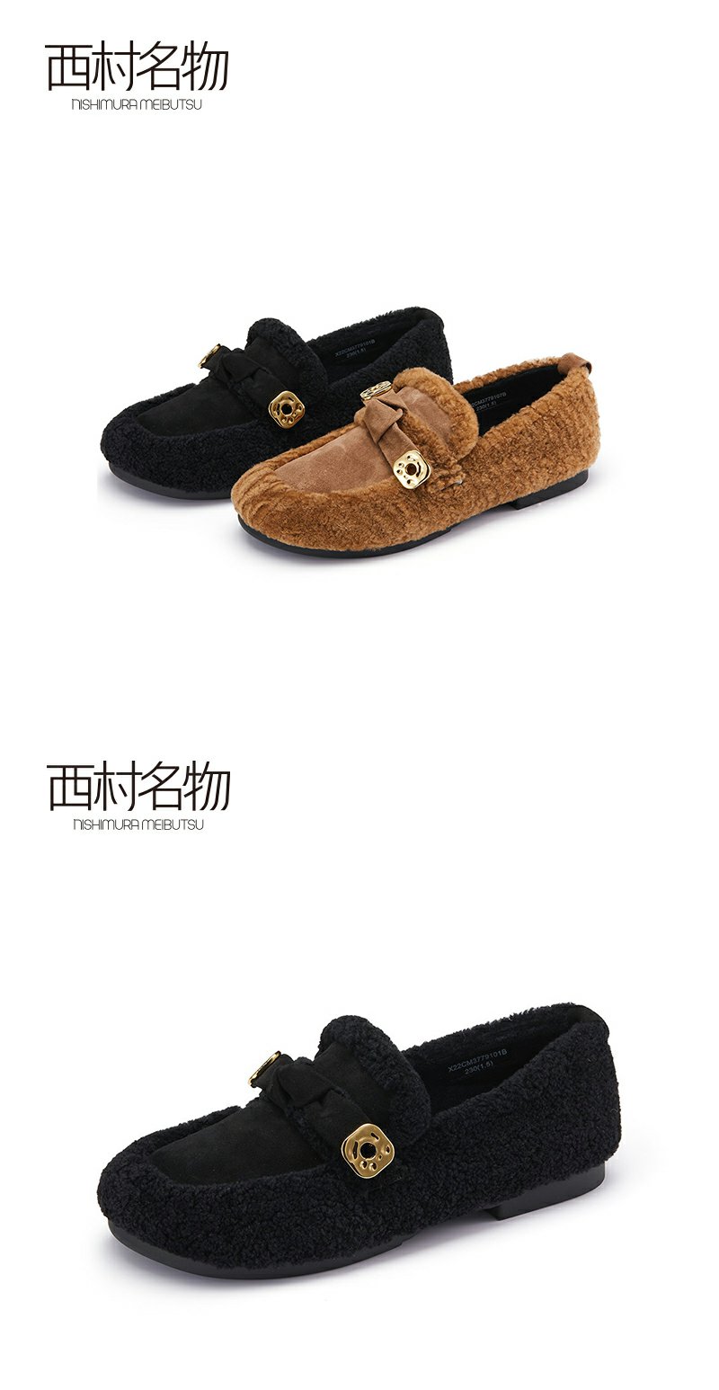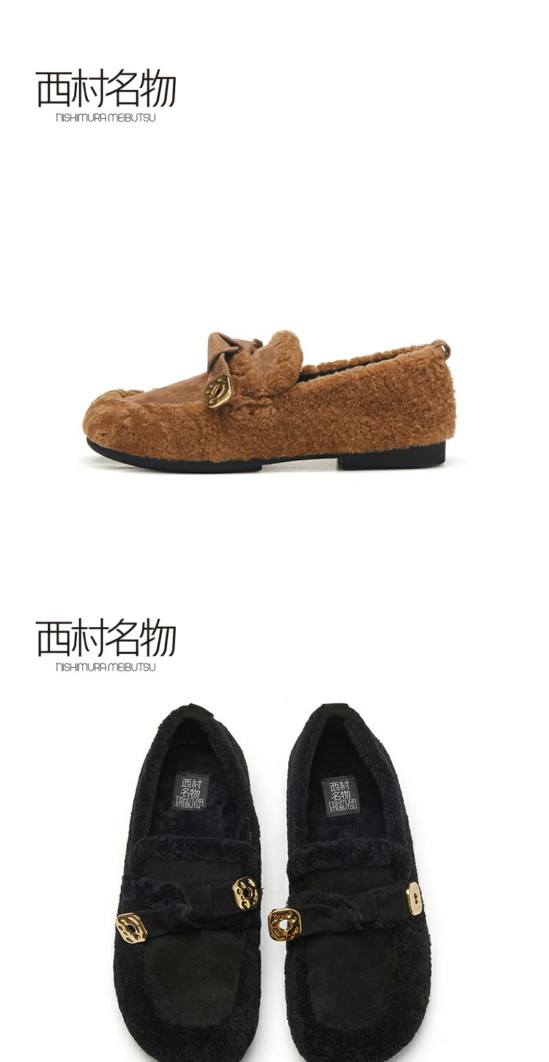 西村名物2022秋季款轻复古加绒毛毛鞋女羊毛皮柔软休闲女鞋37791