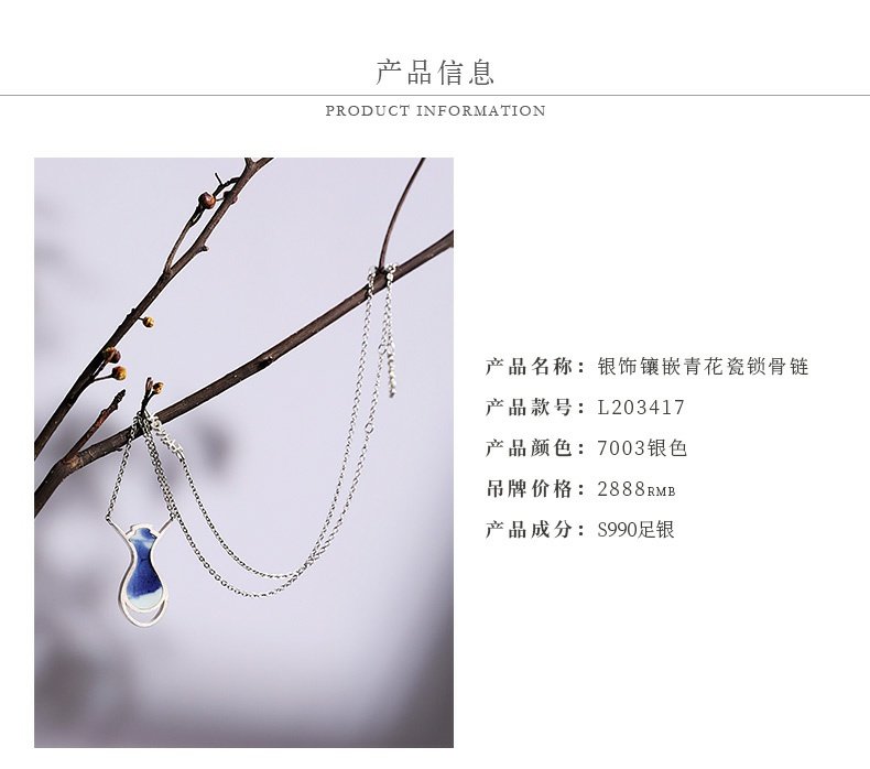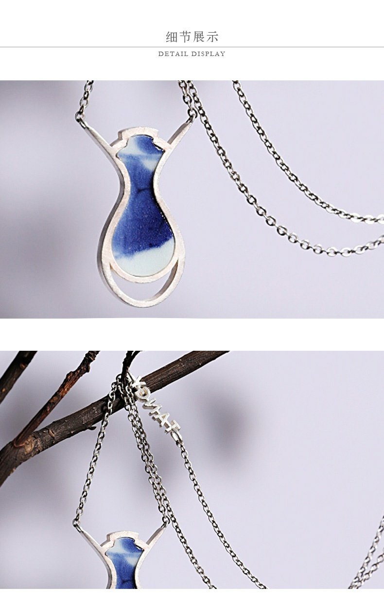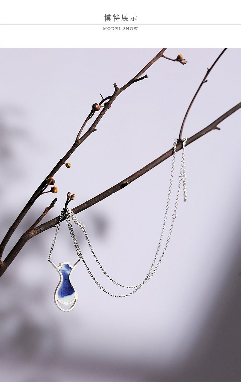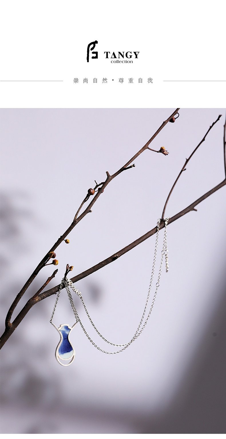 TANGY Collection/天意精品设计师原创银饰镶嵌青花瓷锁骨链