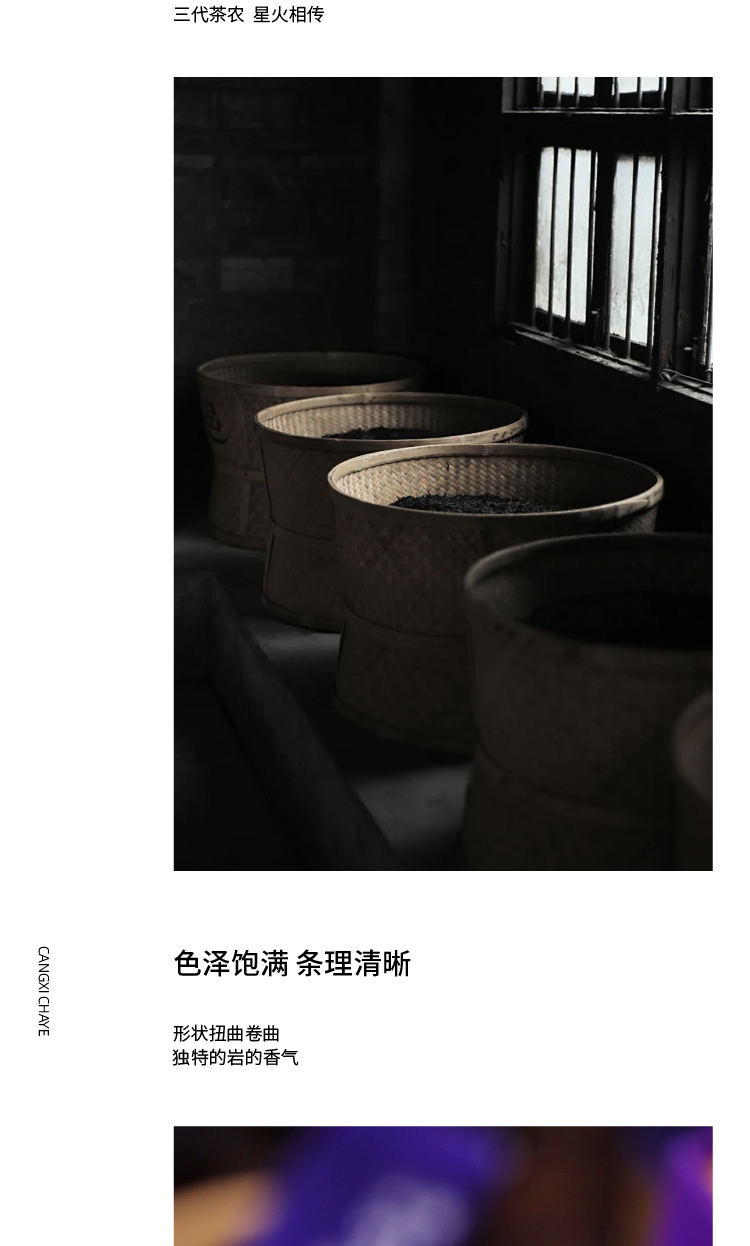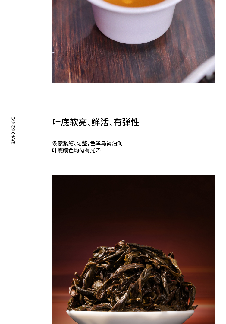 条索紧结肥壮,色泽鲜润,带扭曲条形,独特的岩的香气,耐泡度高;