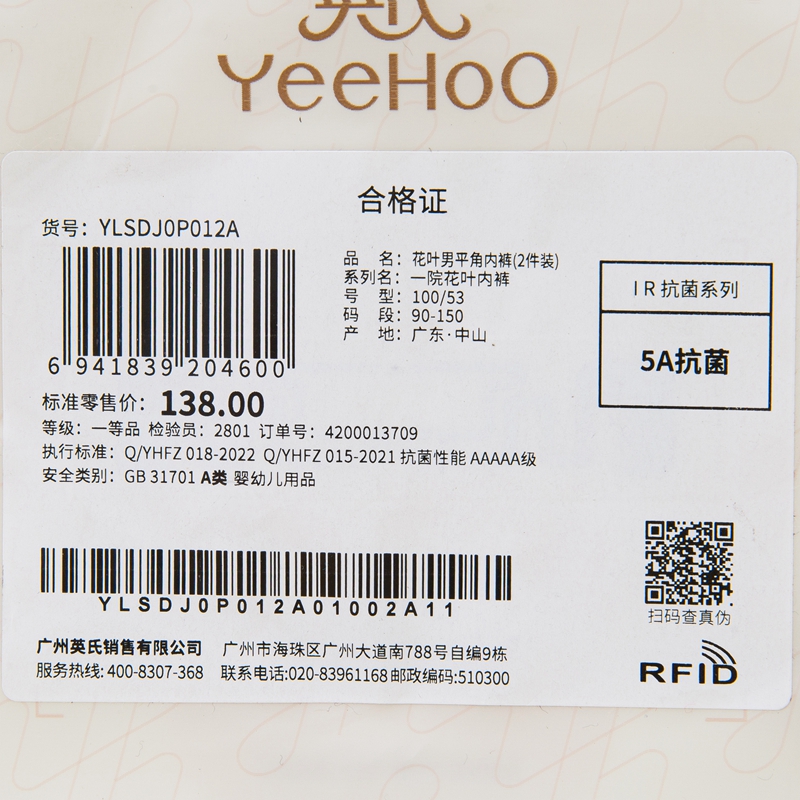 英氏儿童内裤平角裤男女宝宝小内裤YLSDJ01002A01 YLSDJ01001A01