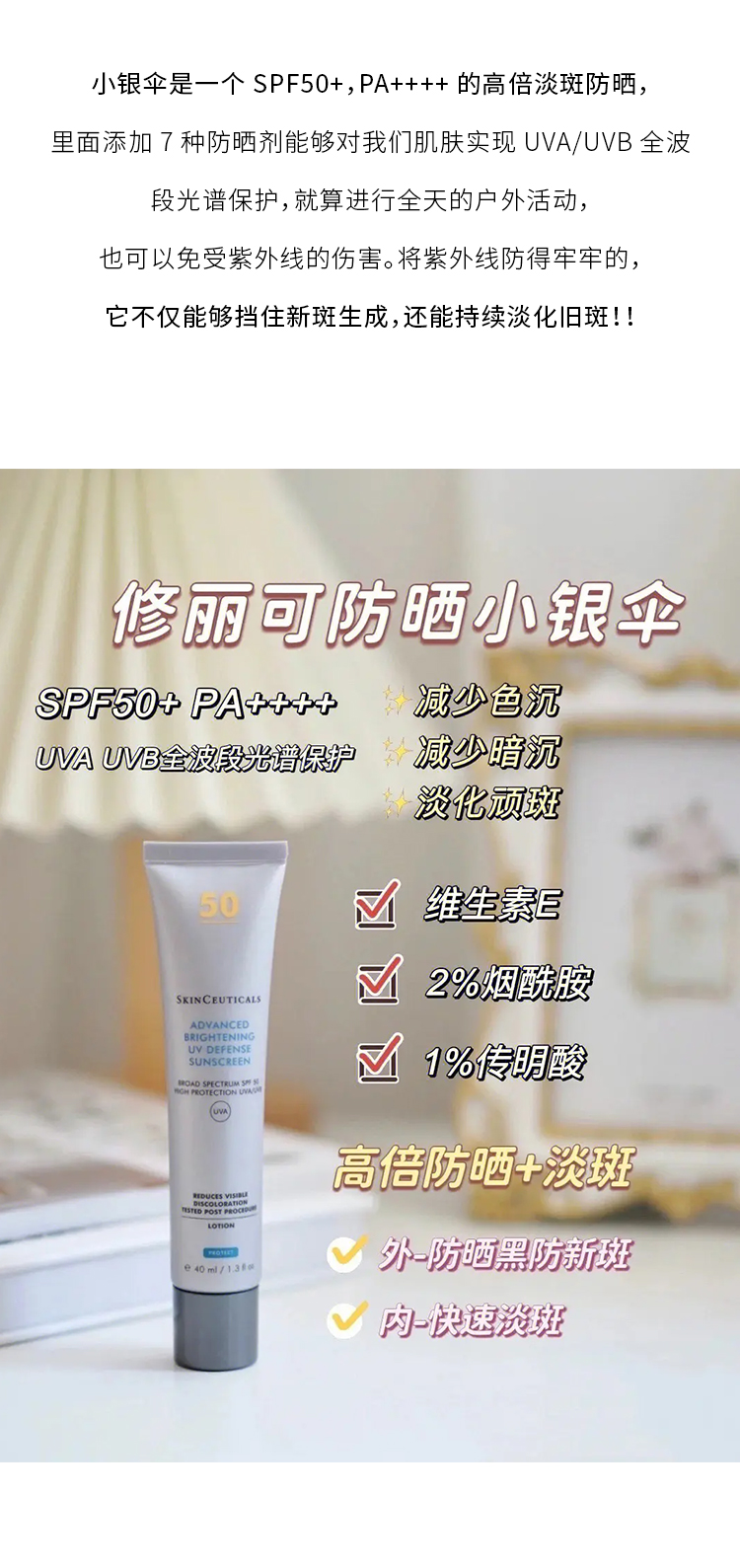 修丽可小银伞防晒SPF50+ 美白淡斑二合一