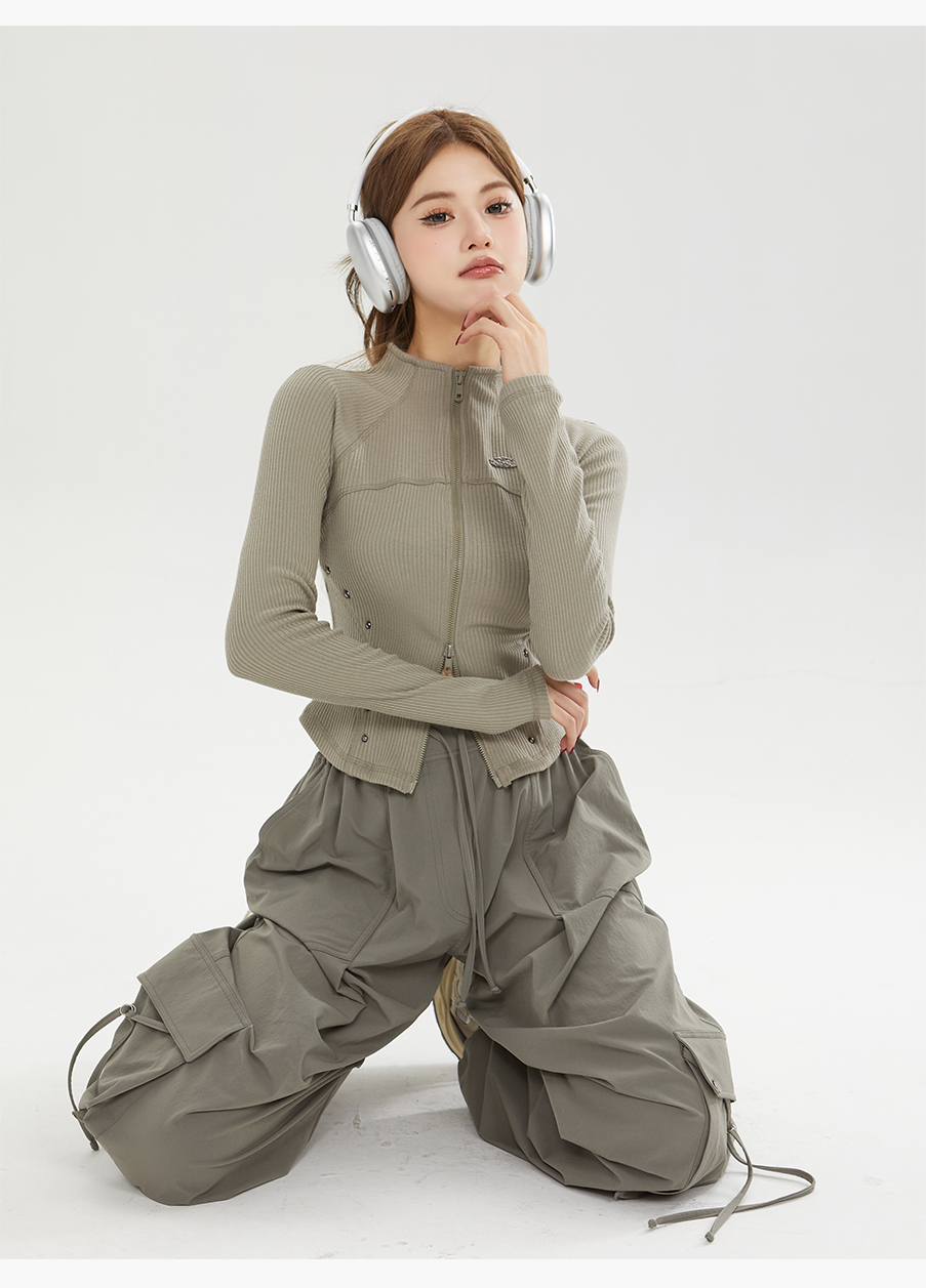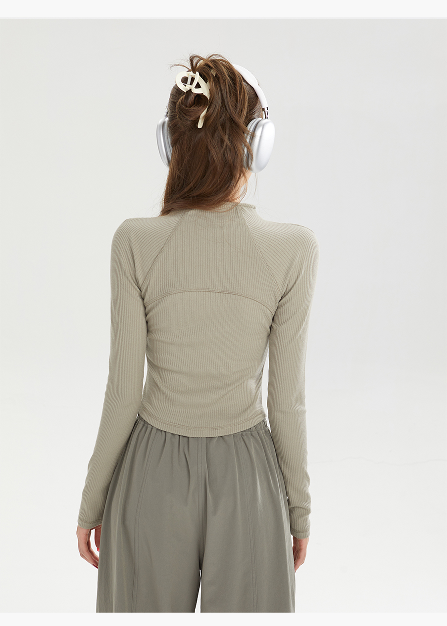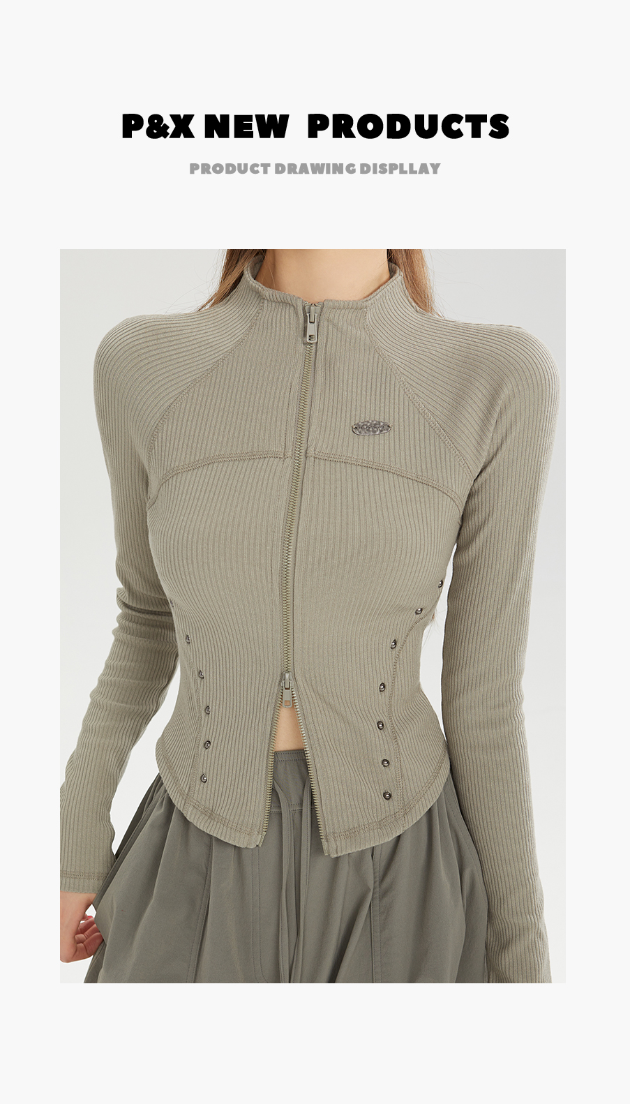 P&X设计师女装2025冬季针织长袖打底衫立领短款T恤825402097 杏色