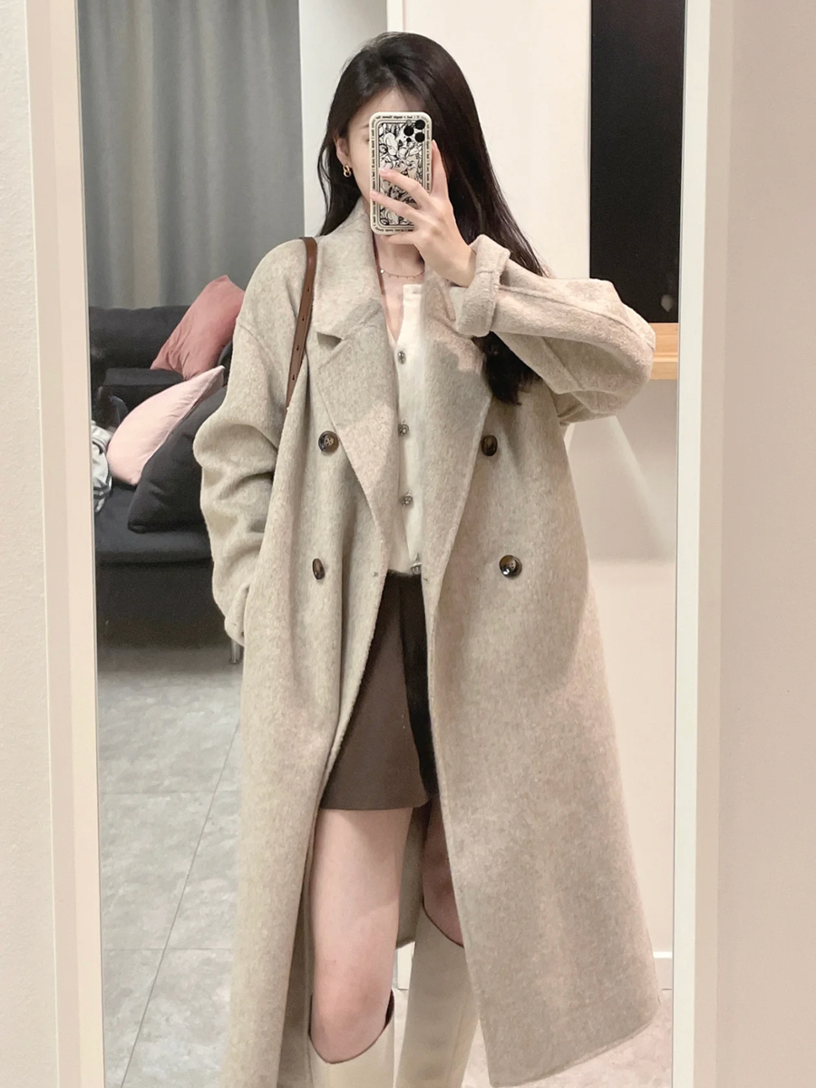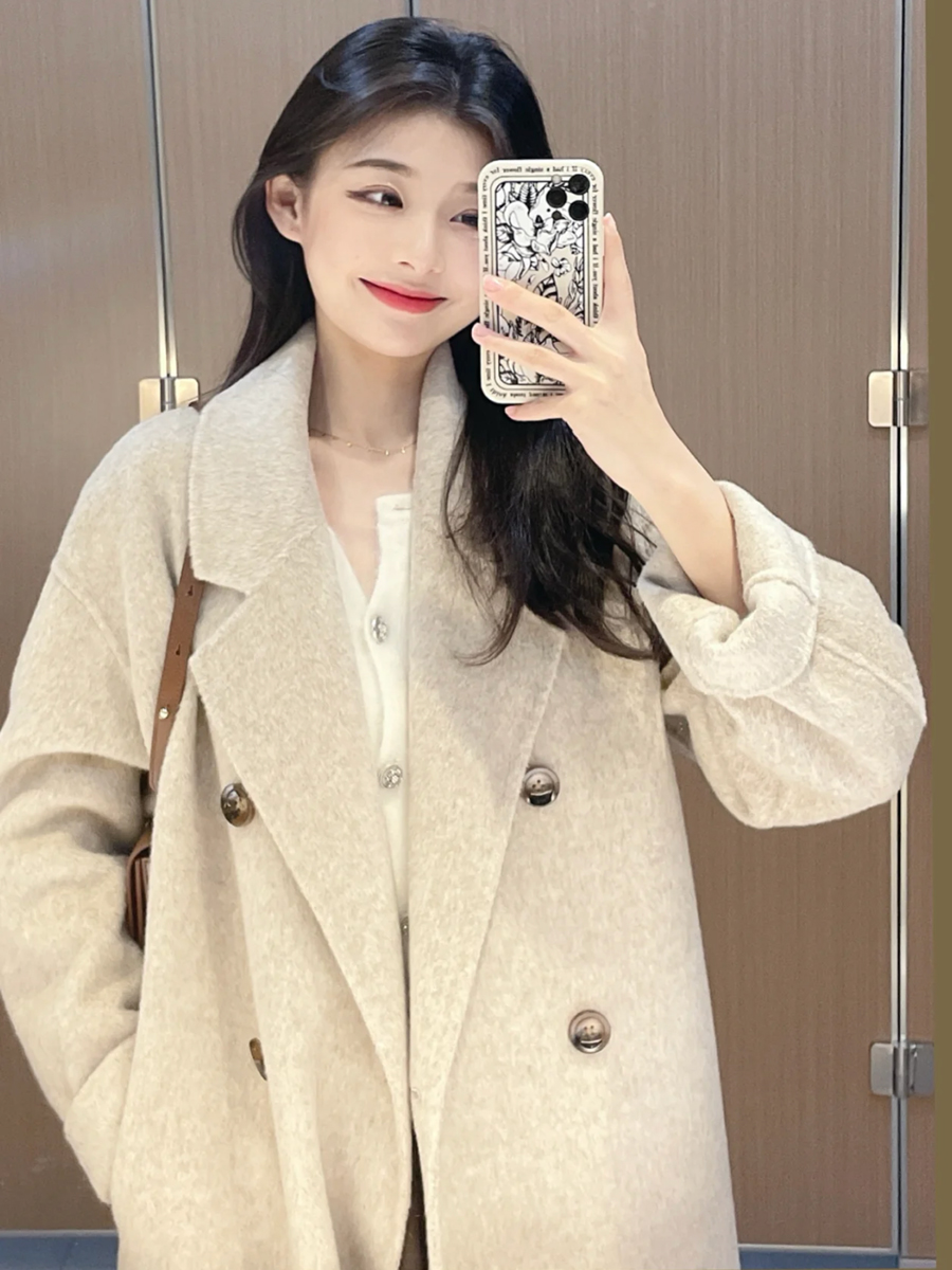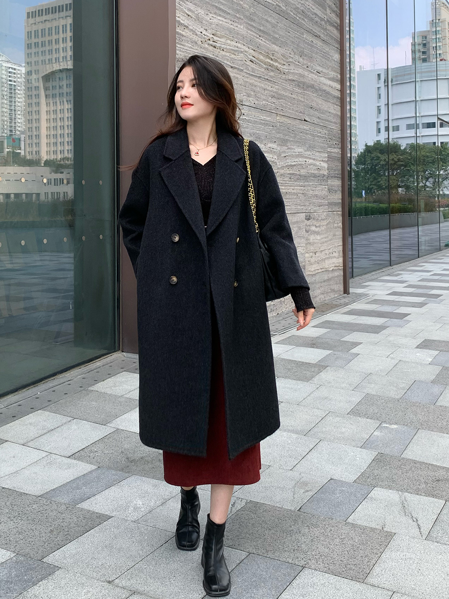 【百图lulu定制】【简爱双面呢】【全码预售12月25日发】90澳大利亚羊毛 10羊驼毛 宽松 显瘦 气质 西装领 毛呢外套 双面呢大衣