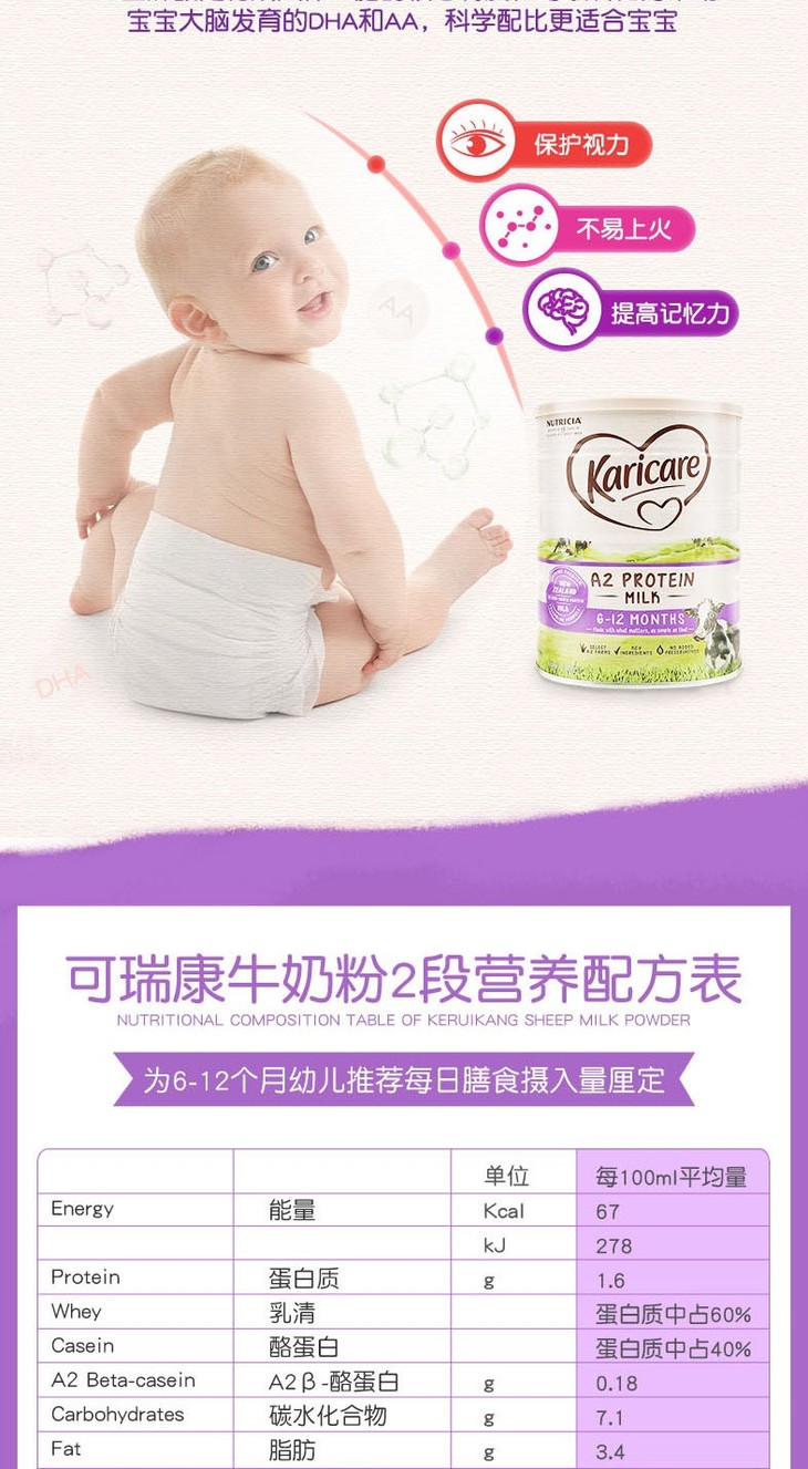 【BSC】牛奶 澳洲karicare/可瑞康A2婴幼儿牛奶粉2段(6-12个月)900g