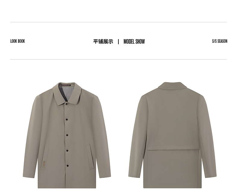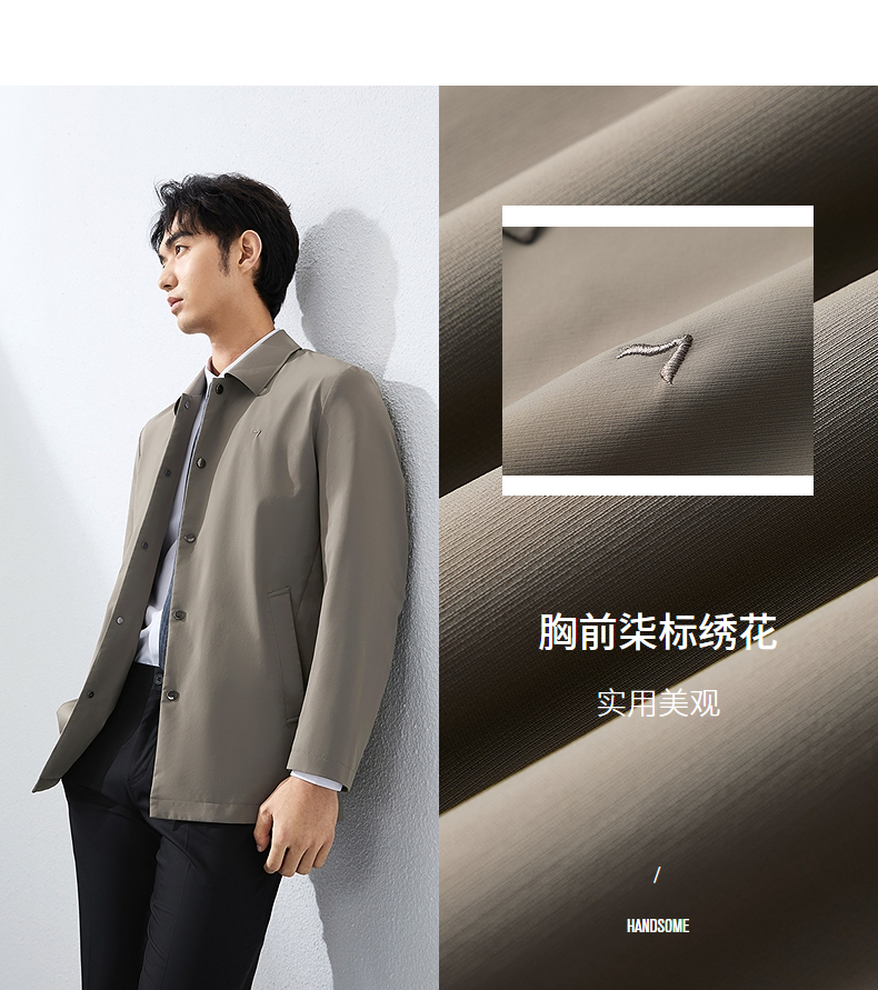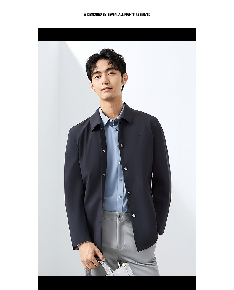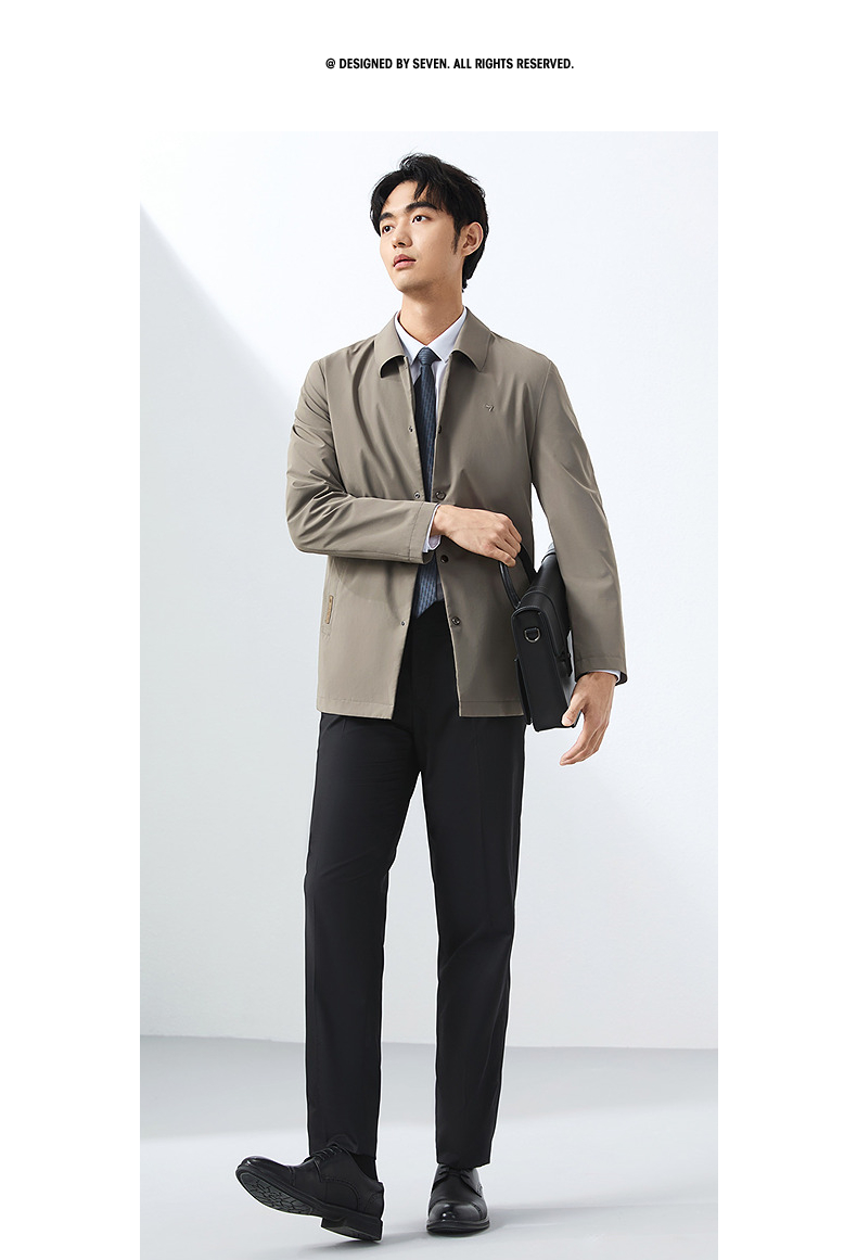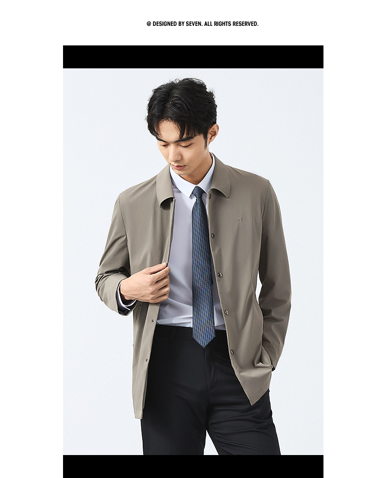 柒牌中长款风衣男2025春季新品时尚休闲无缝翻领中青年夹克衫外套128K70290