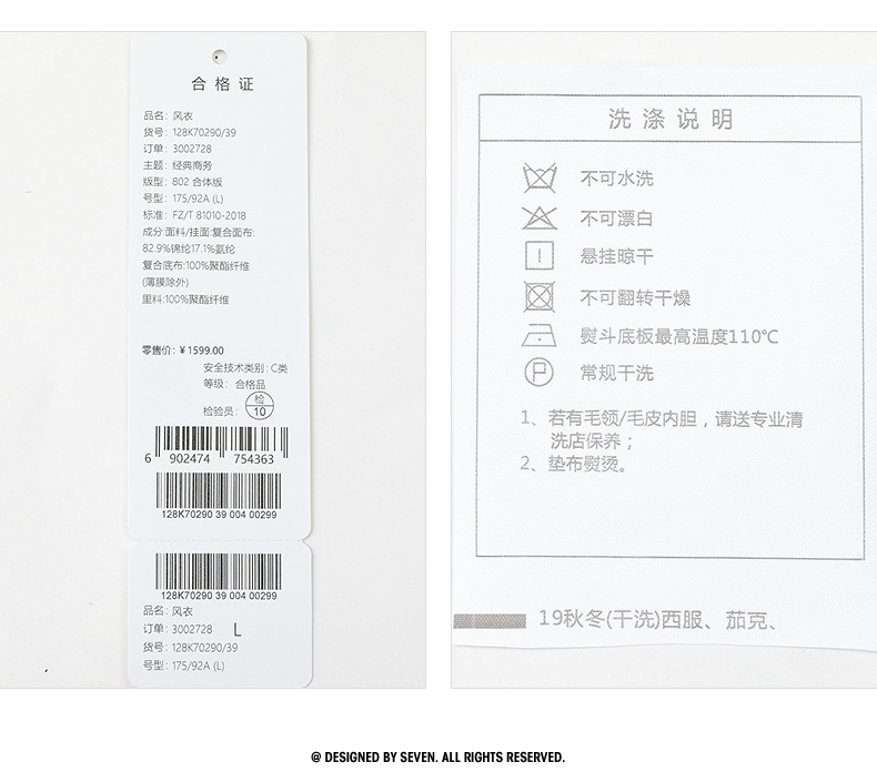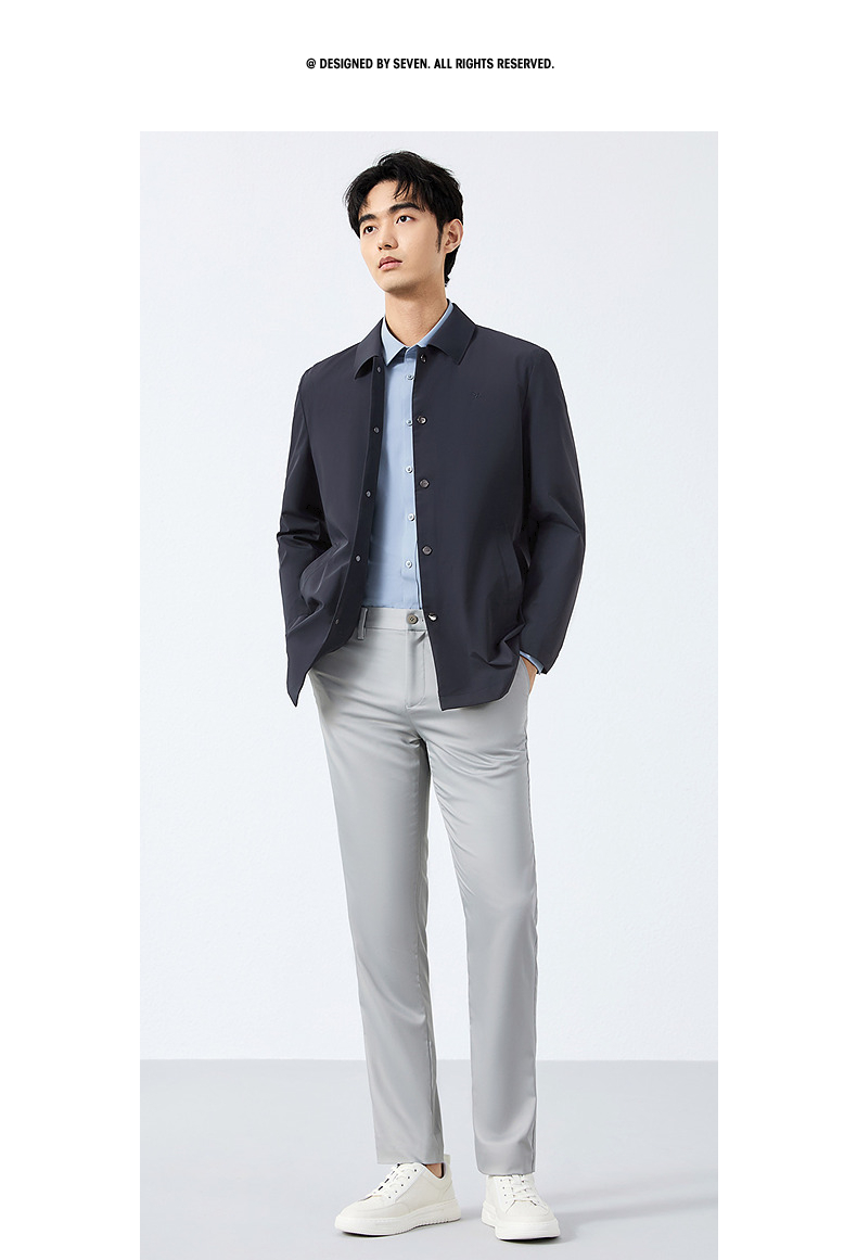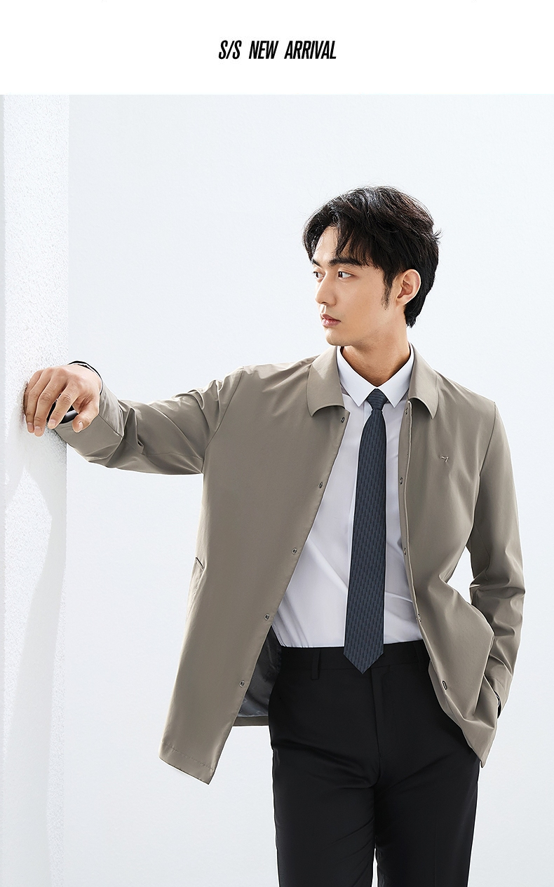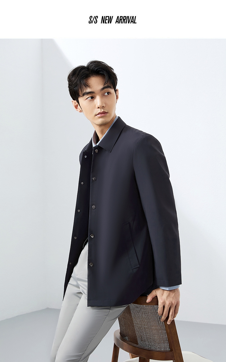 柒牌中长款风衣男2025春季新品时尚休闲无缝翻领中青年夹克衫外套128K70290