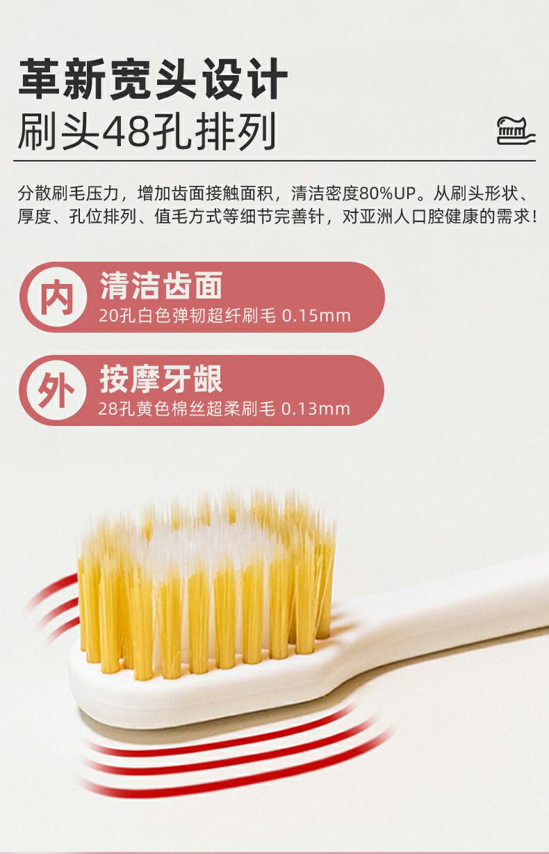 YUMIE由美枝48孔双重洁柔牙刷软毛 静谧白色/摩登灰色舒适宽头软毛护龈 握感舒适 117693/117704