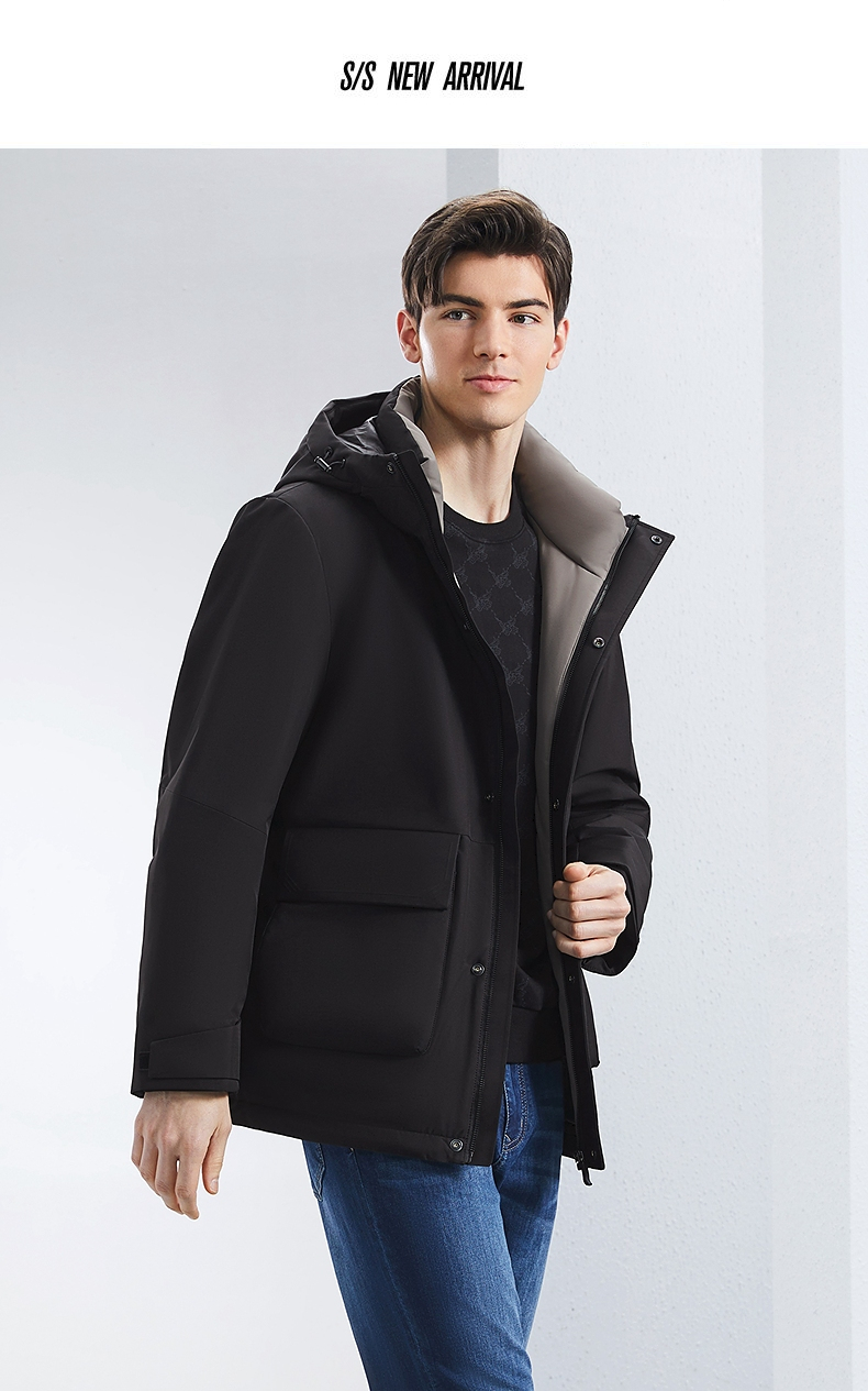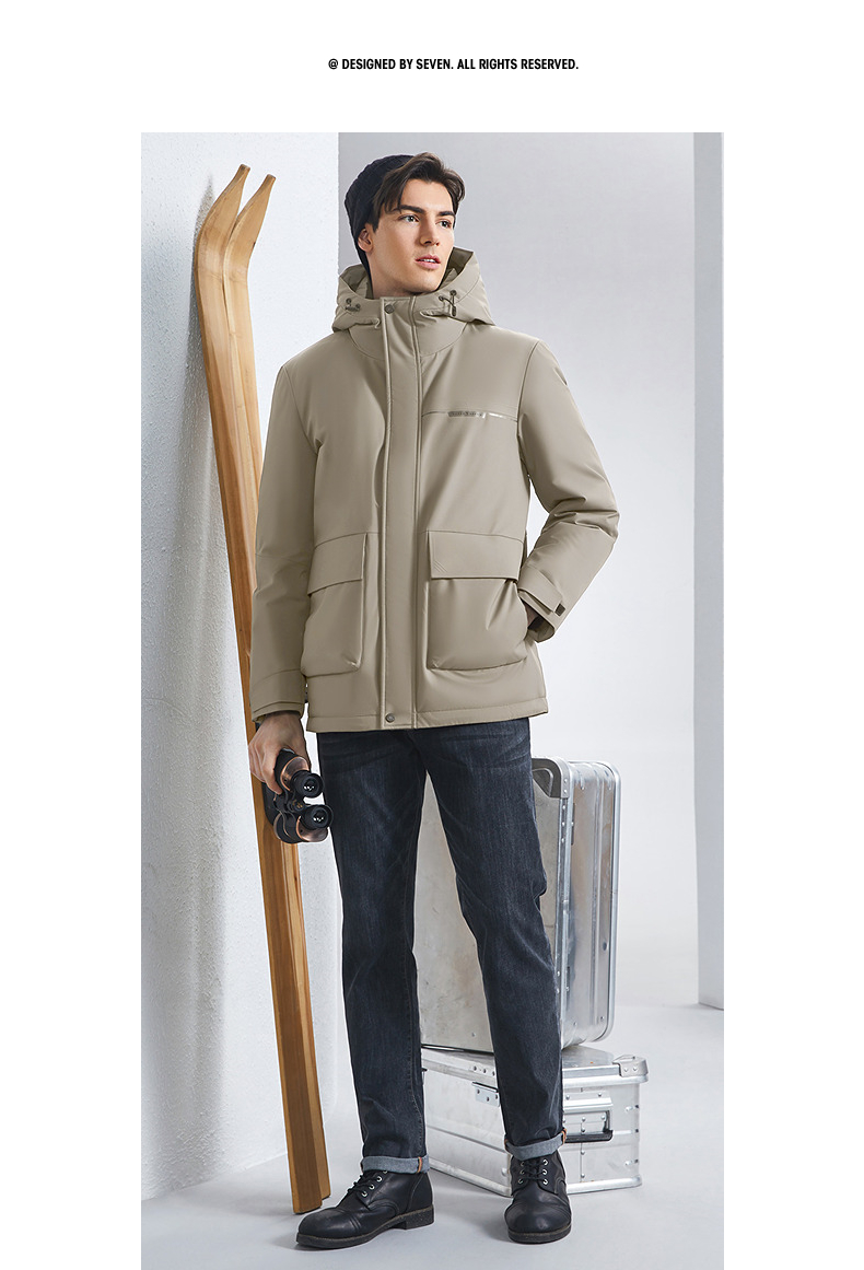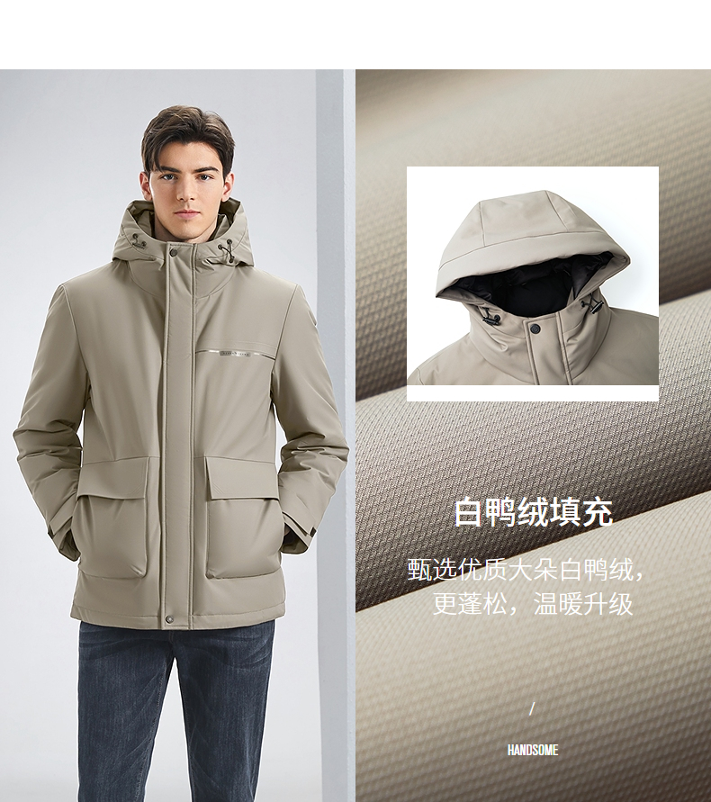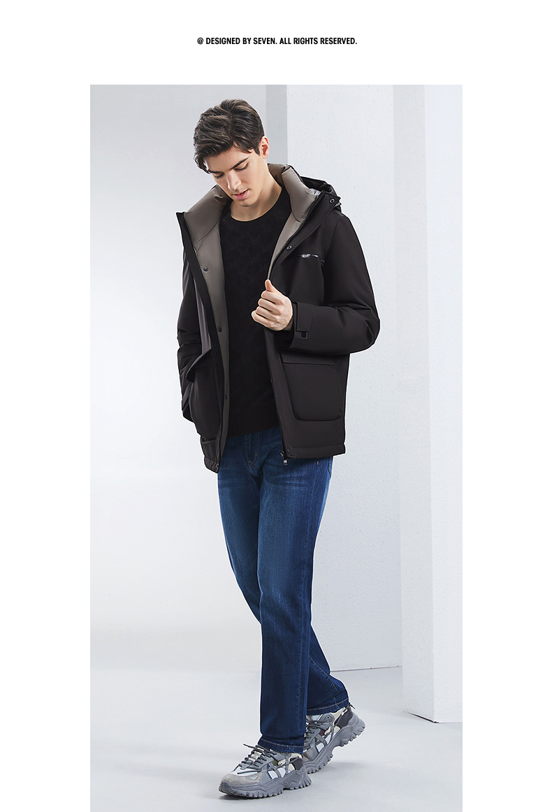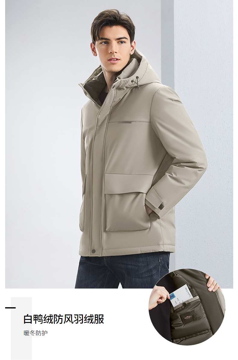 【白鸭绒+石墨烯】柒牌男士连帽羽绒服2024秋冬新款防风保暖外套 127E70210