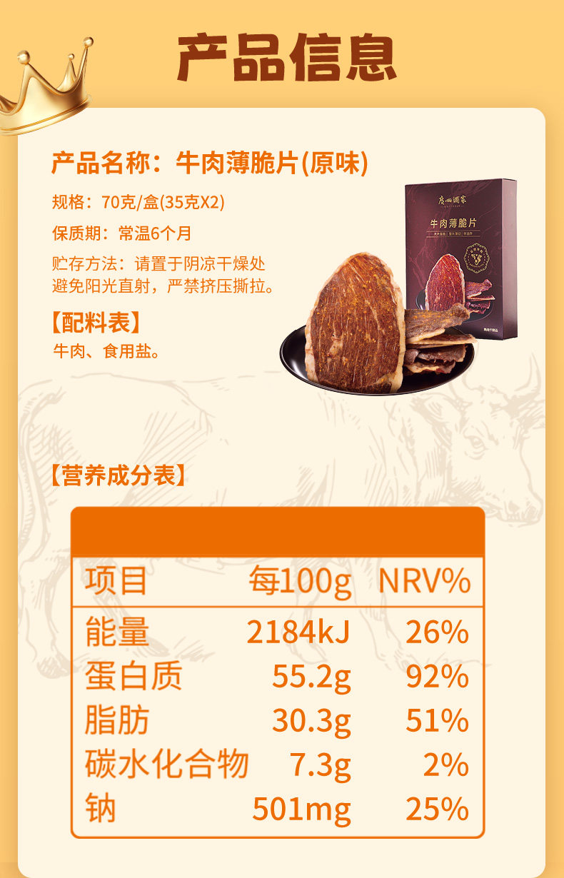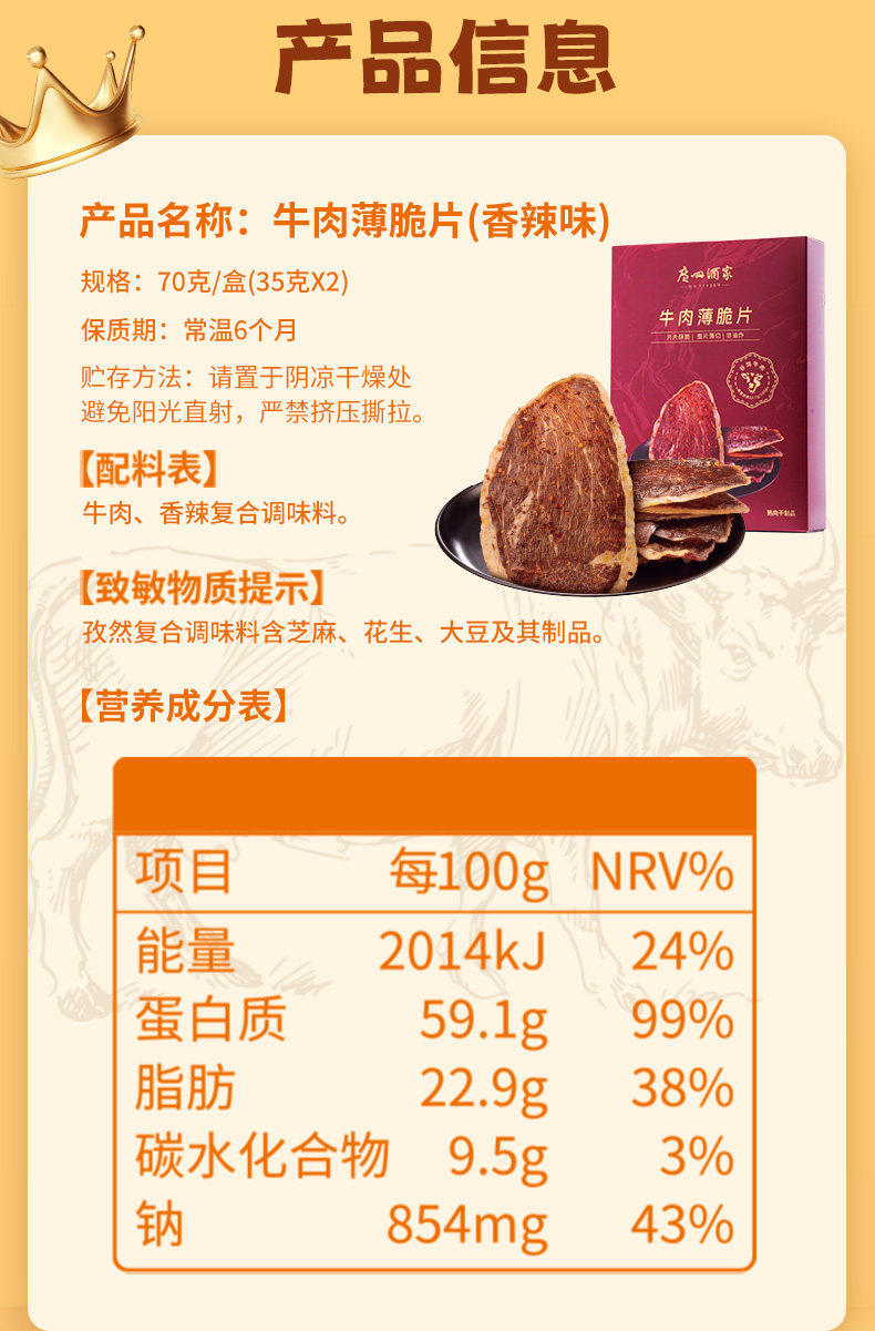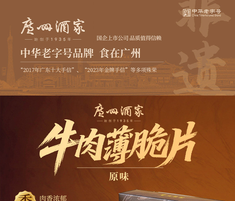 广州酒家 牛肉薄脆片牛脆脆即食肉类牛肉干年货节休闲追剧解馋零食