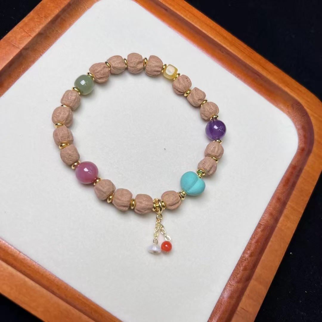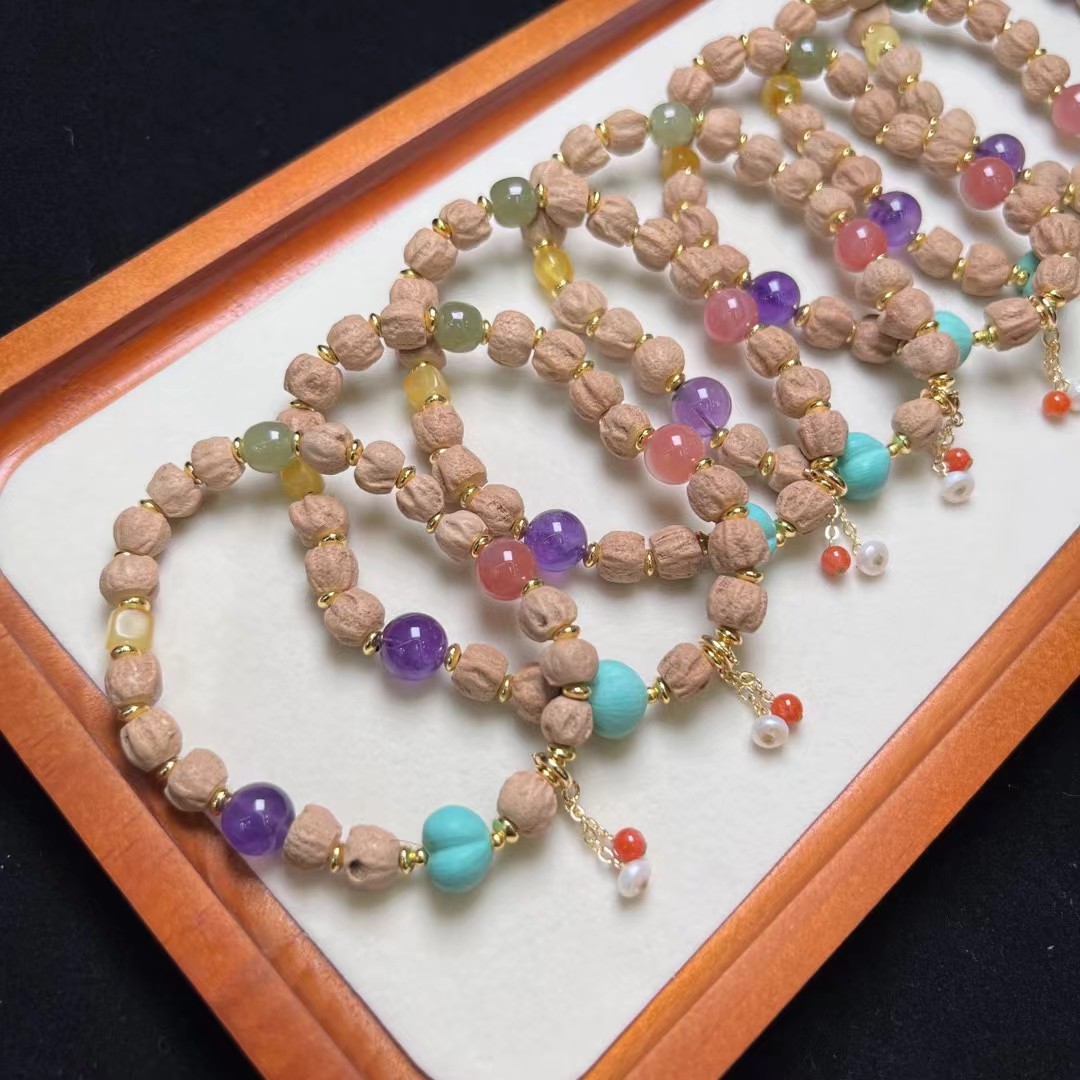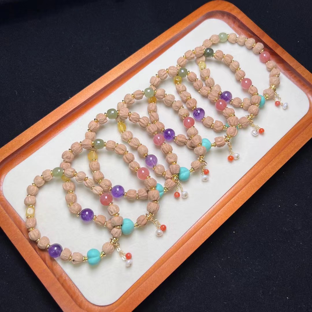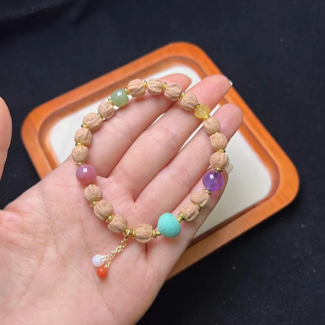 天然柏香籽多宝手珠 天然紫水晶,盐源玛瑙,和田玉多宝配珠