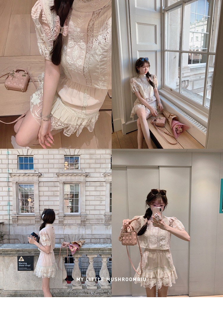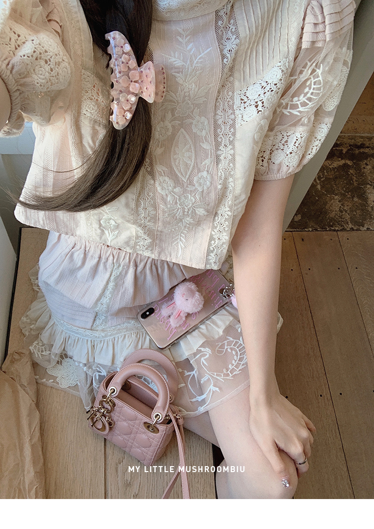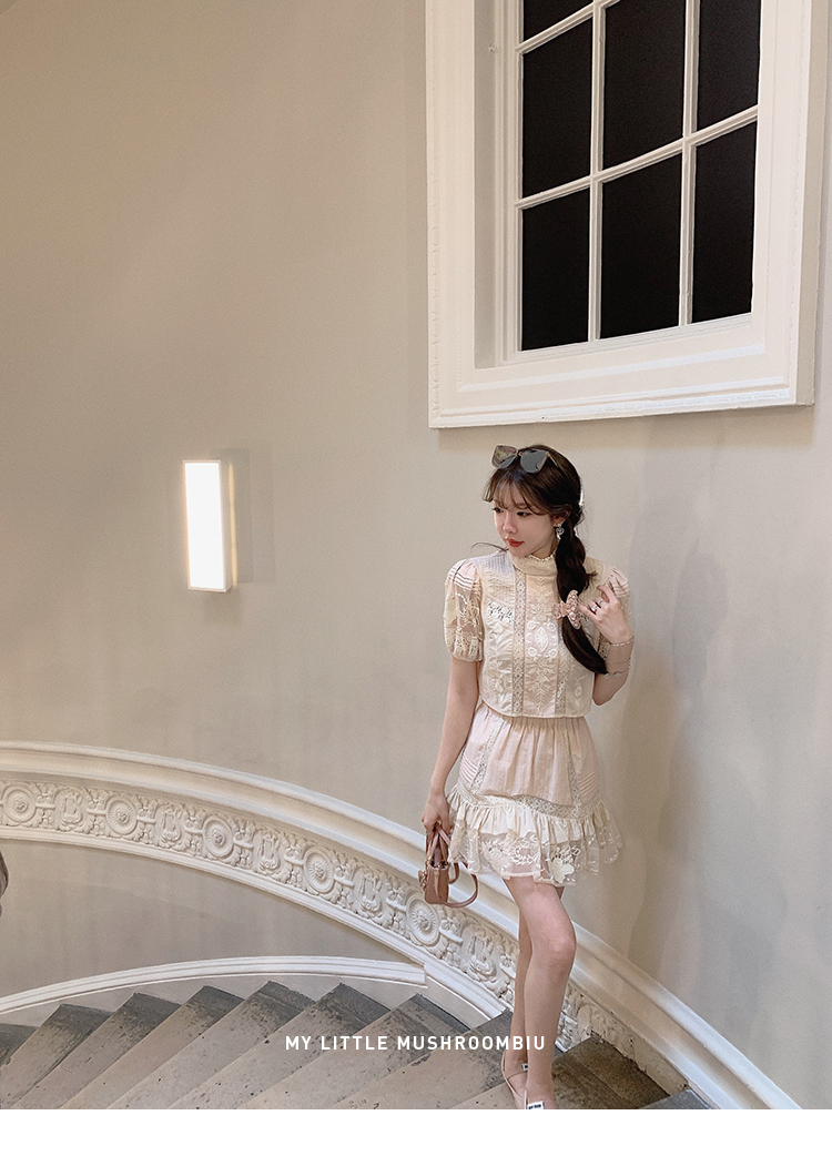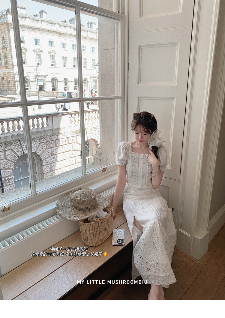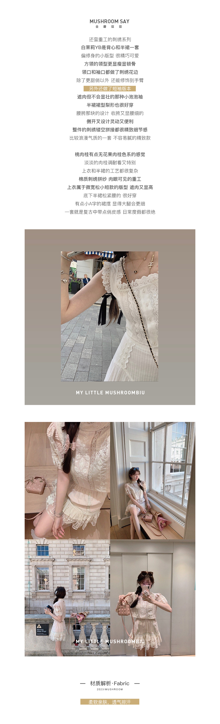 白茉莉/桃肉桂 半裙XS-S码 金蘑菇菇 June party浮绘子 生日裙系列/仙气刺绣上衣半裙套装